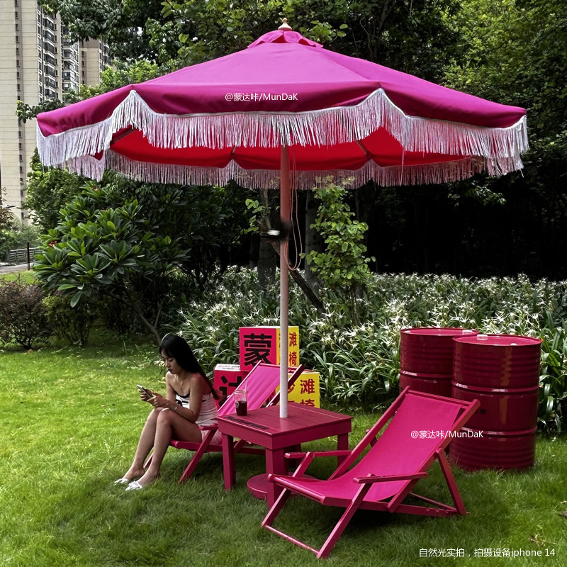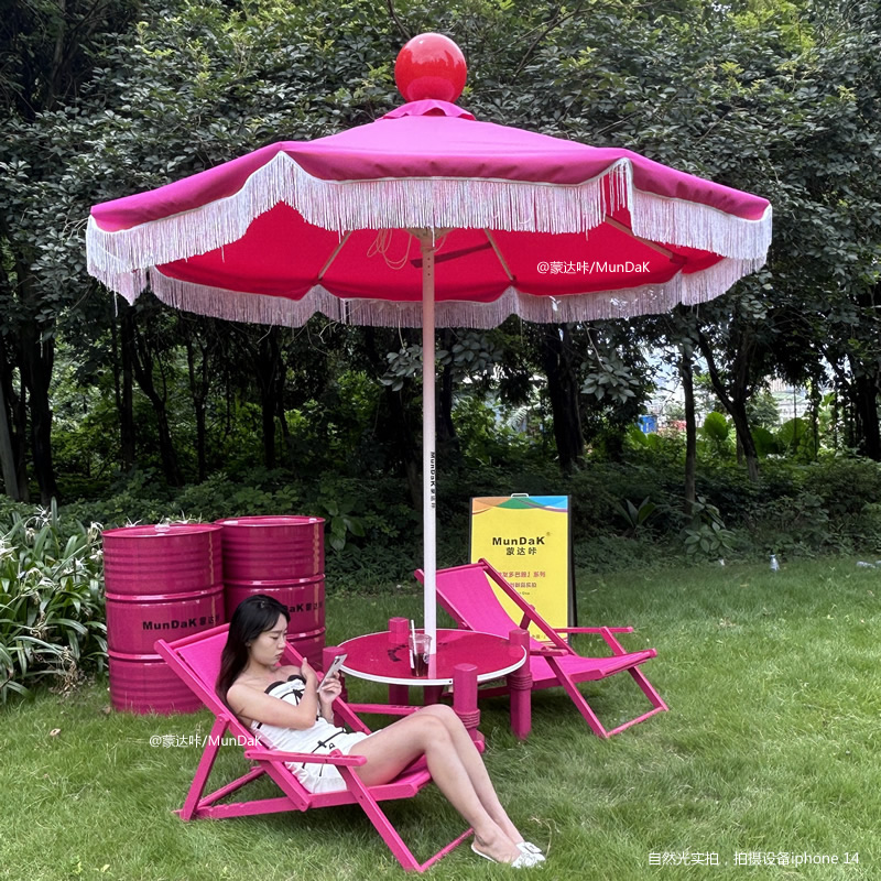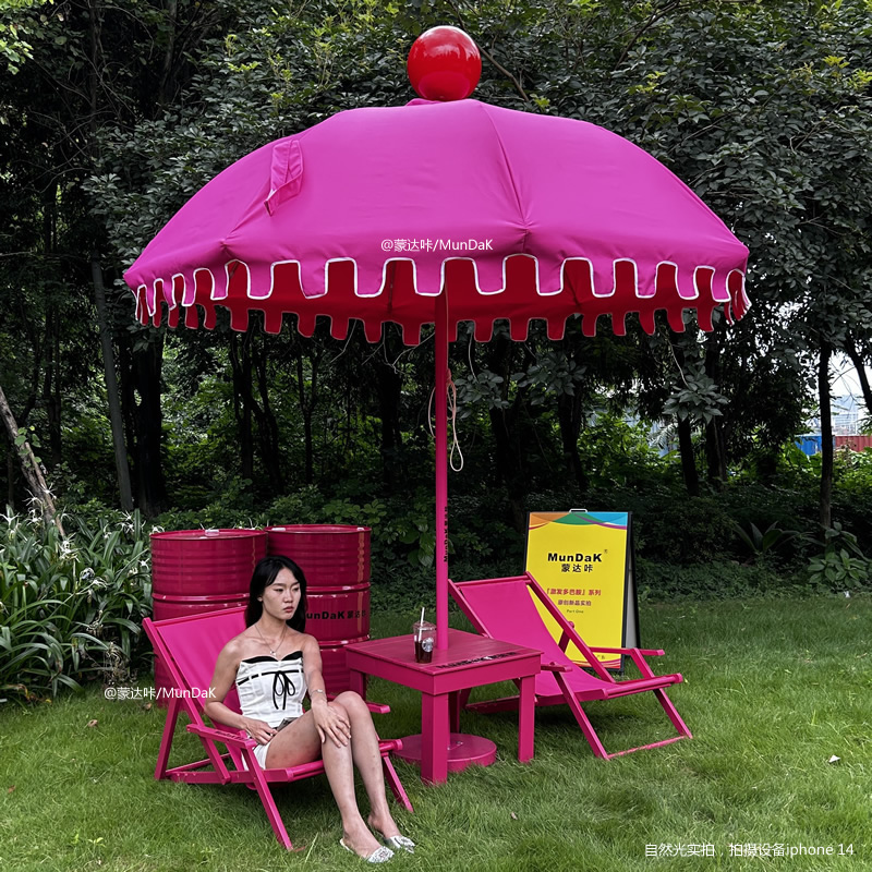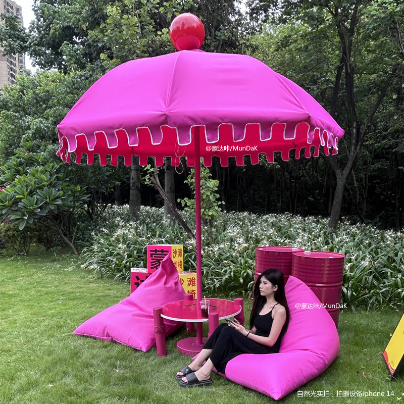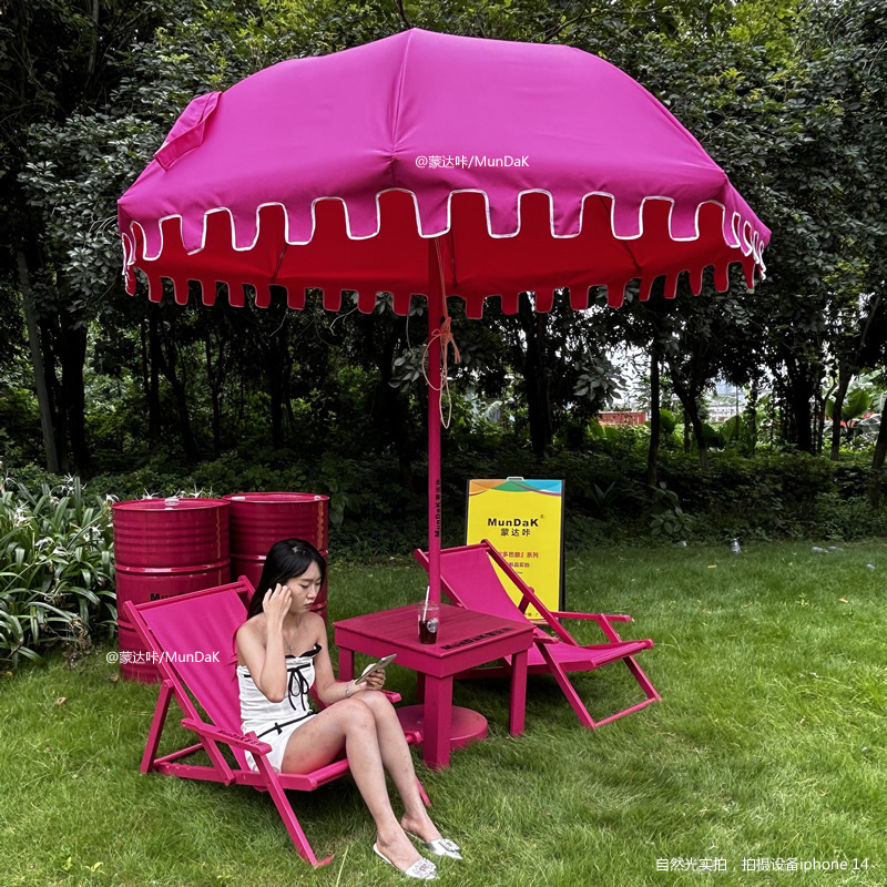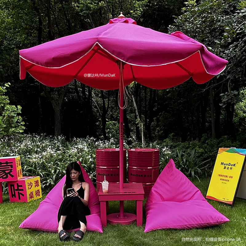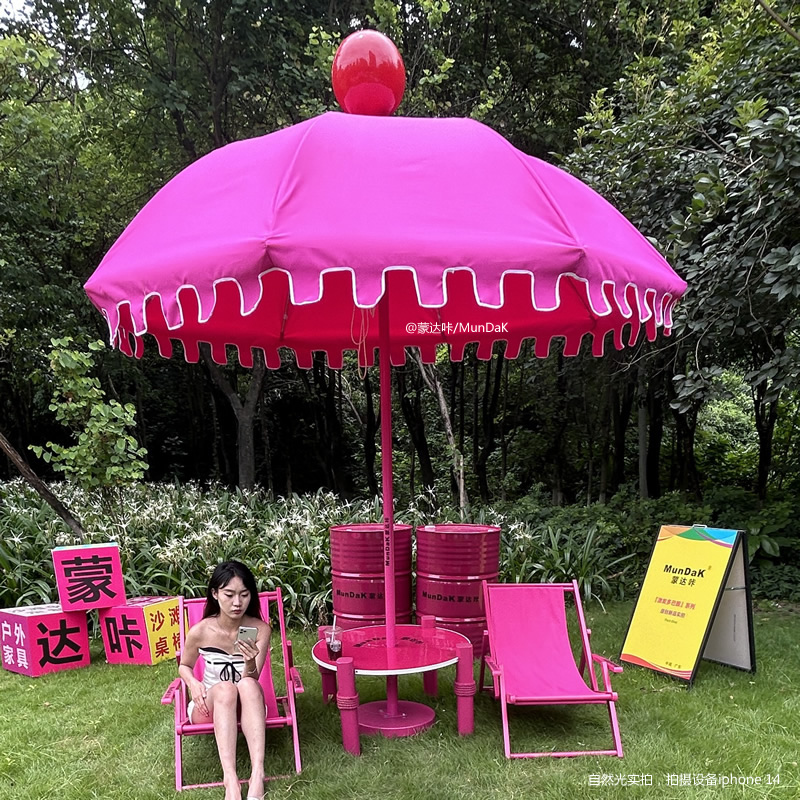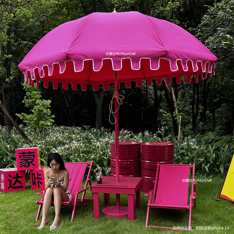 관광지 인터넷 연예인 로즈 레드 비치 캠프는 바비 핑크 파라솔, 비치 소파, 라운지 의자, 비치 테이블 및 의자 우산을 만듭니다.스토어 가기