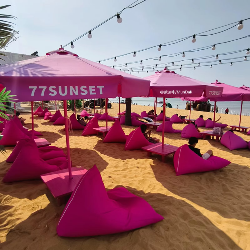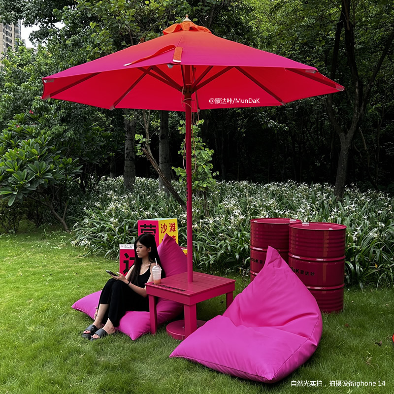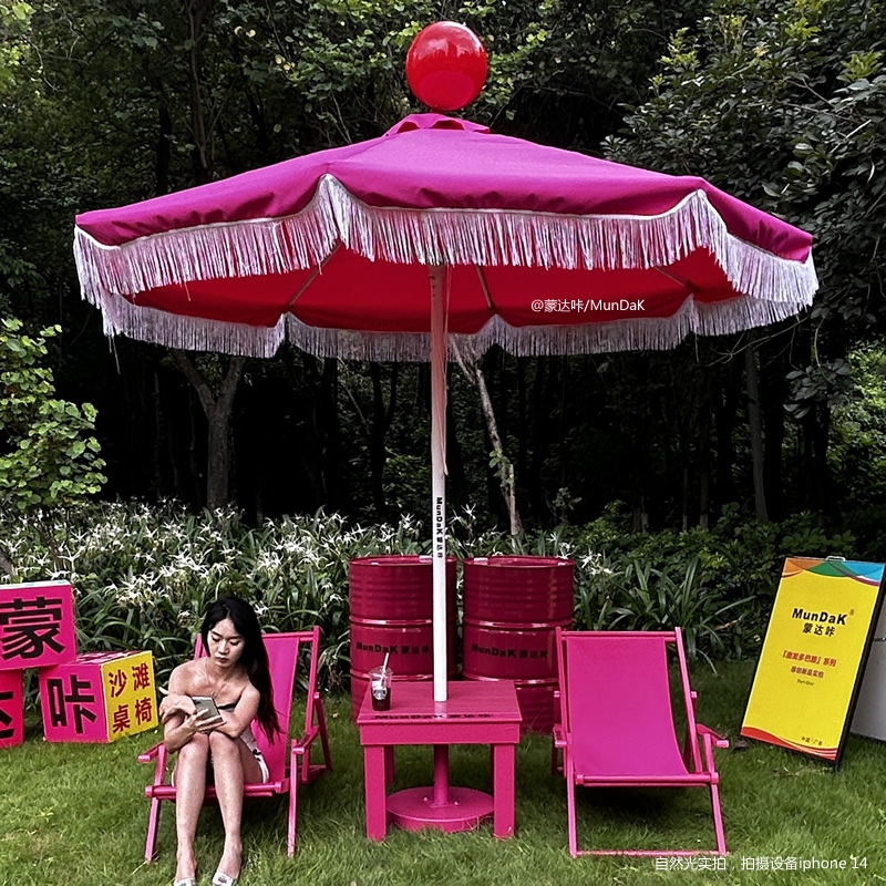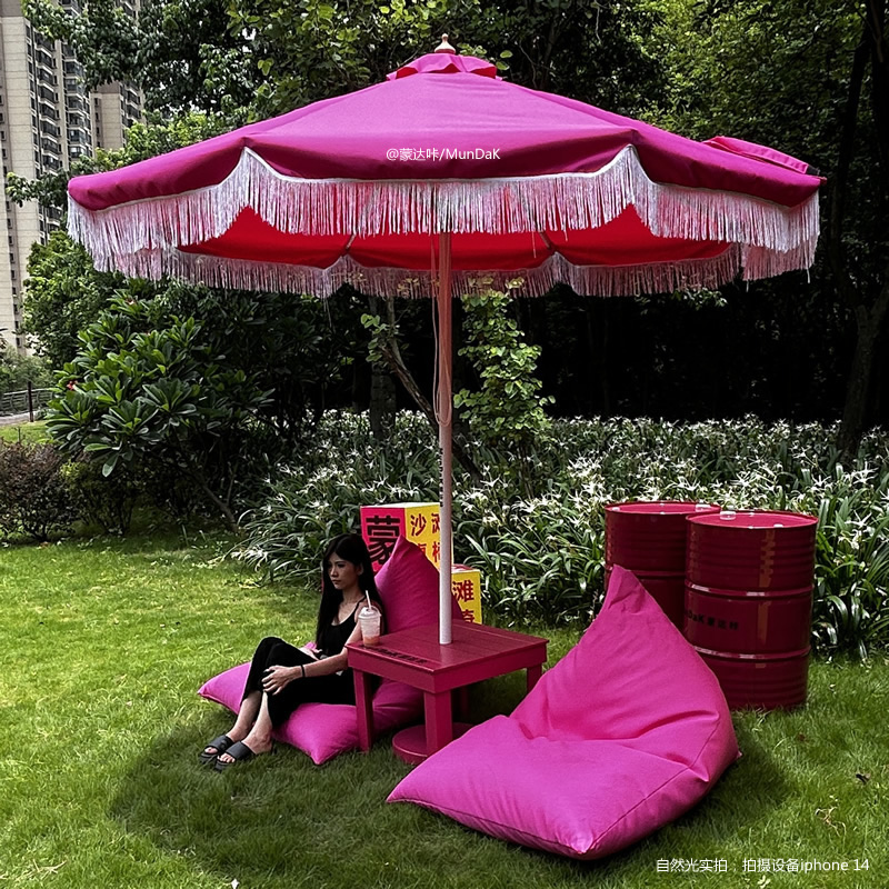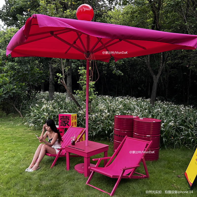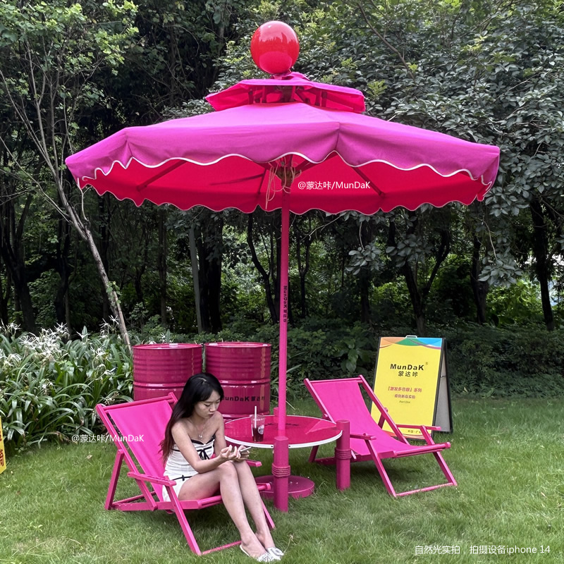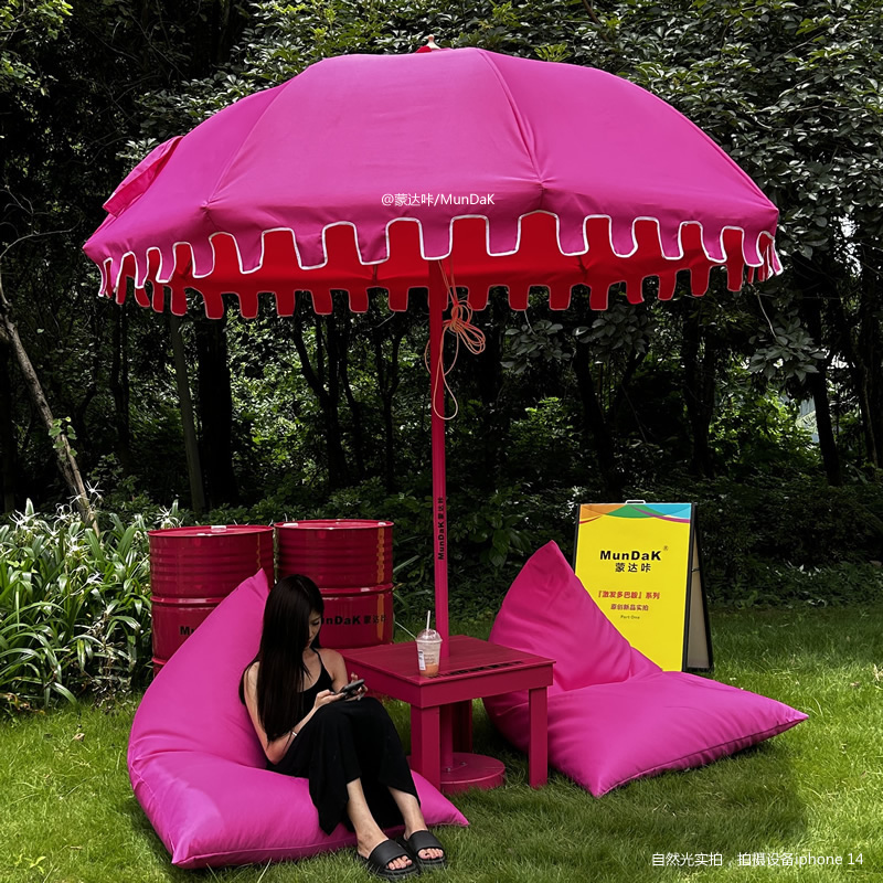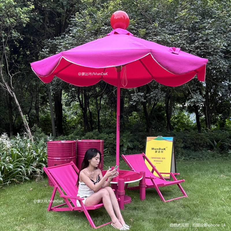 관광지 인터넷 연예인 로즈 레드 비치 캠프는 바비 핑크 파라솔, 비치 소파, 라운지 의자, 비치 테이블 및 의자 우산을 만듭니다.스토어 가기
