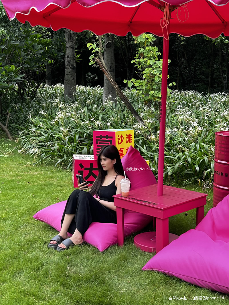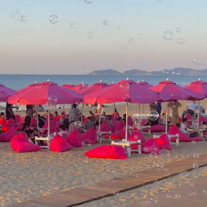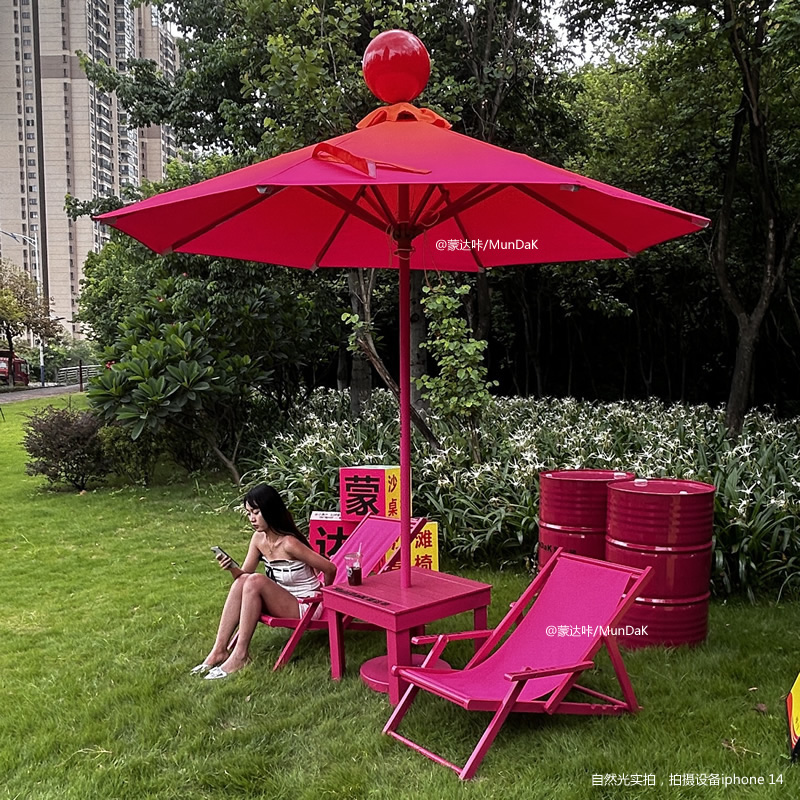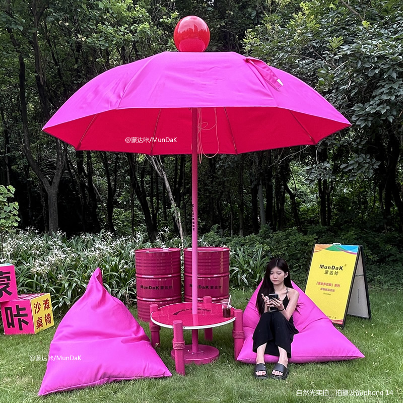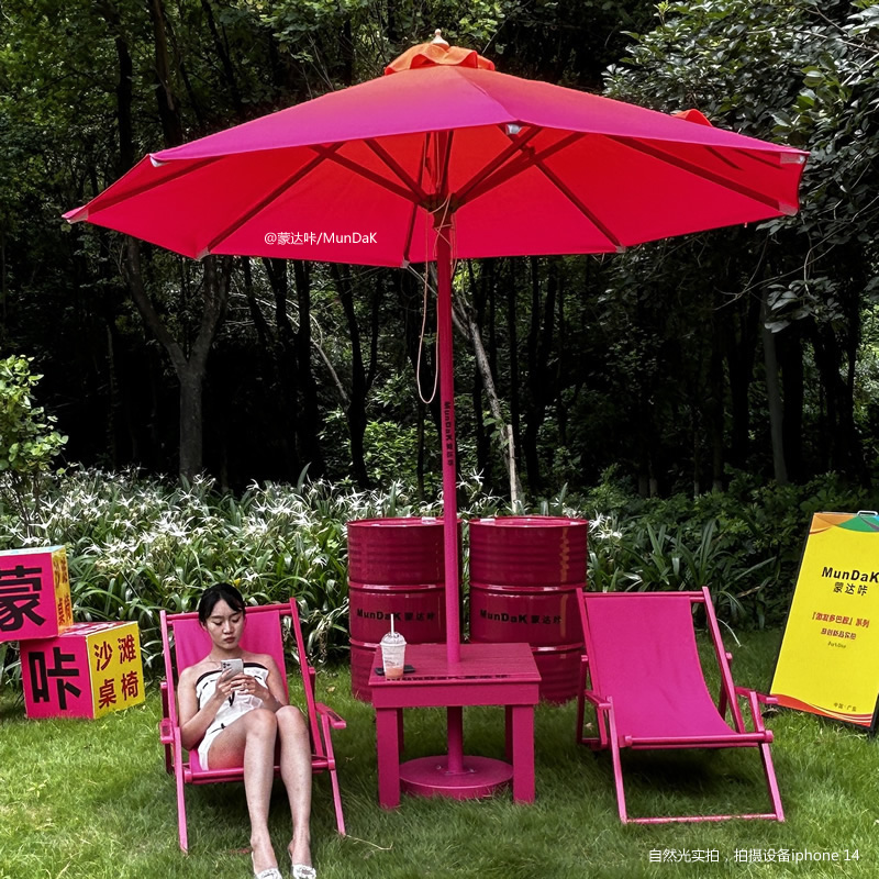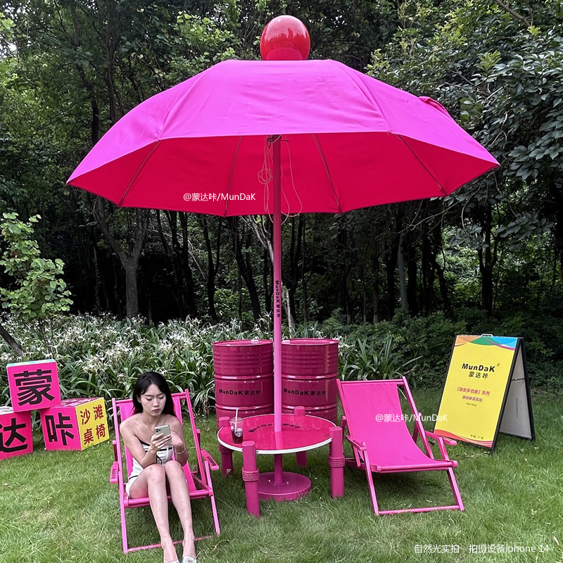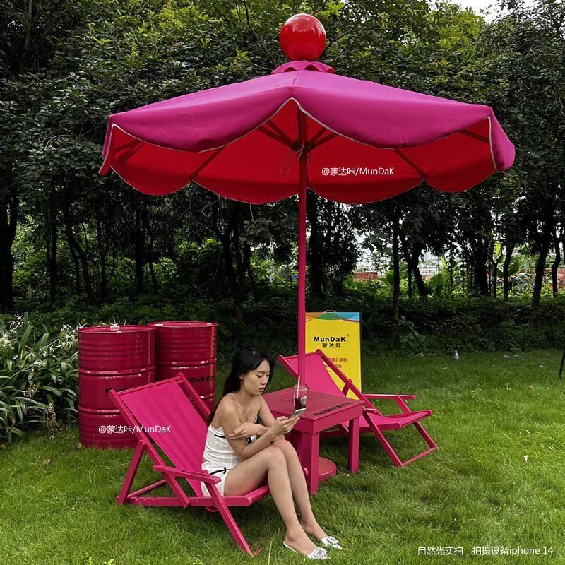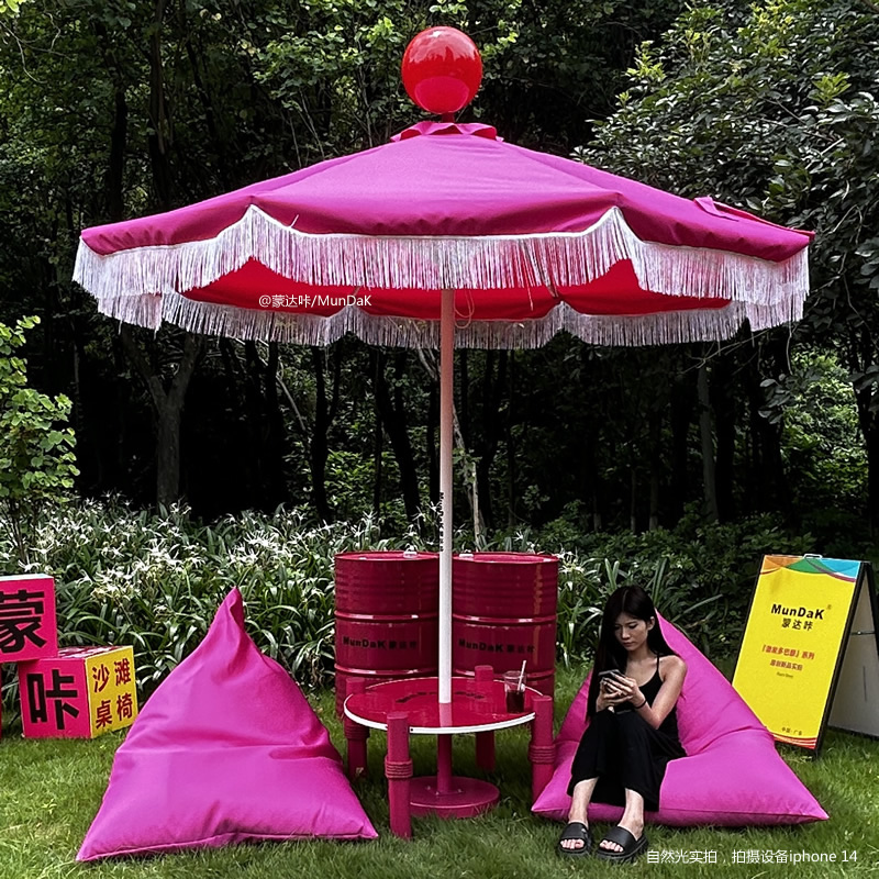 관광지 인터넷 연예인 로즈 레드 비치 캠프는 바비 핑크 파라솔, 비치 소파, 라운지 의자, 비치 테이블 및 의자 우산을 만듭니다.스토어 가기