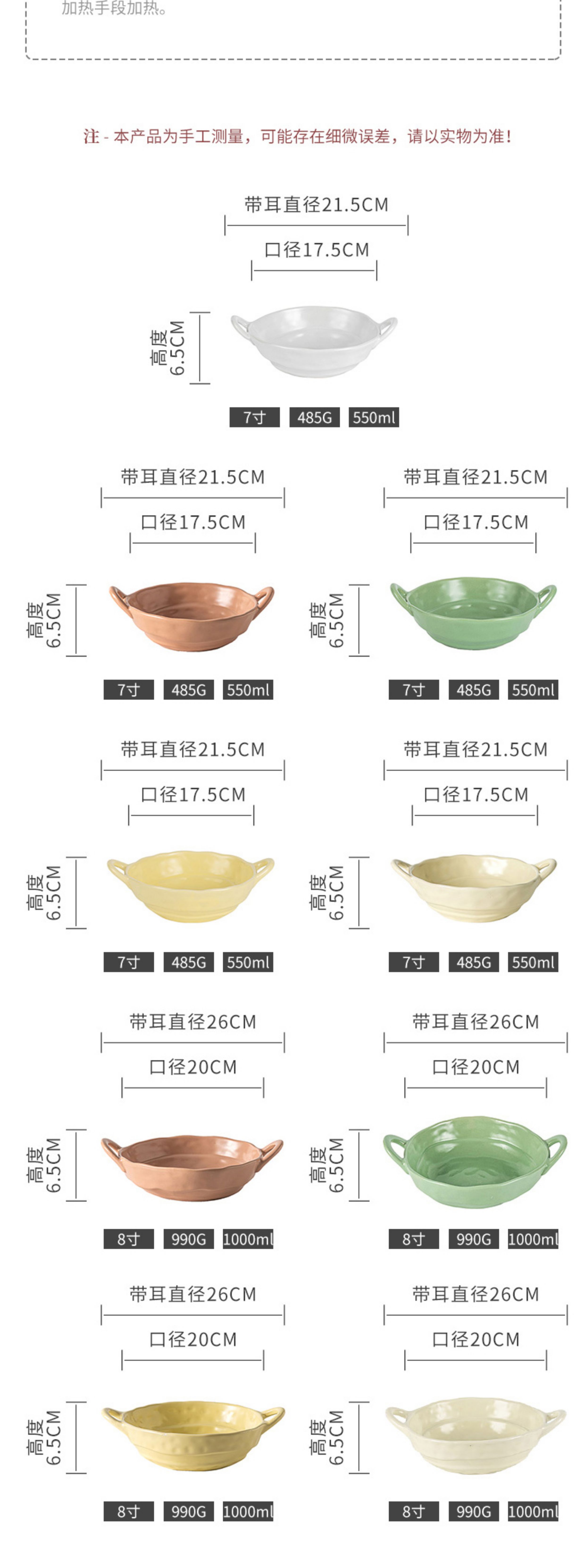 세라믹 그릇 불규칙한 단색 양귀 그릇 아침 수프 그릇 국수 그릇 가정용 샐러드 그릇 대형 그릇 식사스토어 가기