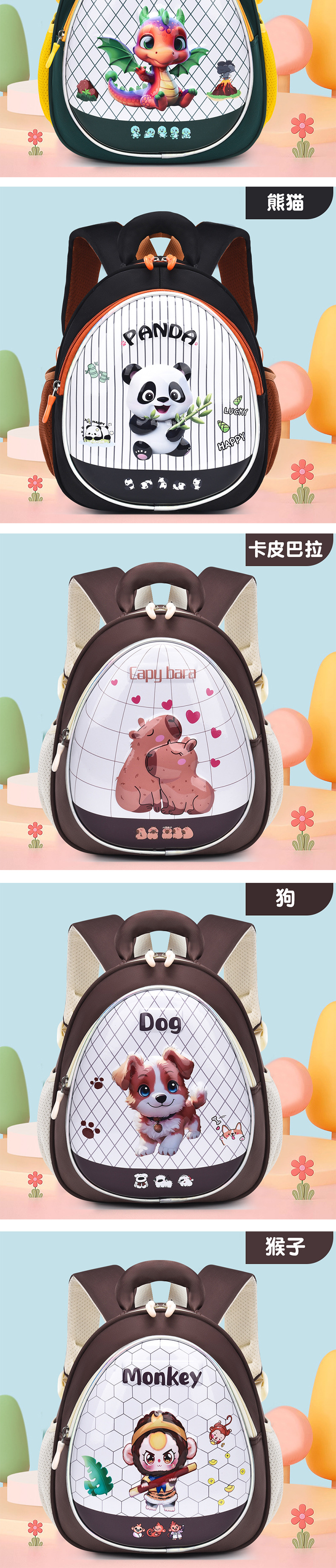 새로운 유치원 학교 가방 크로스 보더 3D 쉘 만화 애니메이션 초등 및 중등 학교 소년과 소녀 아기 초경량 어린이 배낭
