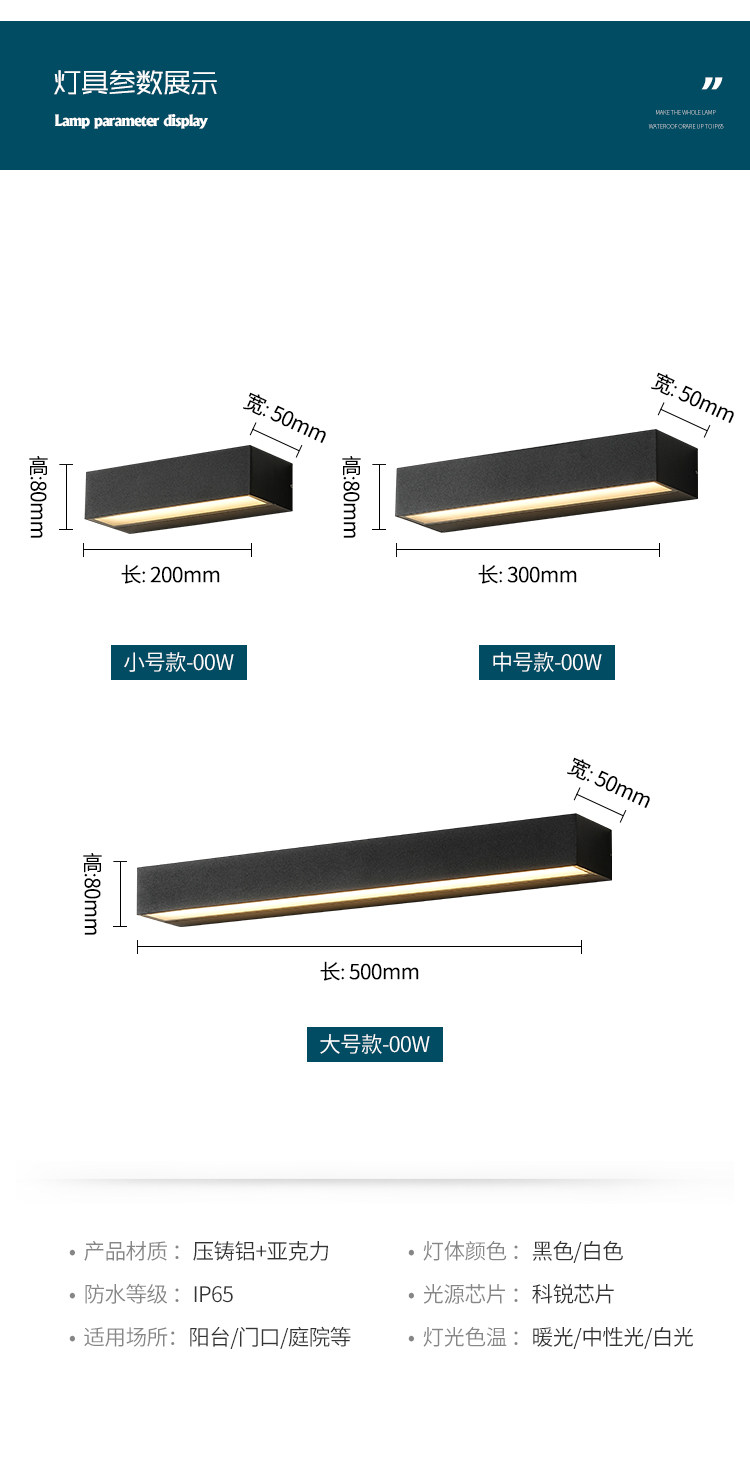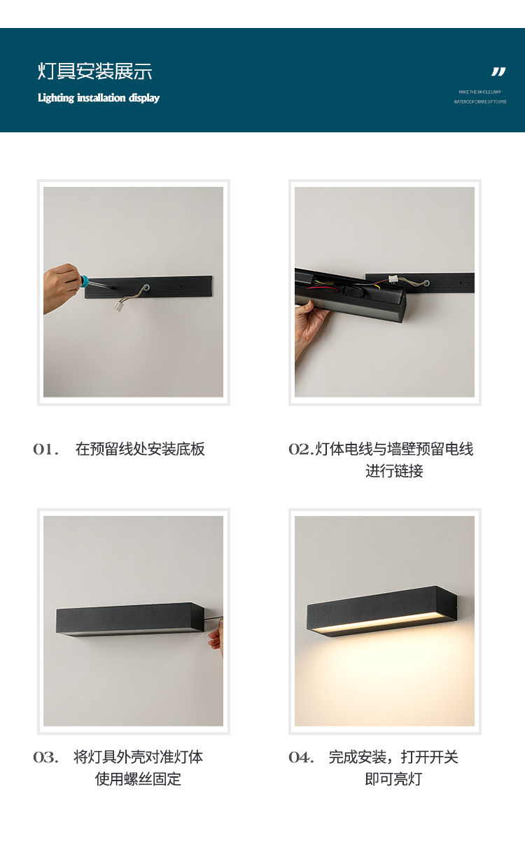 야외 벽 램프 방수 긴 외벽 램프 안뜰 벽 매장 문 광고 간판 단일 헤드 머리맡 벽 램프