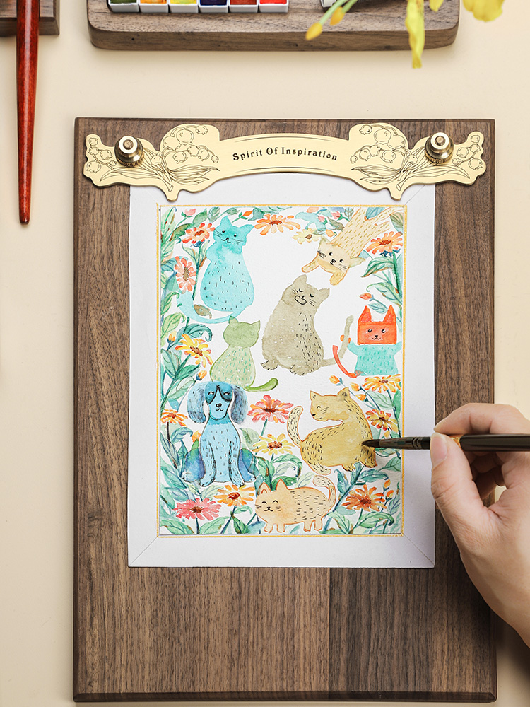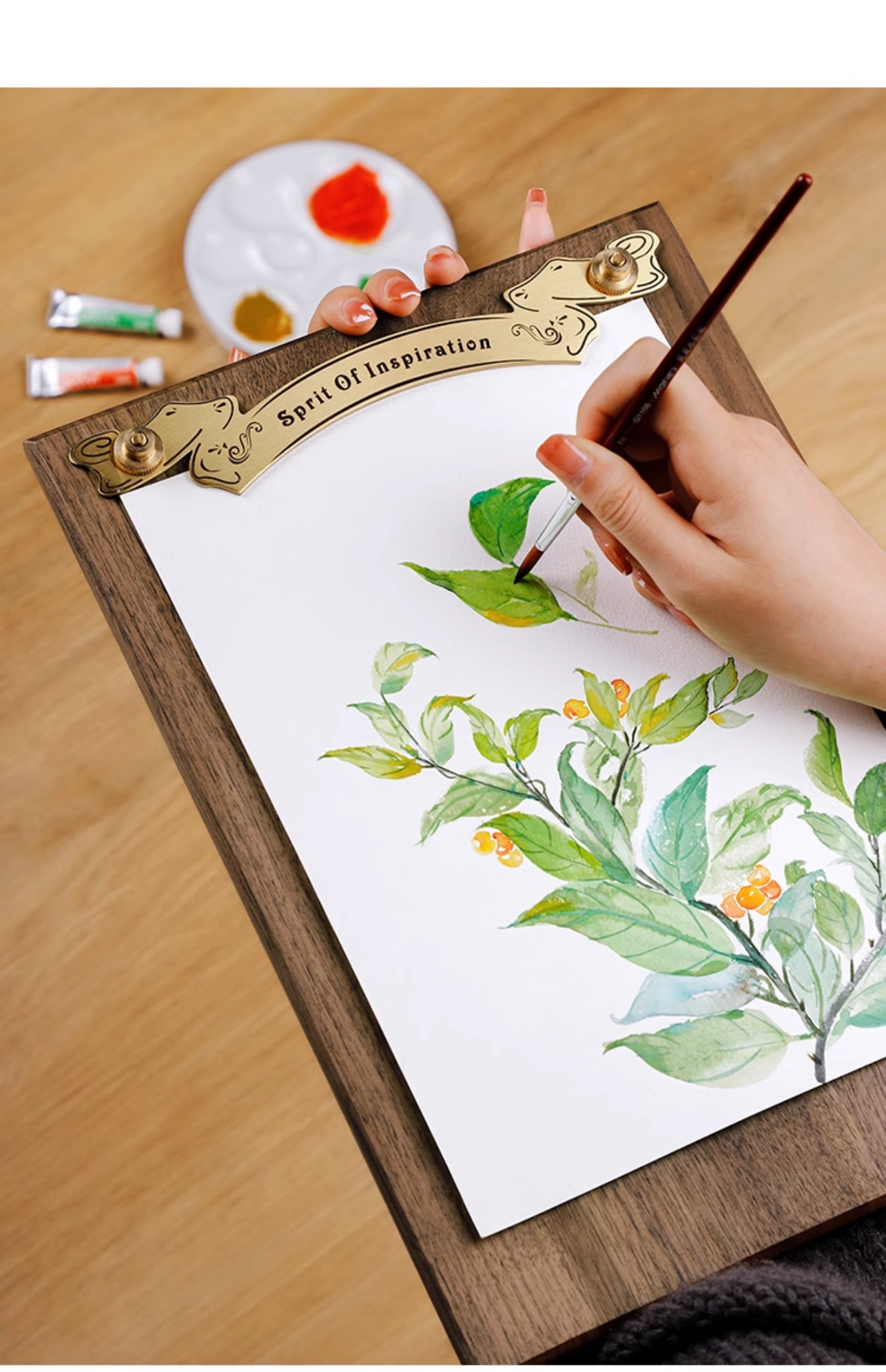 검은 호두 나무 드로잉 보드 미술 학생 이젤 보드 클립 황동 메뉴 클립 복고풍 스케치 스케치 보드 손으로 그린 보드