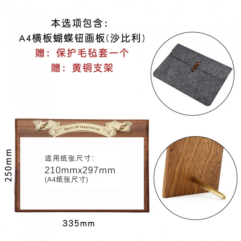 • Sapele 수평 버전 A4 은방울꽃 압력 나비 버튼 드로잉 보드 무료 조각