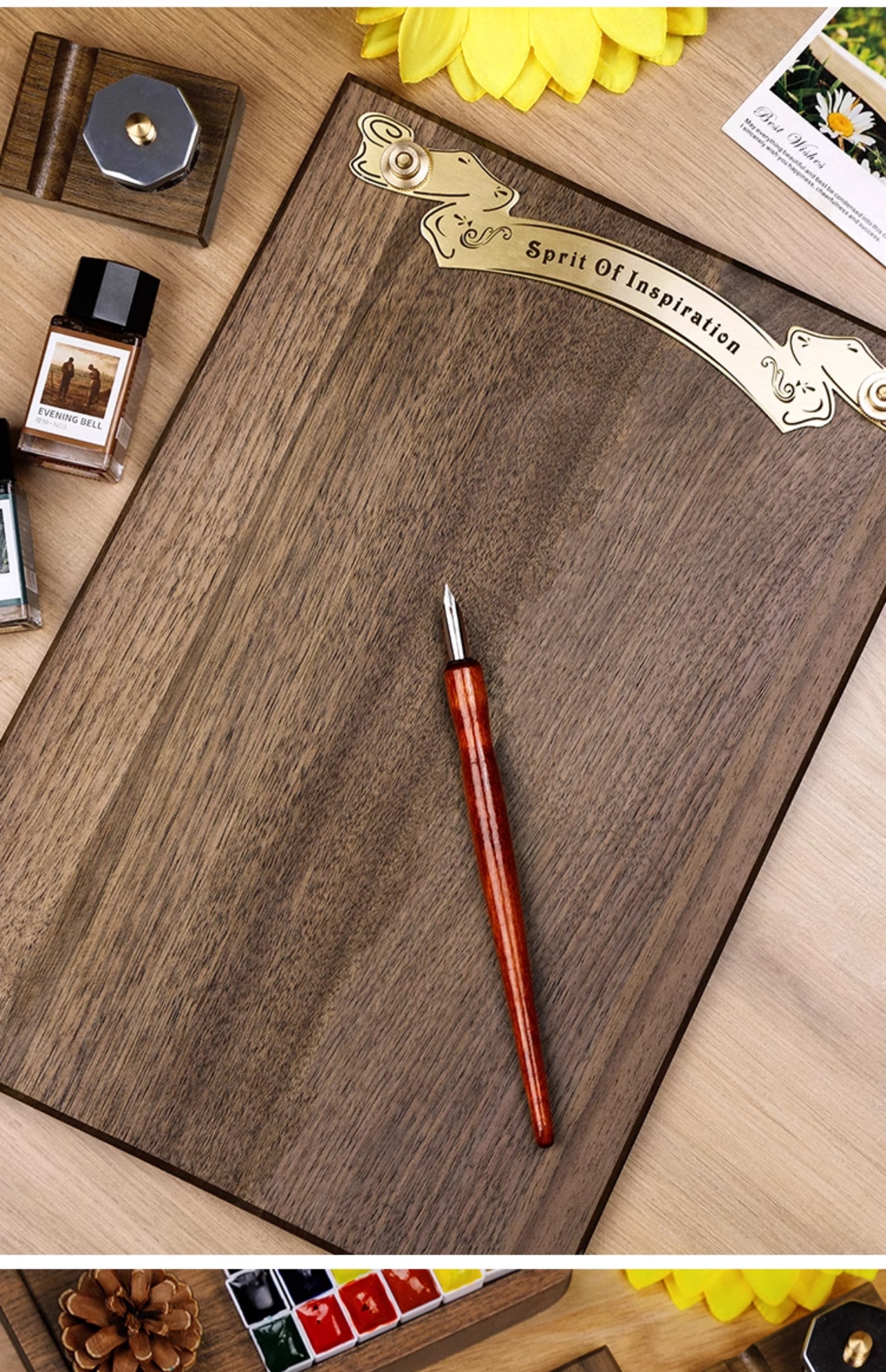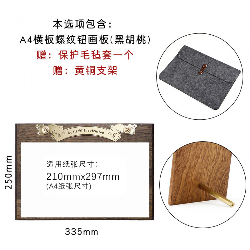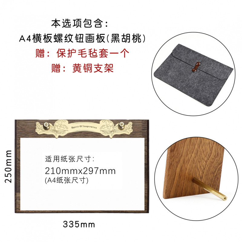 • 검은 호두나무 A4 나사산 버튼 드로잉 보드 무료 조각