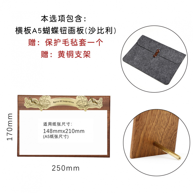 • 수평 검은 호두나무 A4 나비 버튼 드로잉 보드 무료 조각