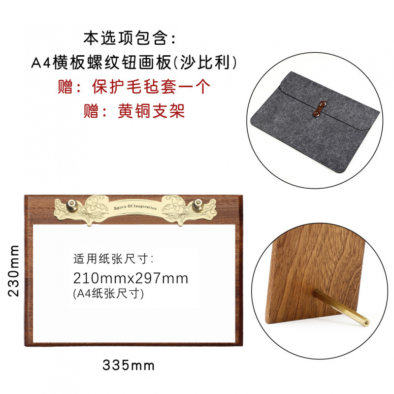 • Sapele 수평 버전 A4 은방울꽃 압력 스레드 버튼 드로잉 보드 무료 조각