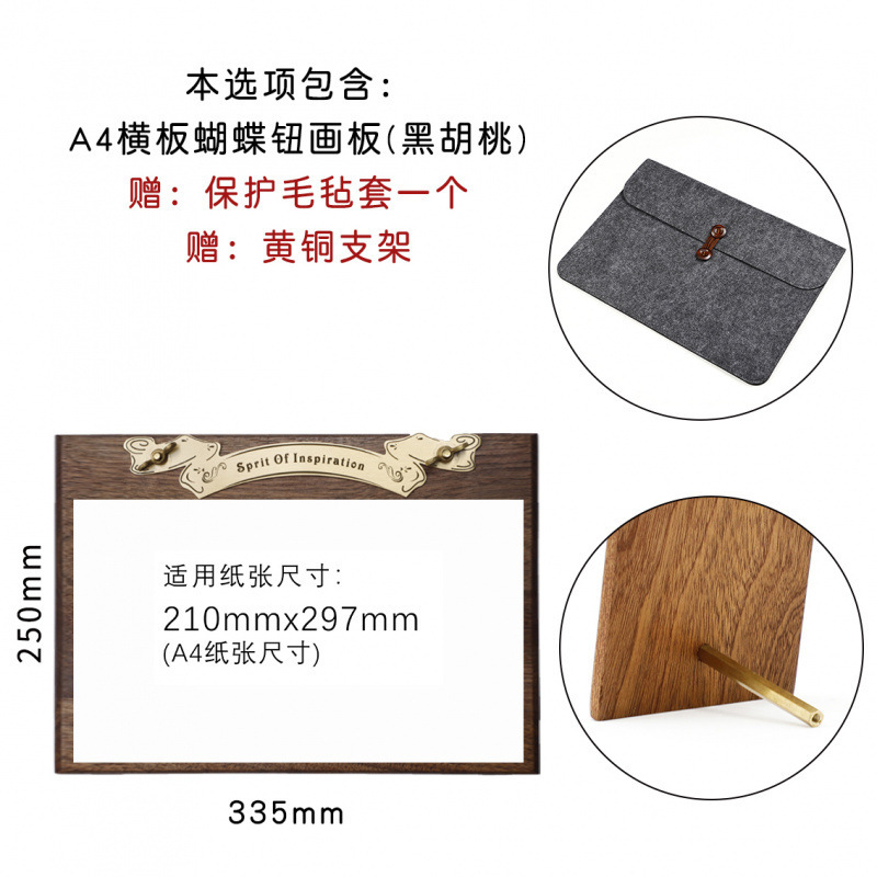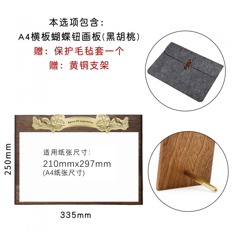 • 검은 호두 수평 버전 A4 은방울꽃 압착 나비 버튼 드로잉 보드 무료 조각