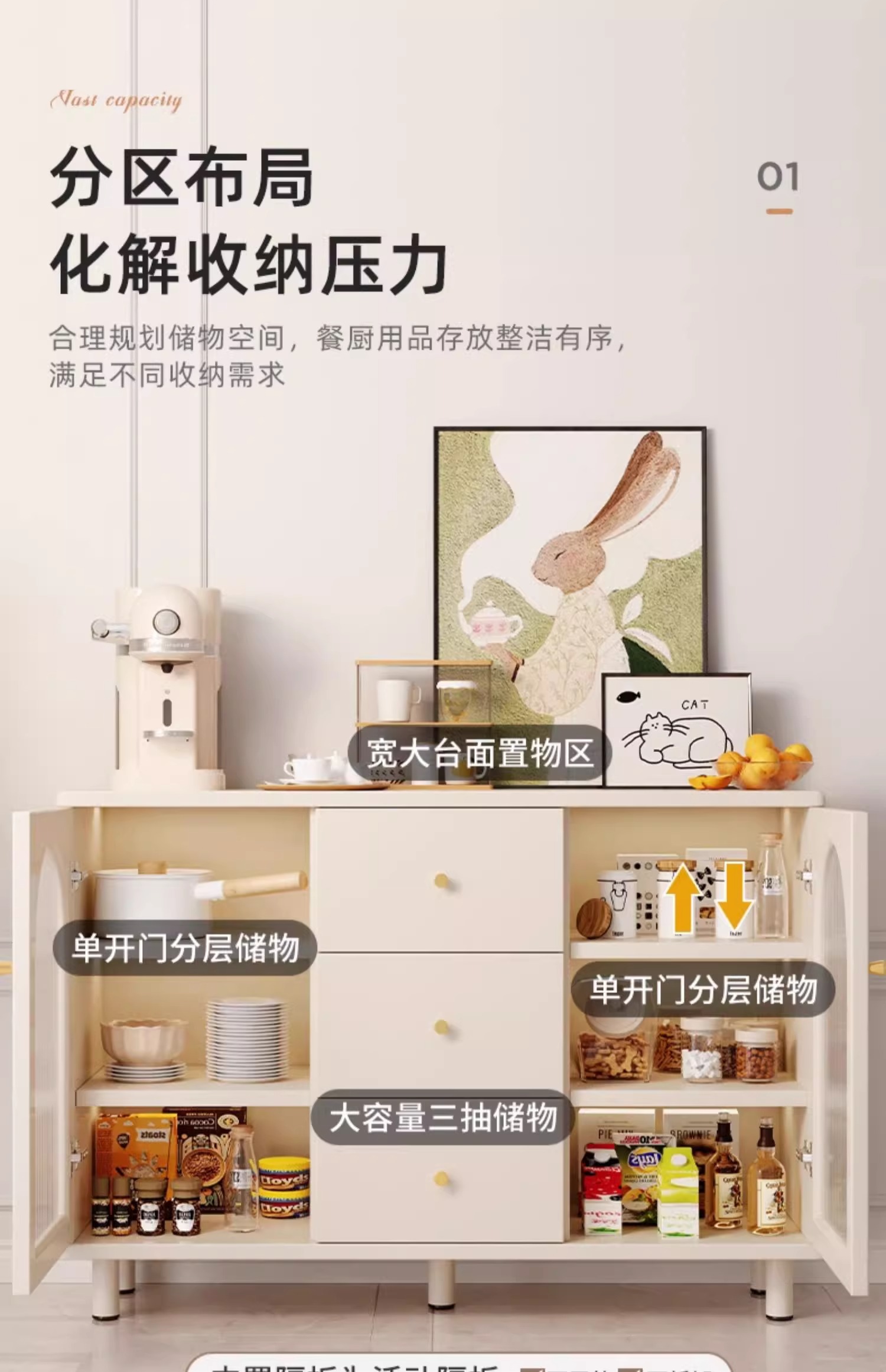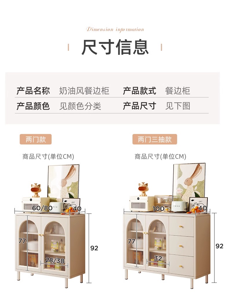 크림 스타일 찬장 수납 캐비닛 벽걸이형 일체형 차 수납 캐비닛 주방 캐비닛 가정용 찬장 거실 수납 캐비닛스토어 가기