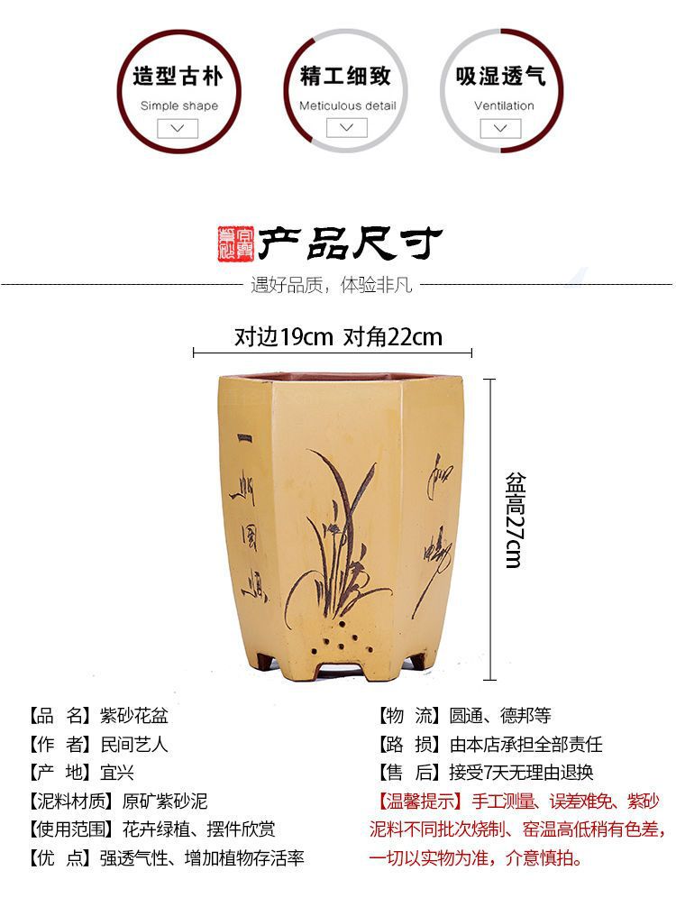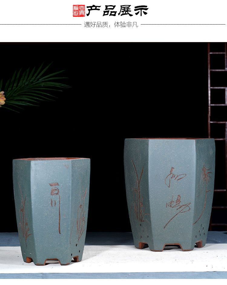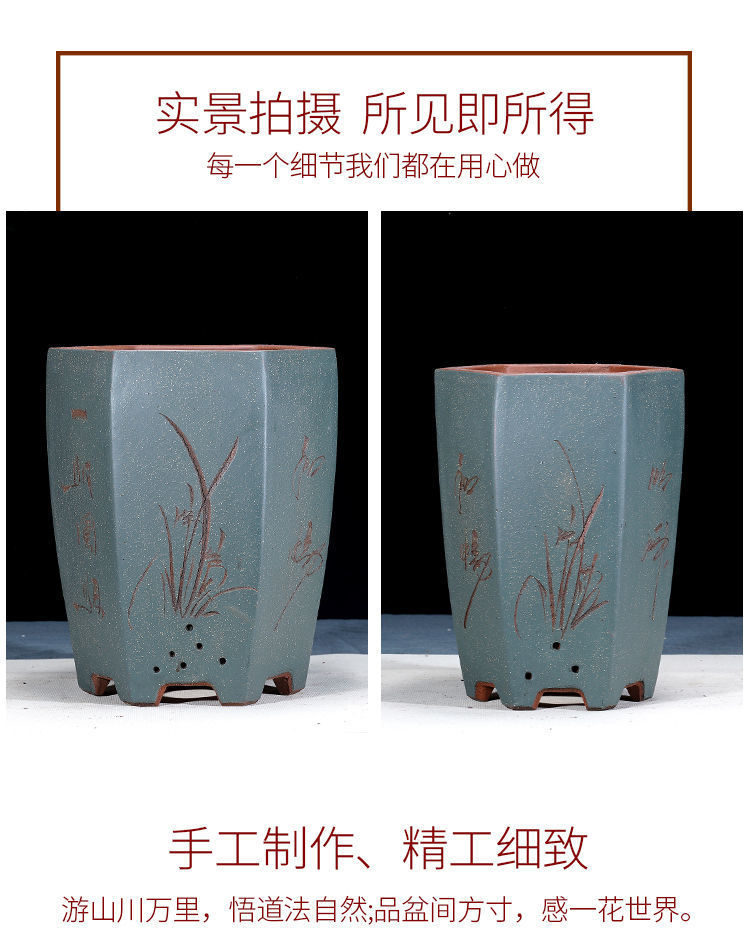 이싱 보라색 점토 화분, 육각형 난초 화분, 꽃과 녹색 식물 화분, 대형 수제 화분, 화분 Mingwei스토어 가기