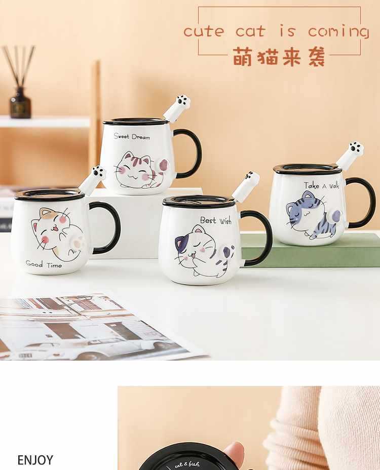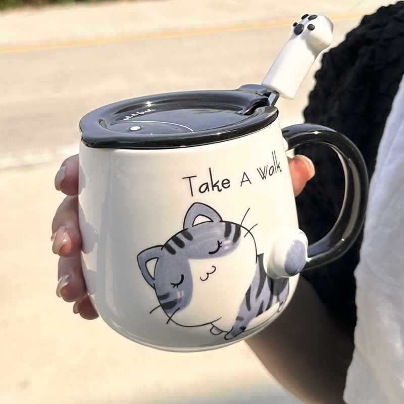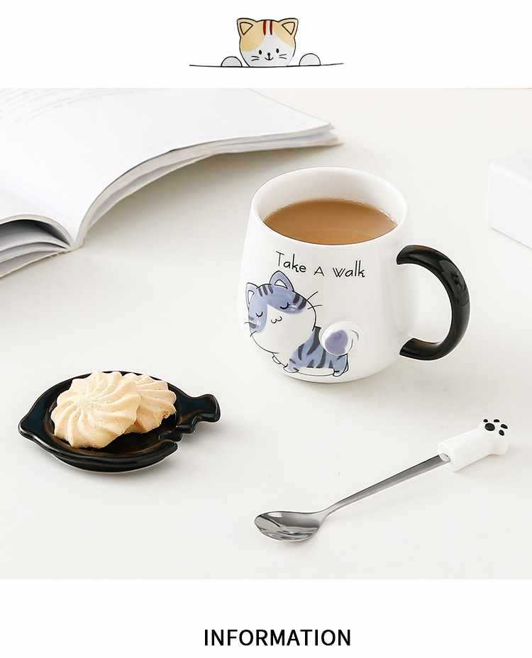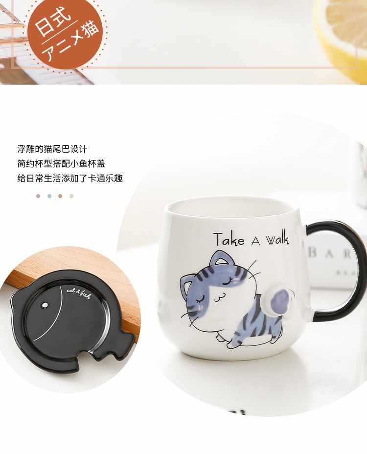 뚜껑이 있는 고양이 컵 마크, 스푼, 세라믹 물컵, 세라믹 만화 남성과 여성 커플 컵, 사무실 커피 아침 식사 컵스토어 가기