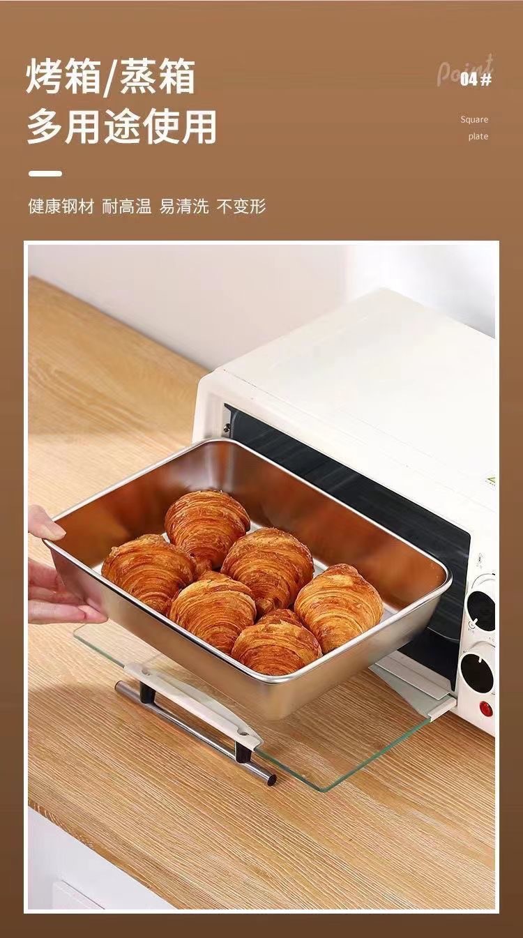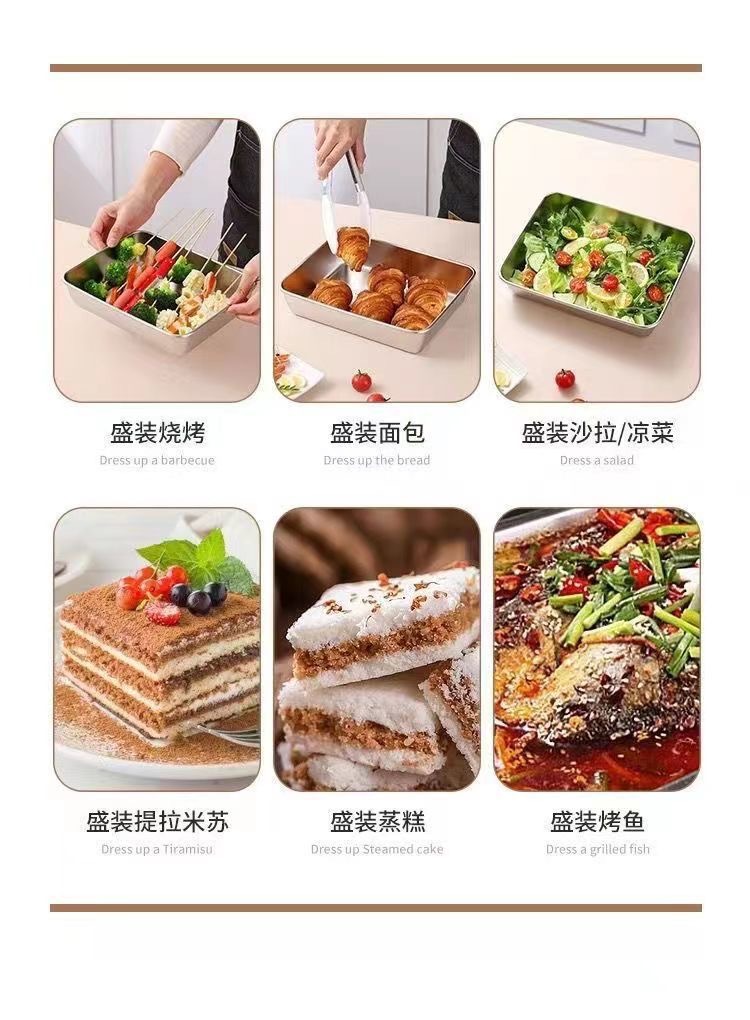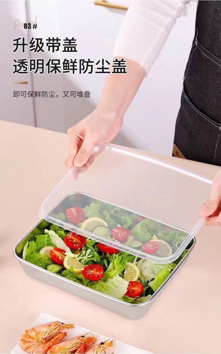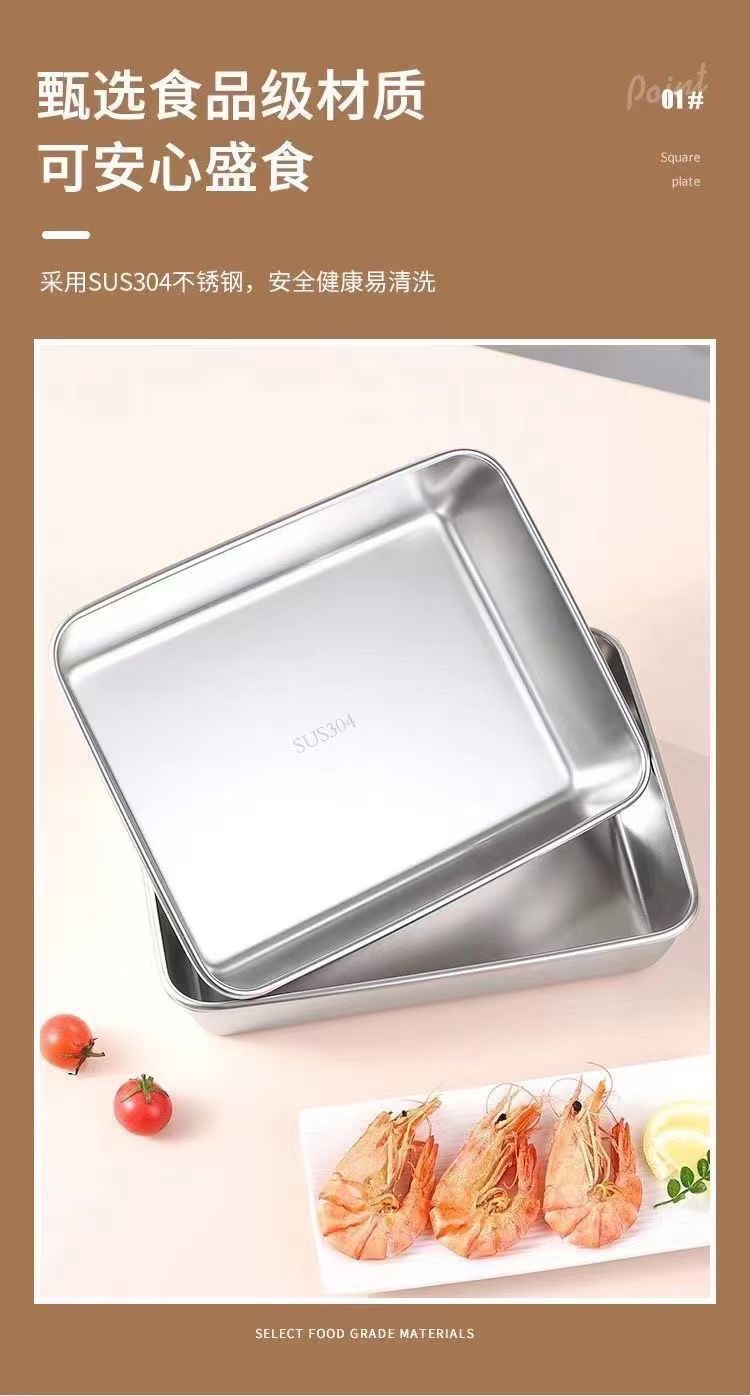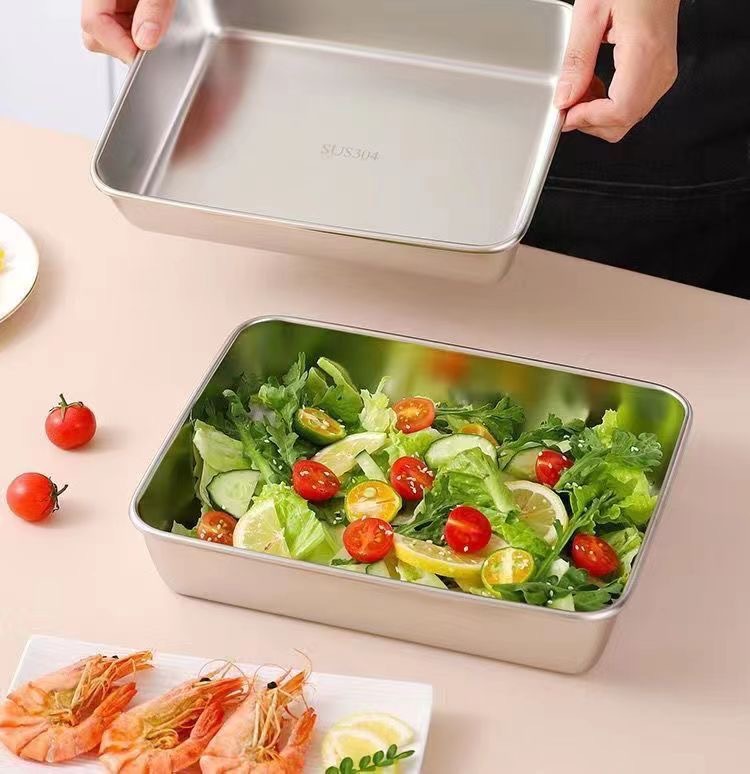 뚜껑이 있는 스테인레스 스틸 사각 접시 304 식품 등급 직사각형 트레이 초대형 준비 접시 차가운 접시 생선 구이 접시스토어 가기