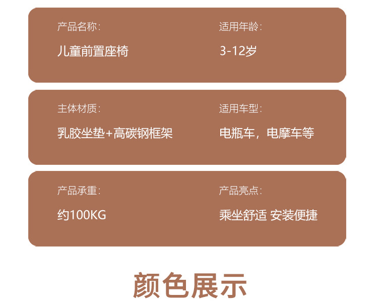 전기 자동차 어린이용 시트 전면 배터리 어린이용 아기 의자(아기 크기 참조)