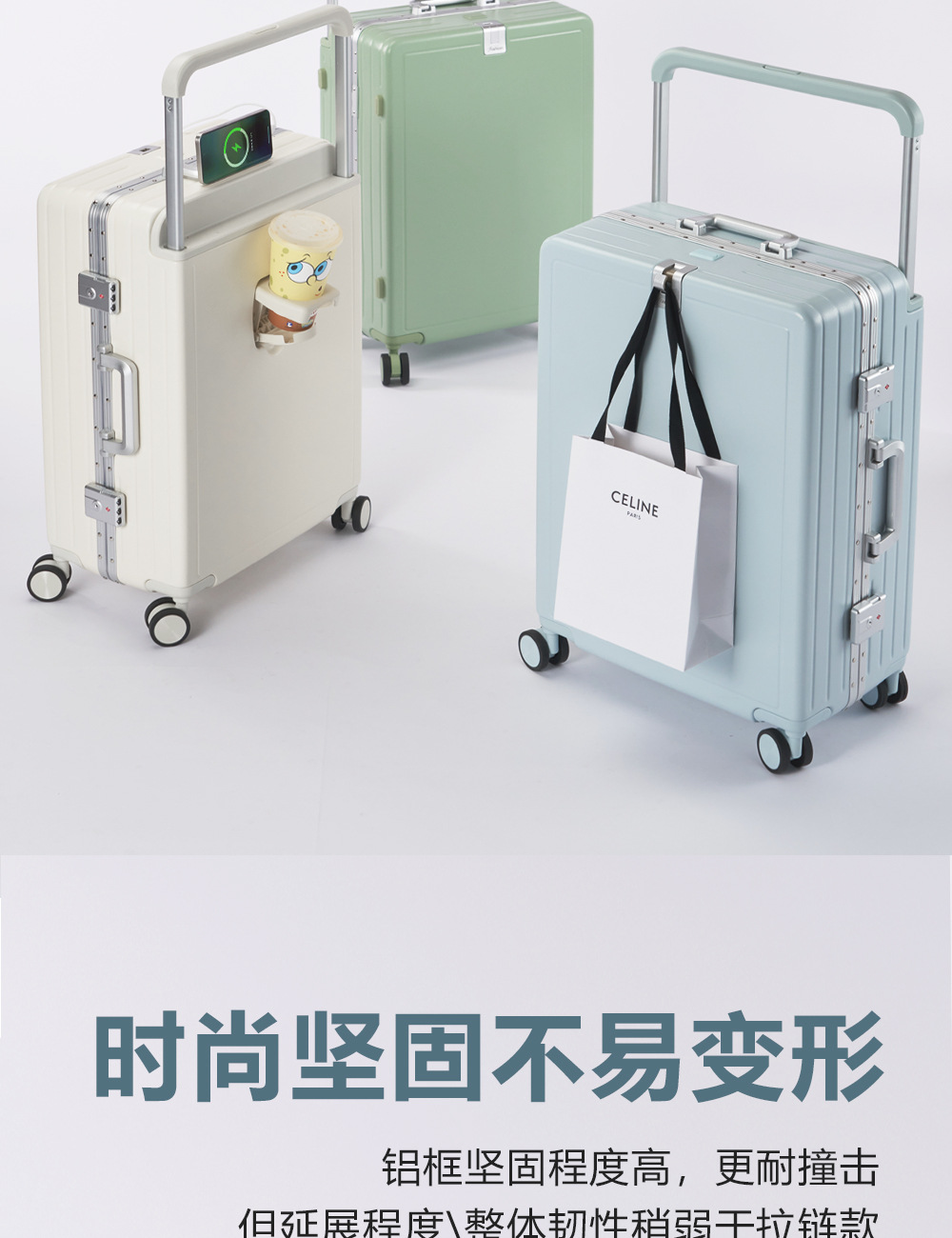 새로운 와이드 트롤리 가방 알루미늄 프레임 강력하고 내구성이 뛰어난 대용량 다기능 가방 학생 자동 비밀번호 상자