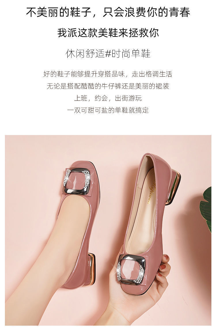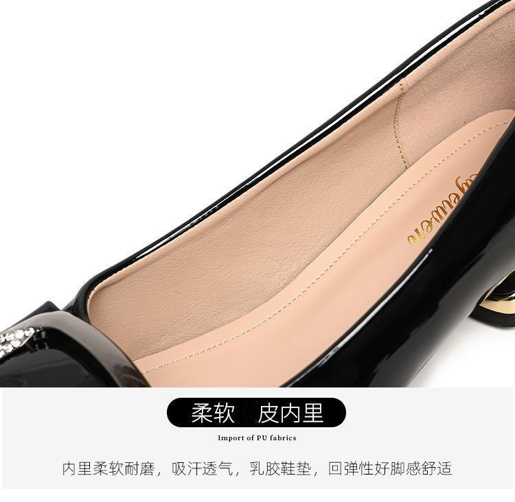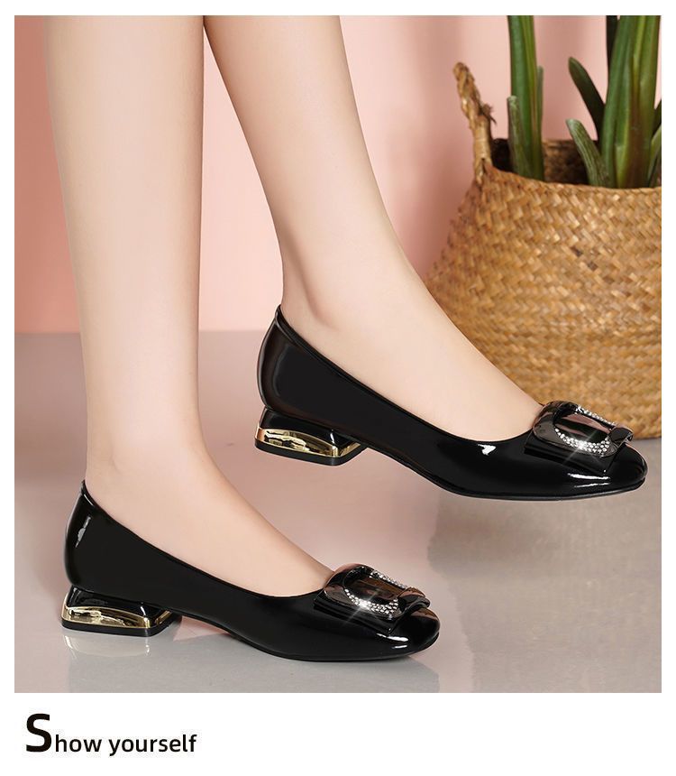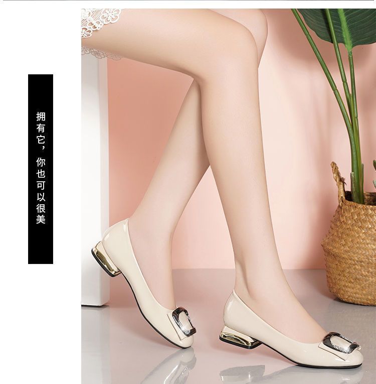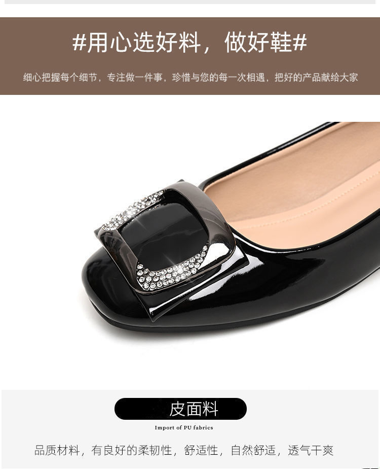 35-43 큰 사이즈 여성화 41 넓은 발과 뚱뚱한 발을 위한 로우힐 작은 가죽신, 에나멜 가죽 스퀘어토 싱글 슈즈, Mingwei스토어 가기