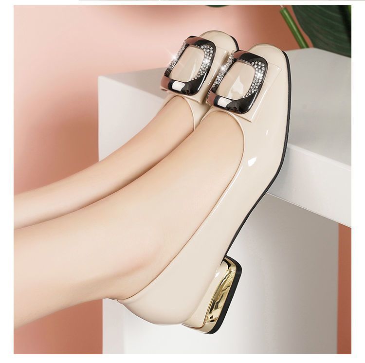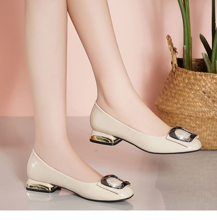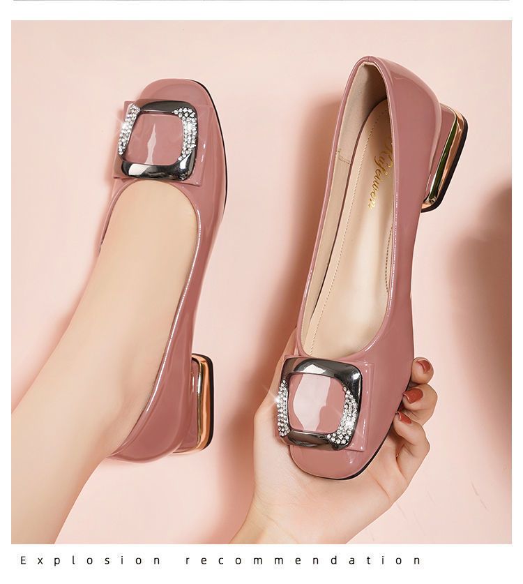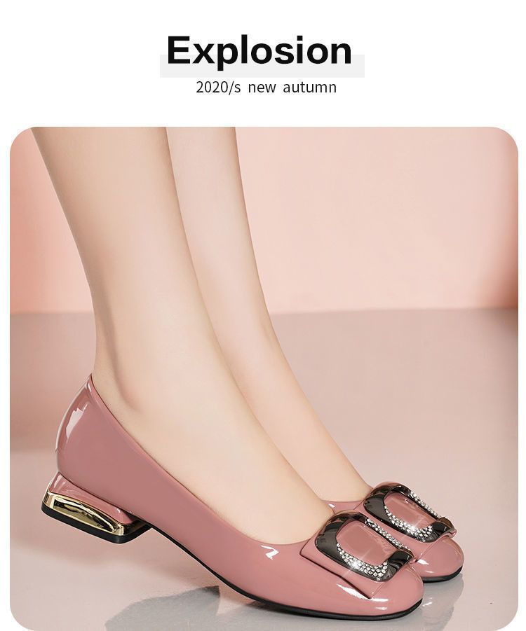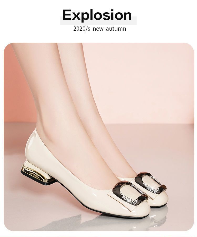 35-43 큰 사이즈 여성화 41 넓은 발과 뚱뚱한 발을 위한 로우힐 작은 가죽신, 에나멜 가죽 스퀘어토 싱글 슈즈, Mingwei스토어 가기
