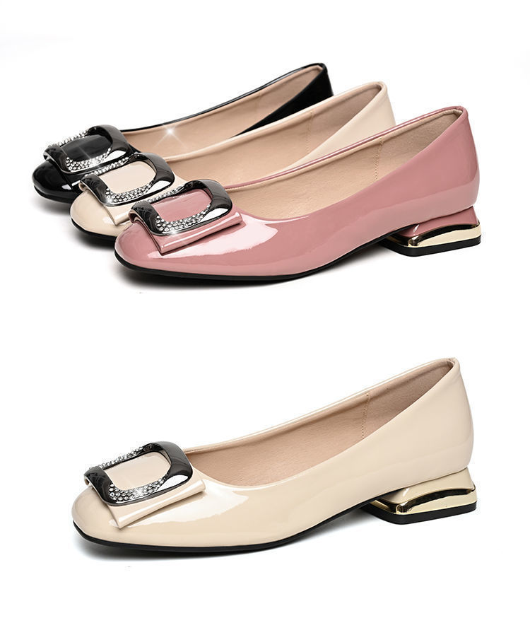 35-43 큰 사이즈 여성화 41 넓은 발과 뚱뚱한 발을 위한 로우힐 작은 가죽신, 에나멜 가죽 스퀘어토 싱글 슈즈, Mingwei