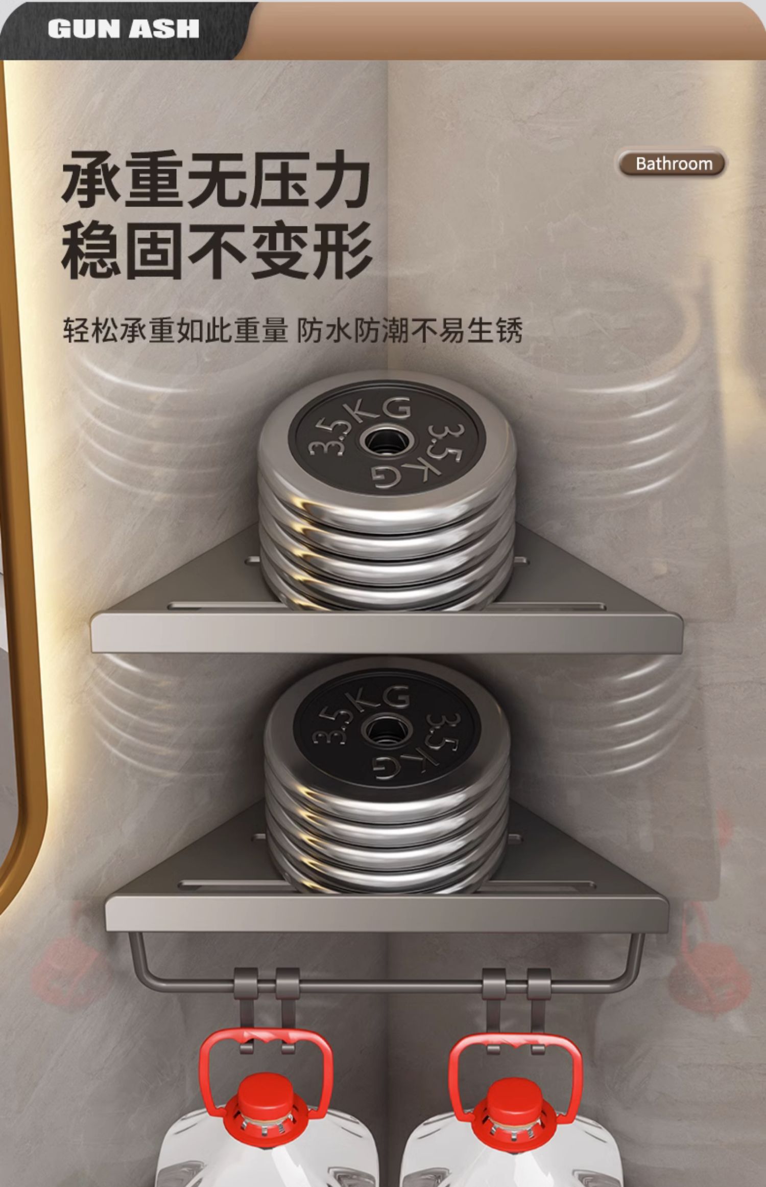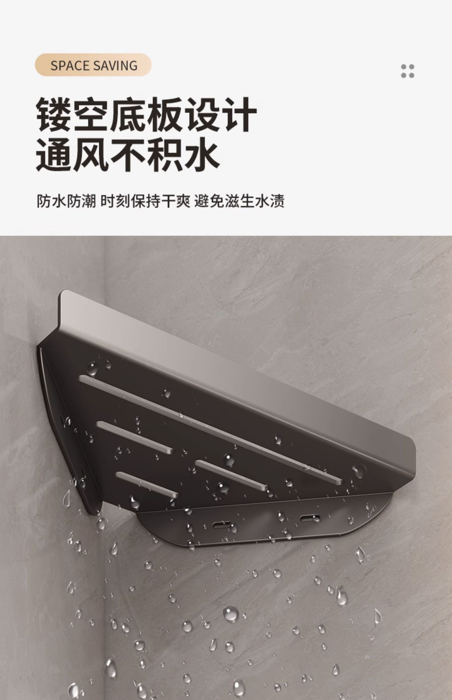 욕실 수납 선반, 벽걸이형 철제 금속 간격 삼각형 코너 화장실 욕실 수납