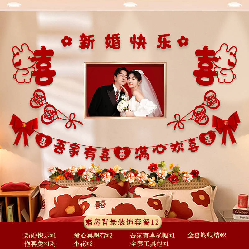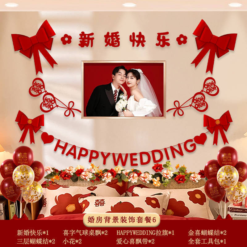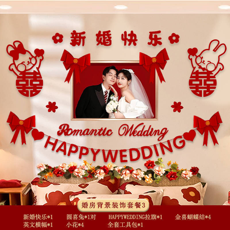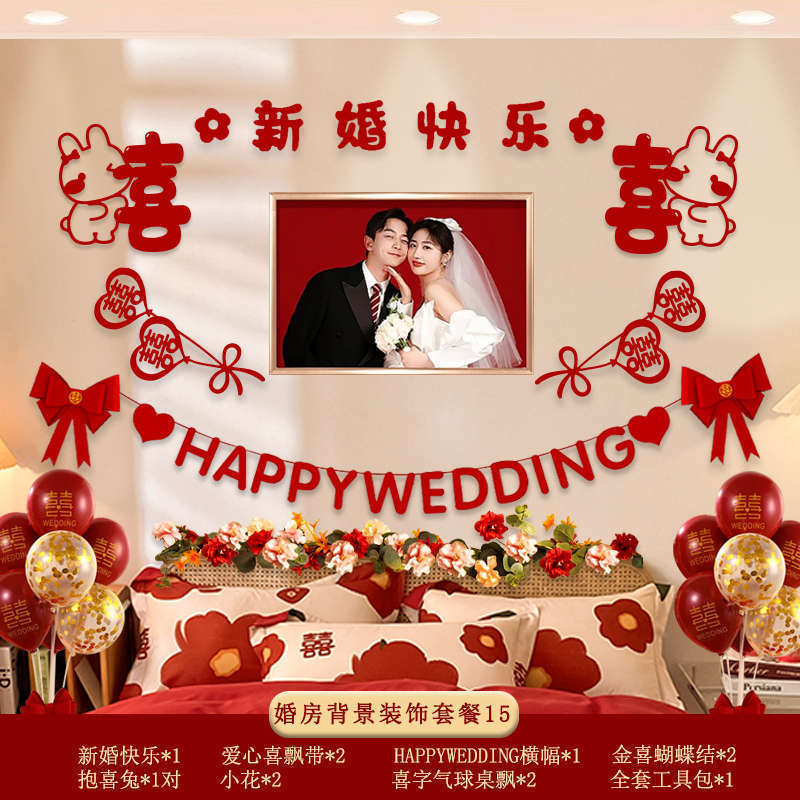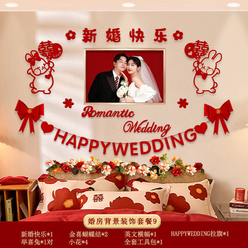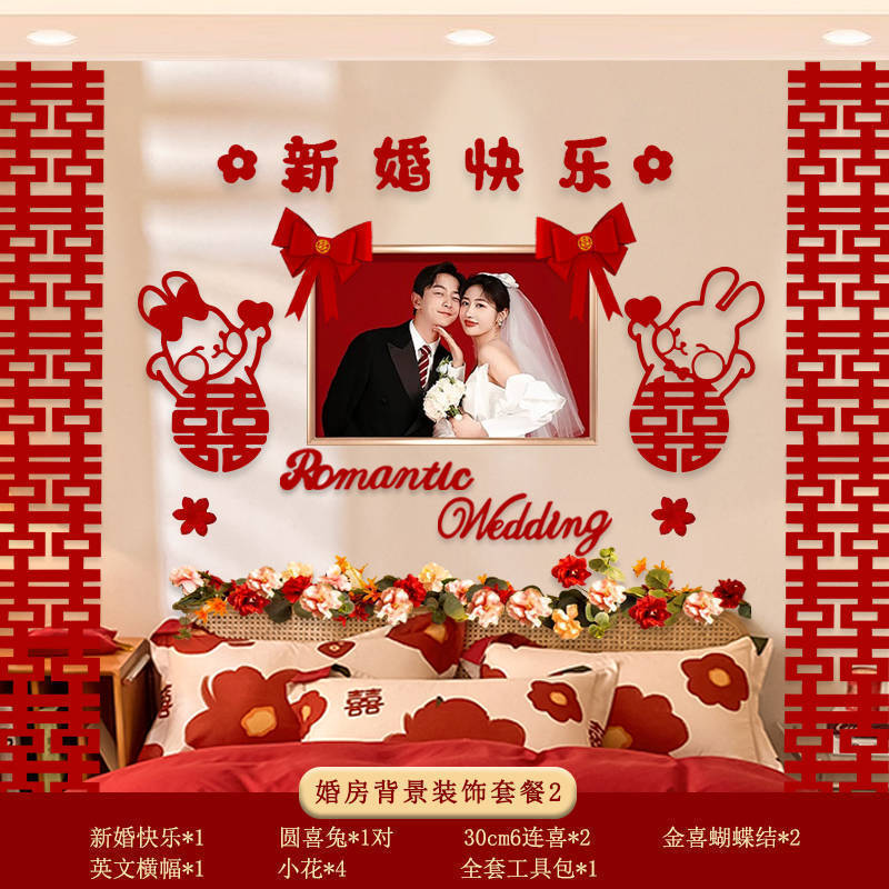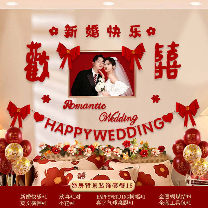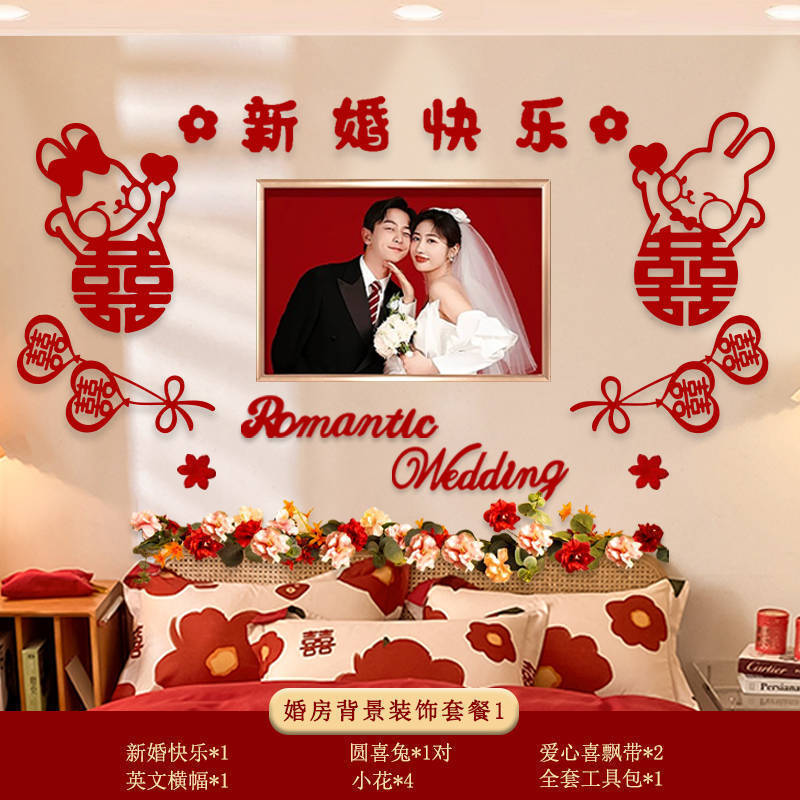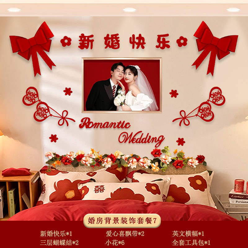웨딩 웨딩 룸 레이아웃 침대 옆 마스터 침실 침실 배경 벽 장식 분위기 있는 방 웨딩 사진 간단한 결혼식스토어 가기