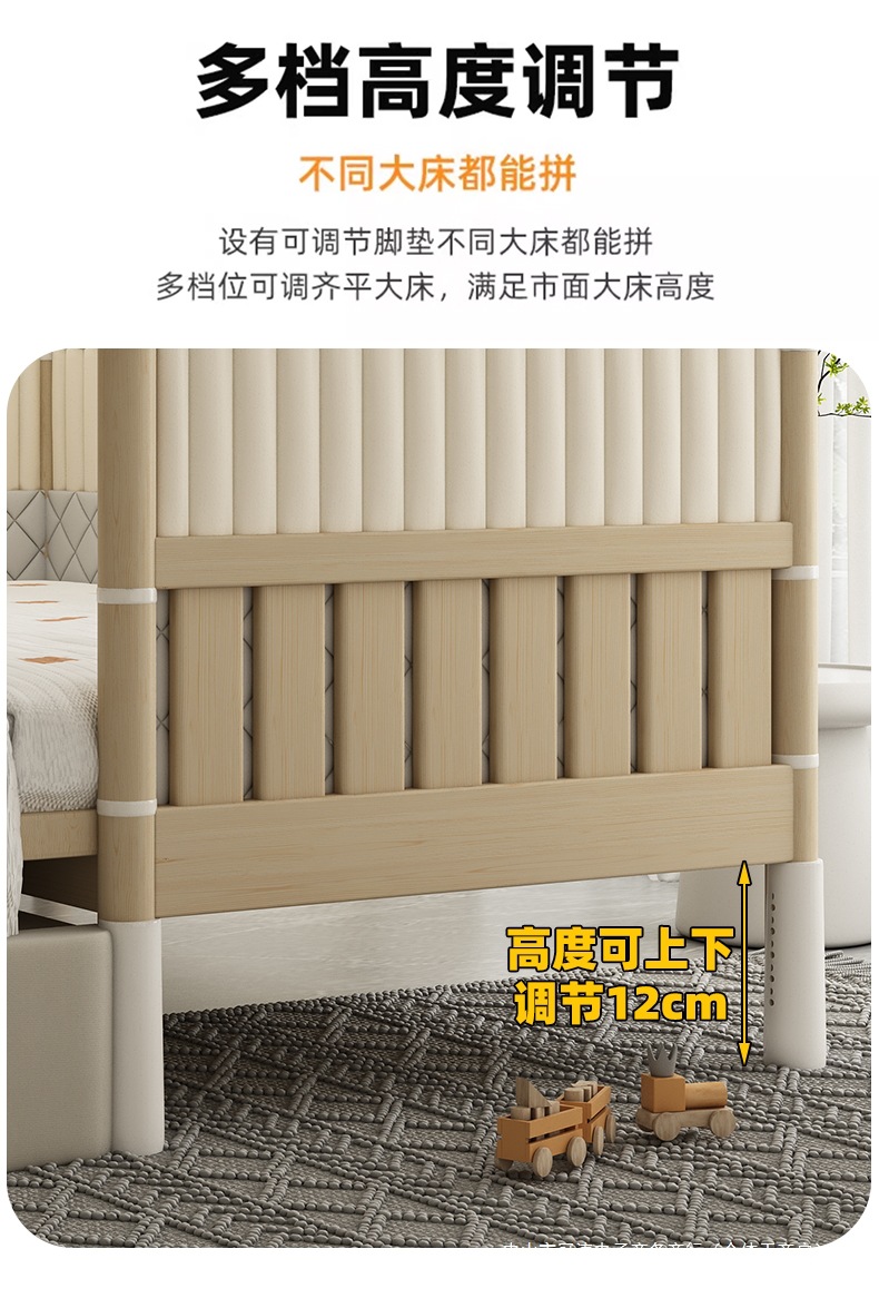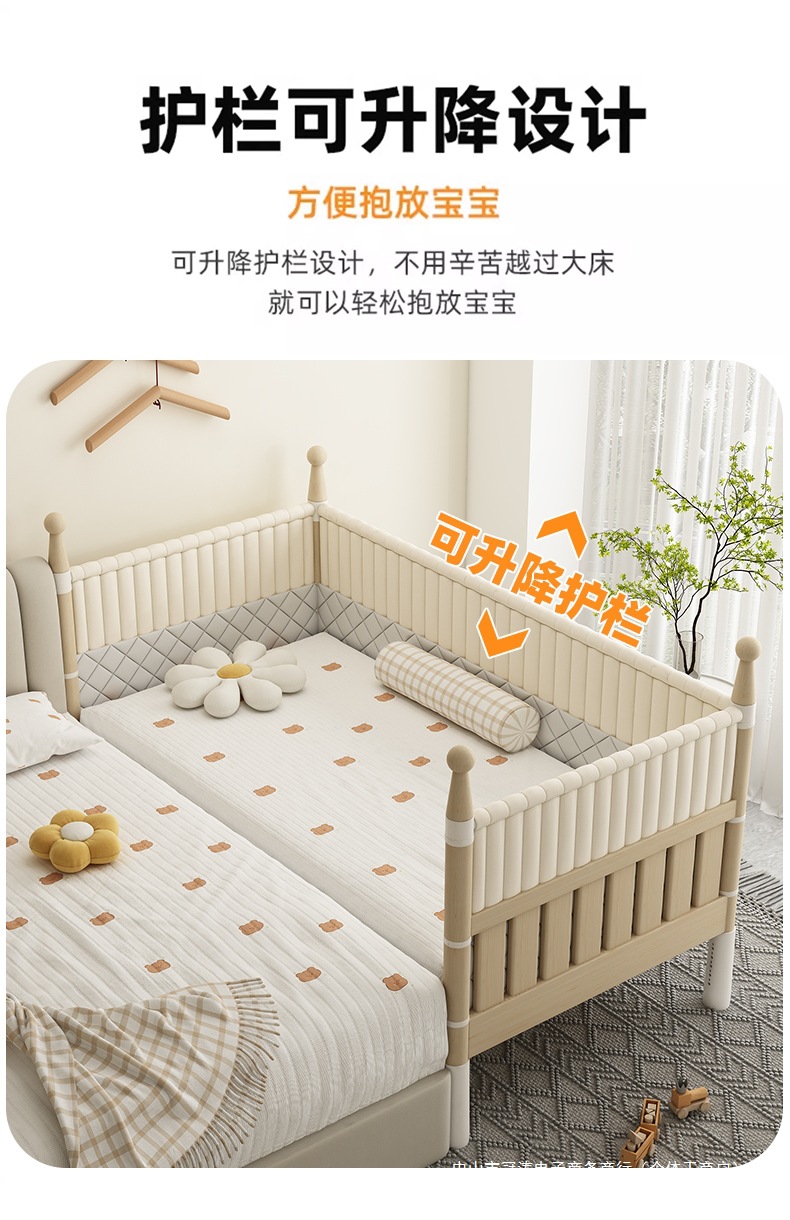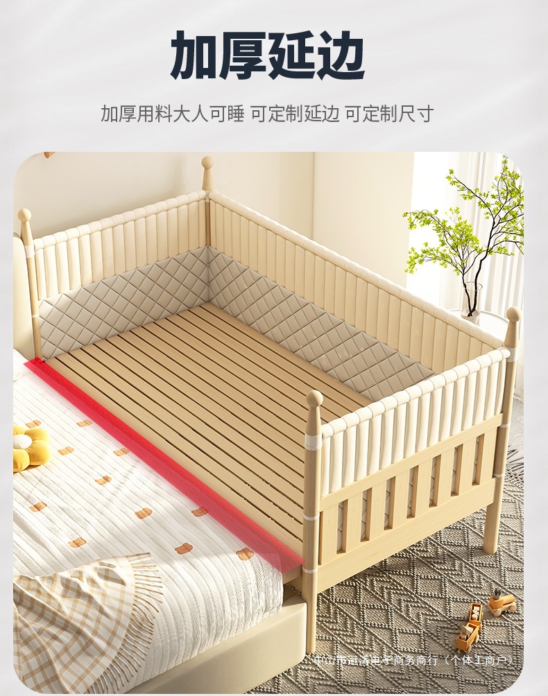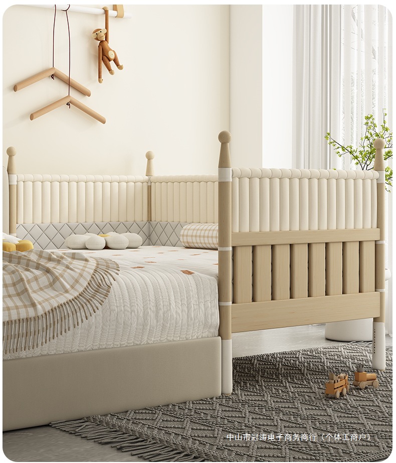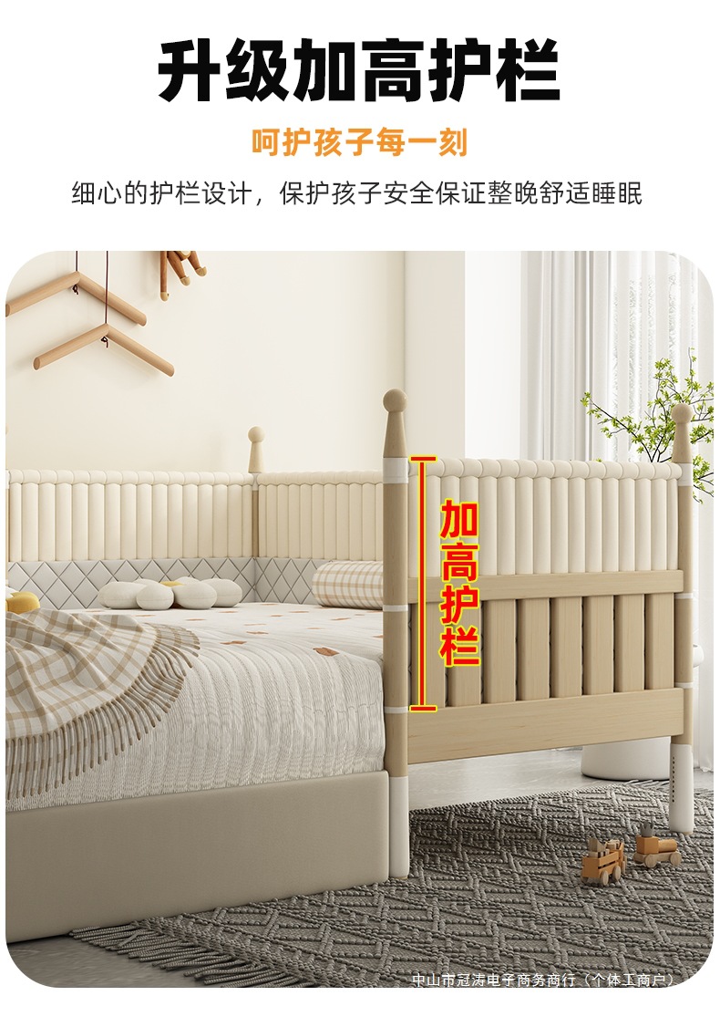 단단한 나무 어린이 침대, 높은 가드레일, 아기 공주 침대 옆 침대, 확장된 측면 유아용 침대, 대형 침대와 접합, 들어 올릴 수 있음