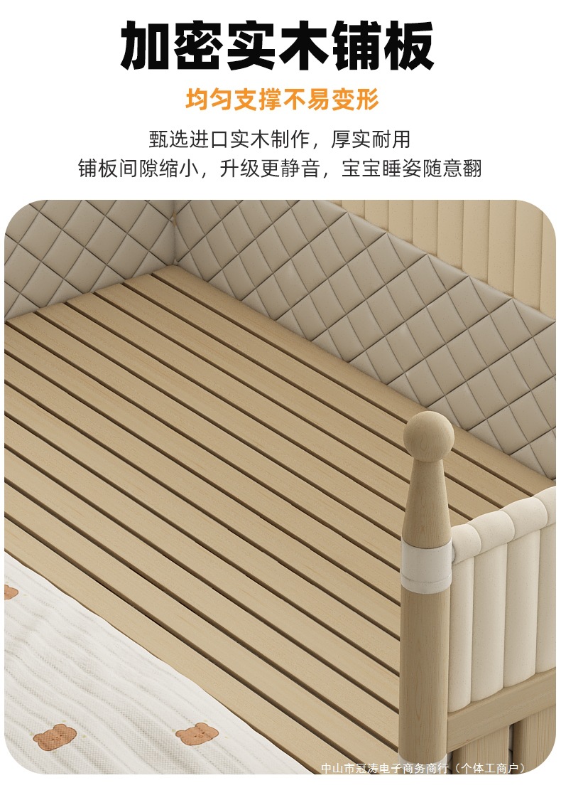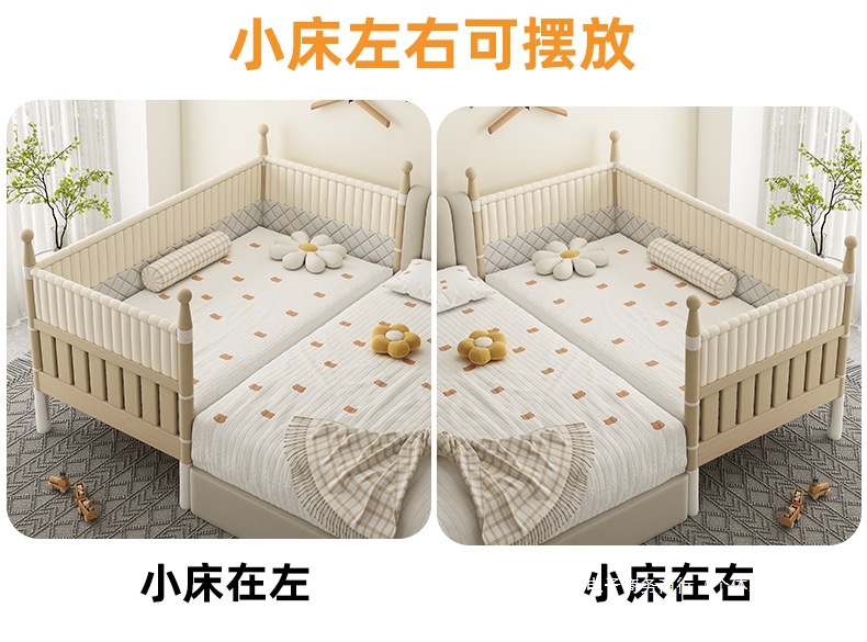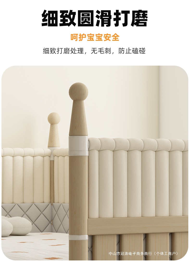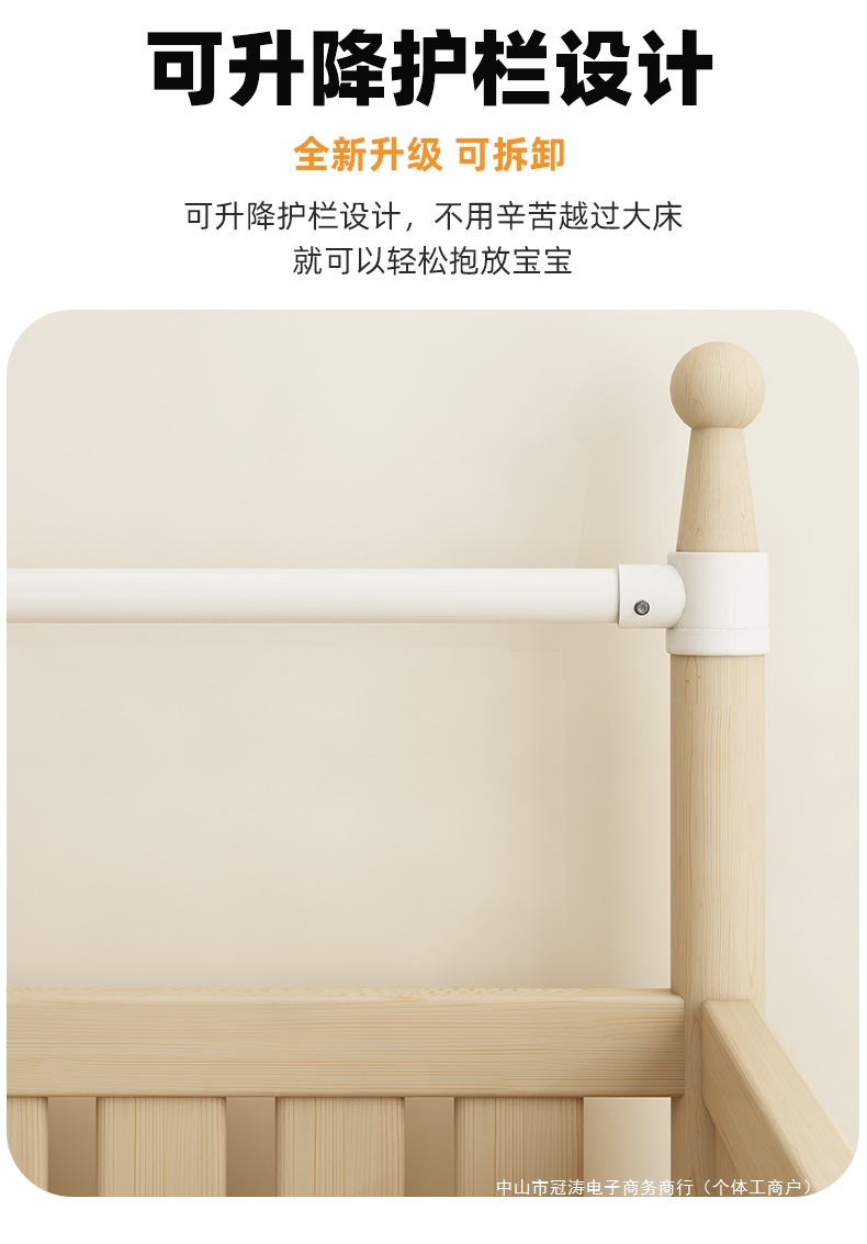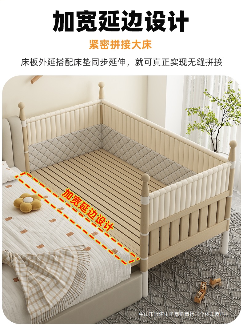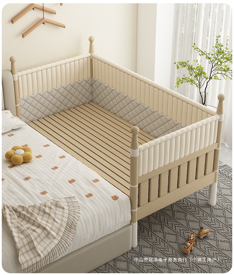 단단한 나무 어린이 침대, 높은 가드레일, 아기 공주 침대 옆 침대, 확장된 측면 유아용 침대, 대형 침대와 접합, 들어 올릴 수 있음