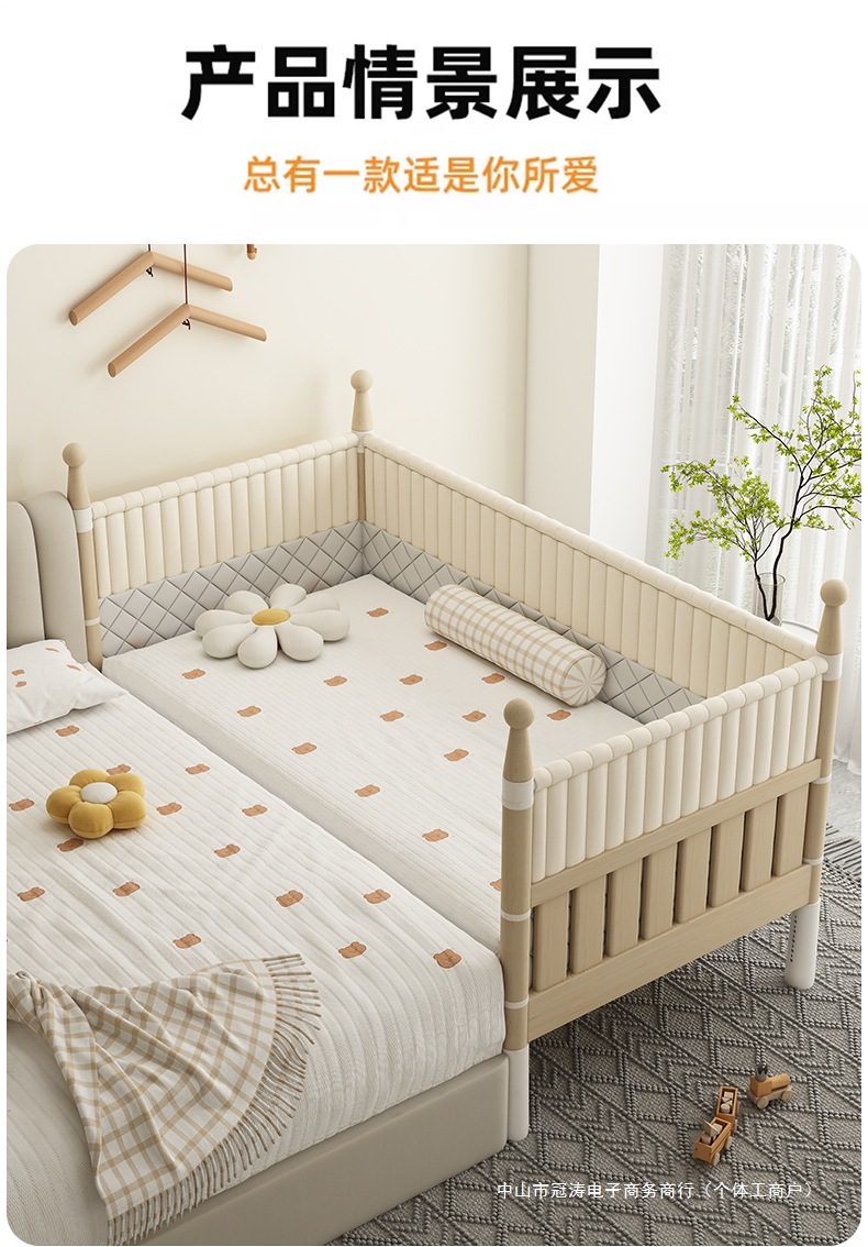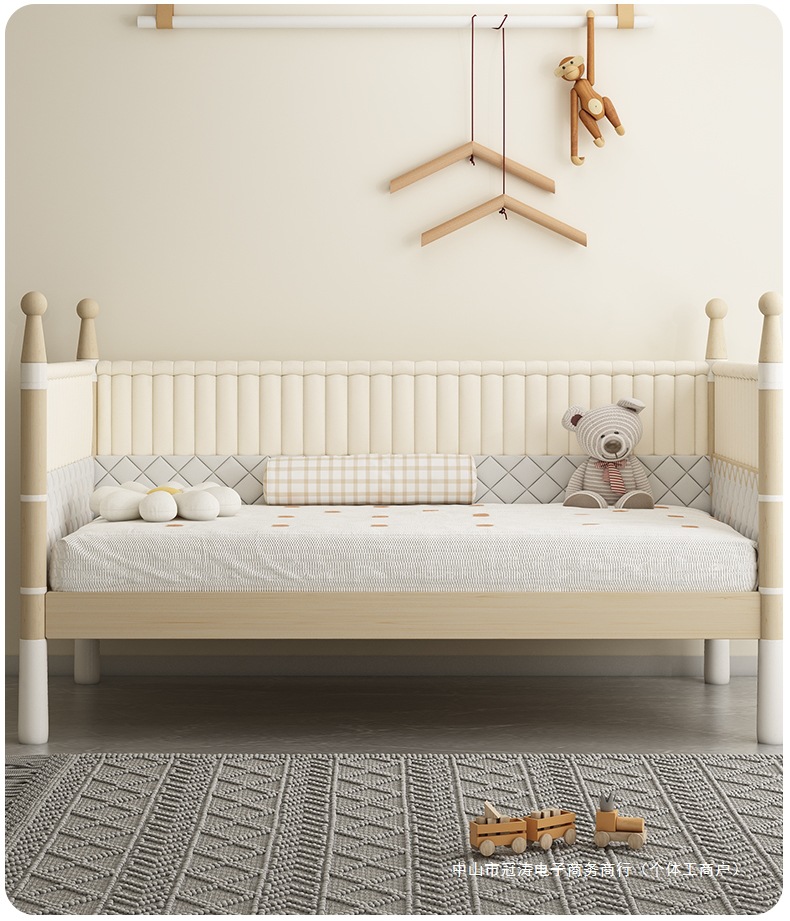 단단한 나무 어린이 침대, 높은 가드레일, 아기 공주 침대 옆 침대, 확장된 측면 유아용 침대, 대형 침대와 접합, 들어 올릴 수 있음스토어 가기