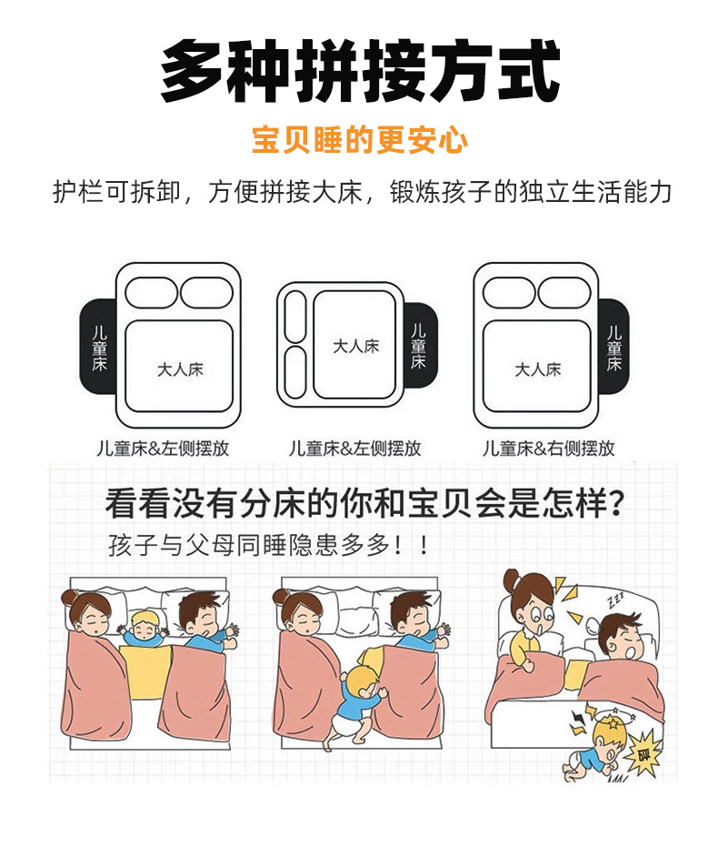 • 3면 높은 가드레일 + 침대 옆 + 6cm 라텍스 코코넛 야자 매트리스