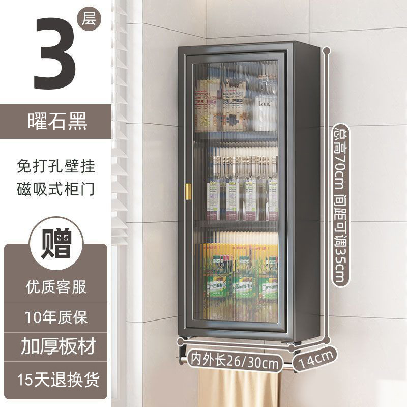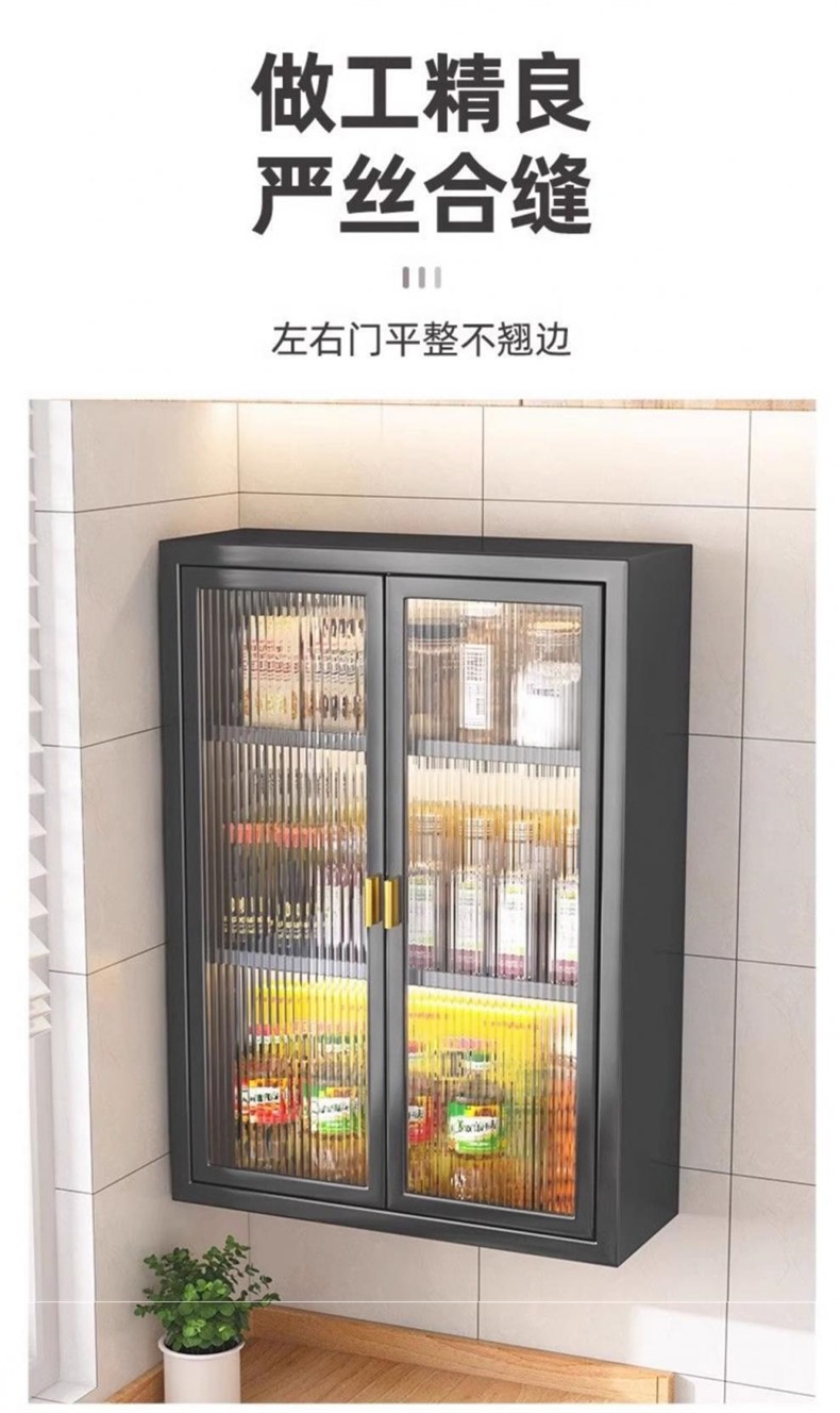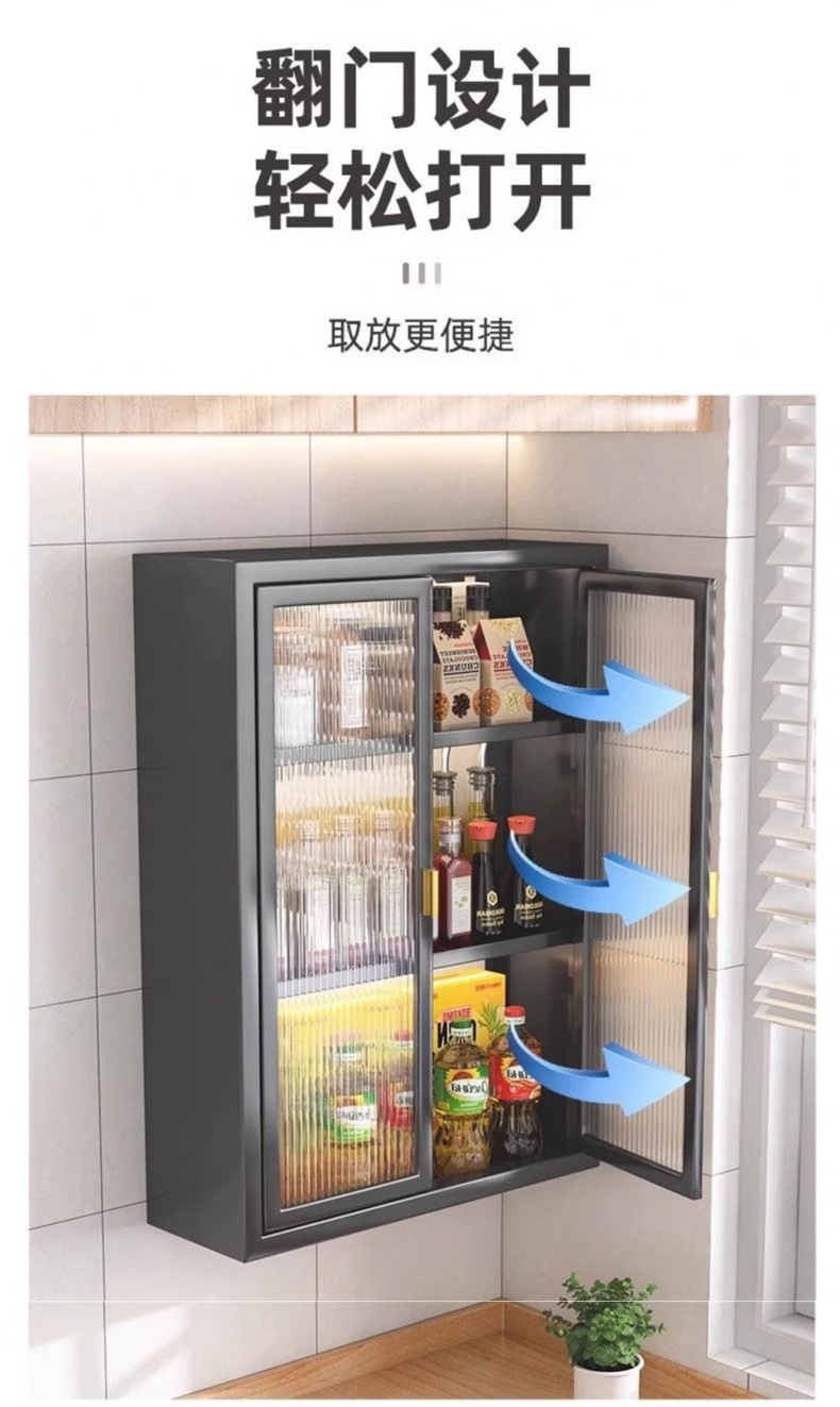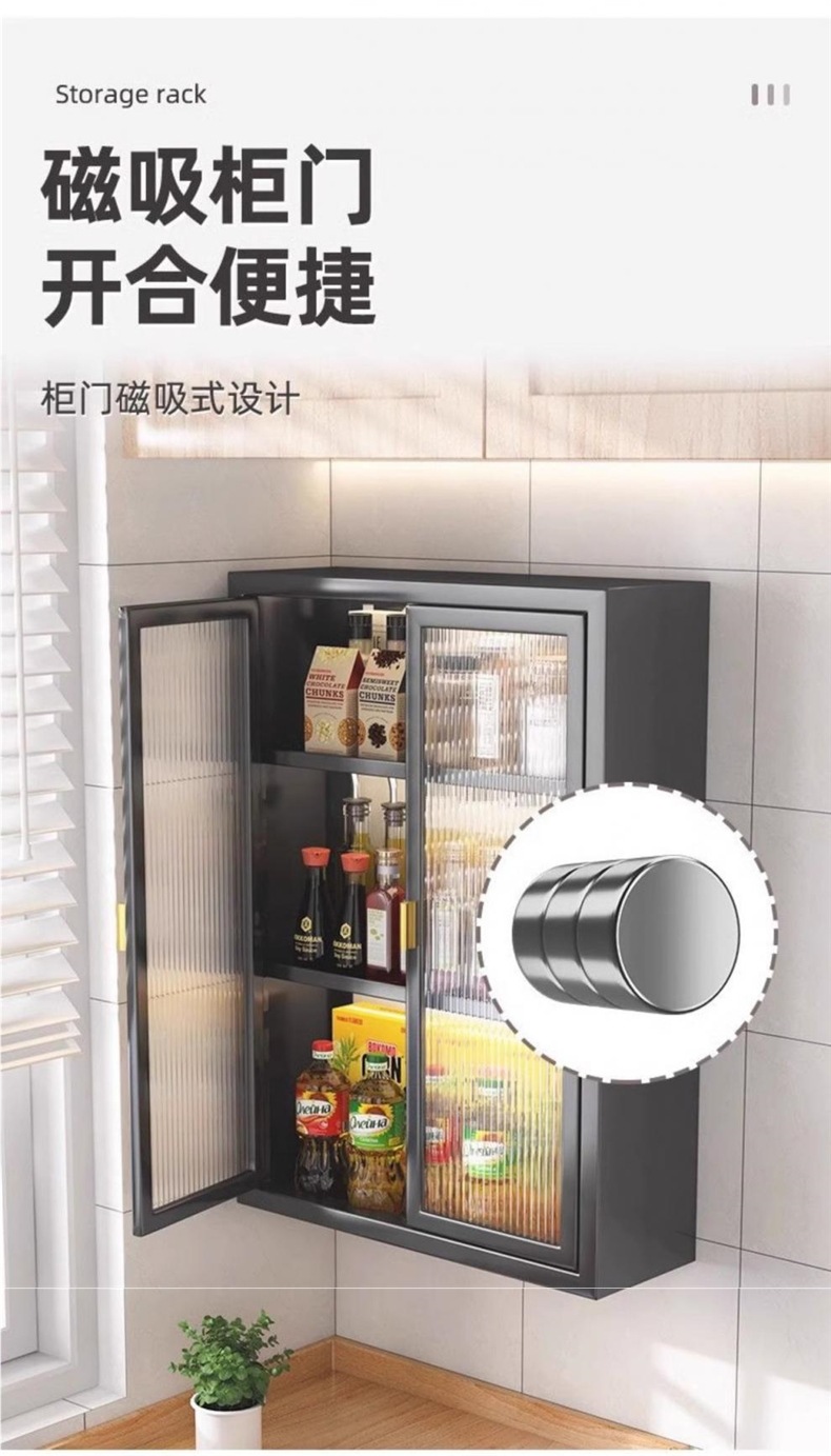 문이 있는 주방 수납 캐비닛, 벽에 구멍을 뚫을 필요 없음, 문이 있는 벽걸이형 다기능 방진 조미료 캐비닛스토어 가기