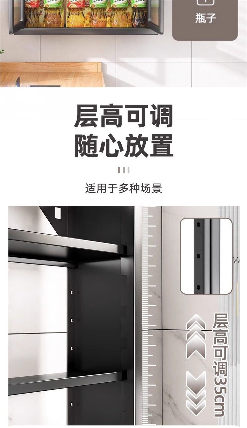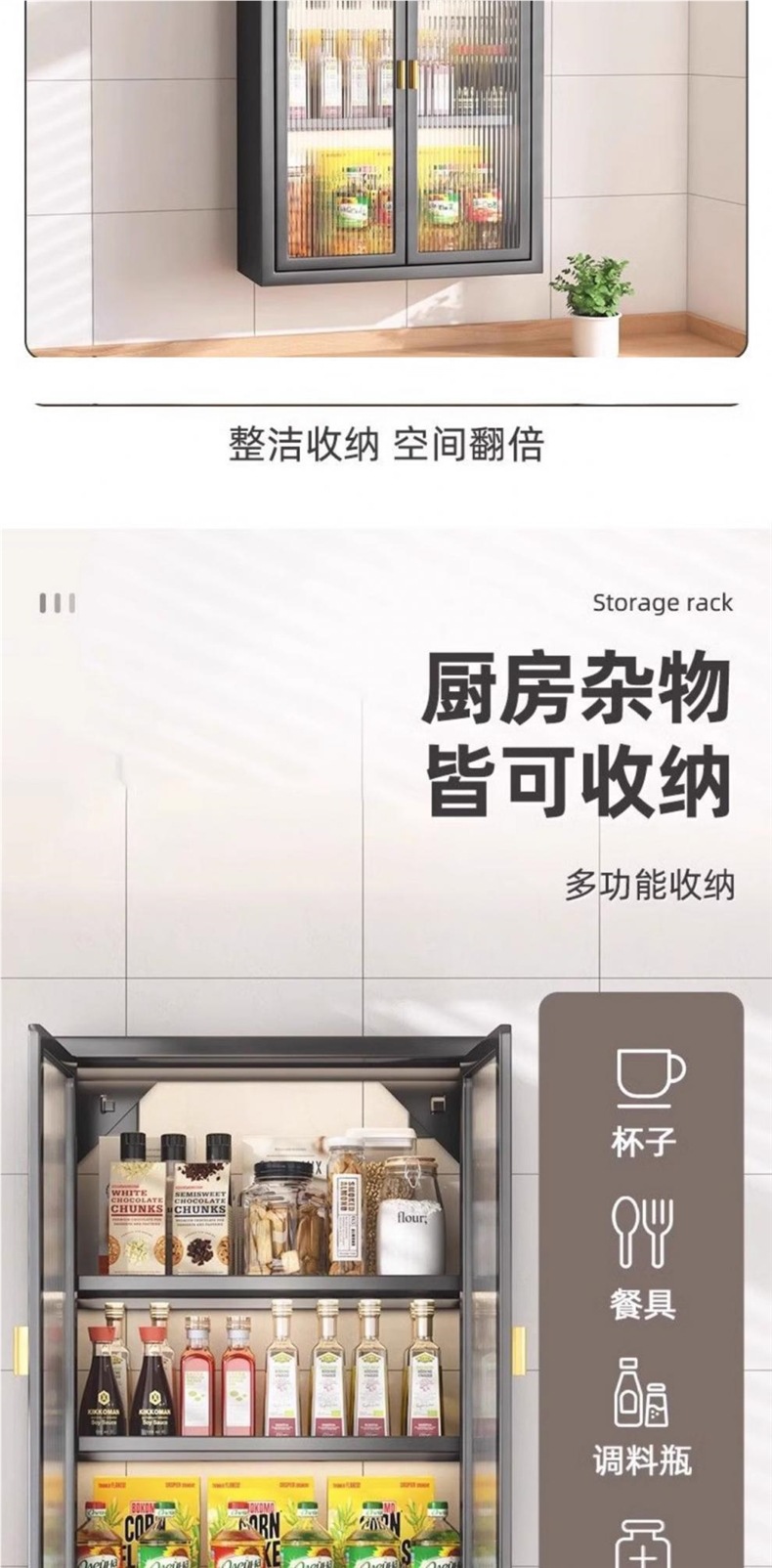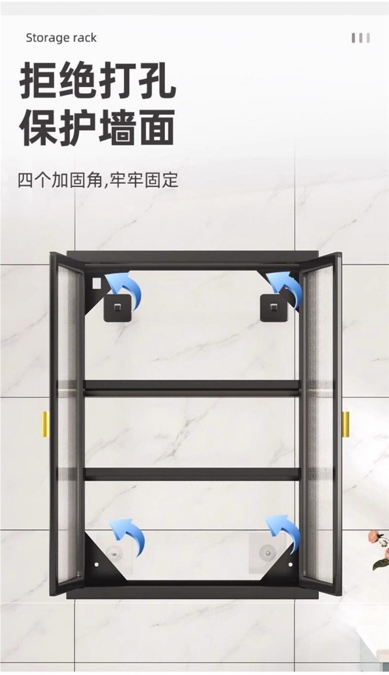 문이 있는 주방 수납 캐비닛, 벽에 구멍을 뚫을 필요 없음, 문이 있는 벽걸이형 다기능 방진 조미료 캐비닛스토어 가기
