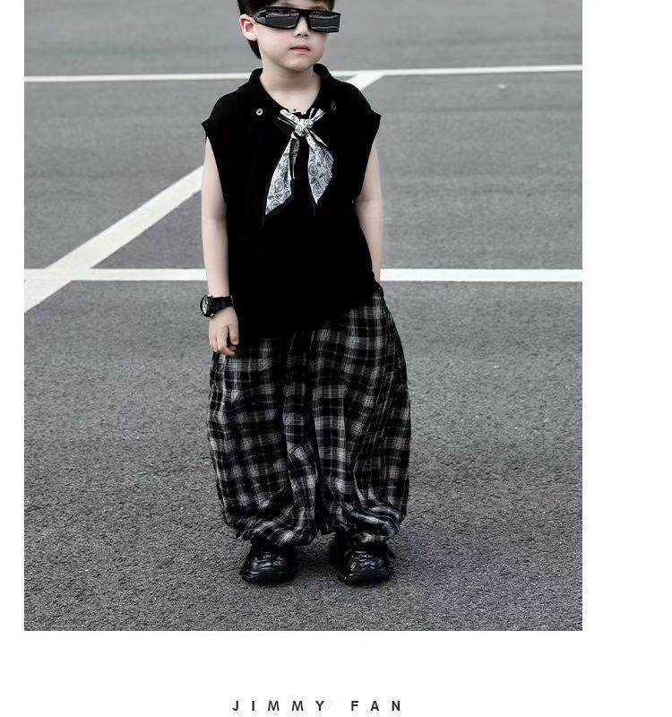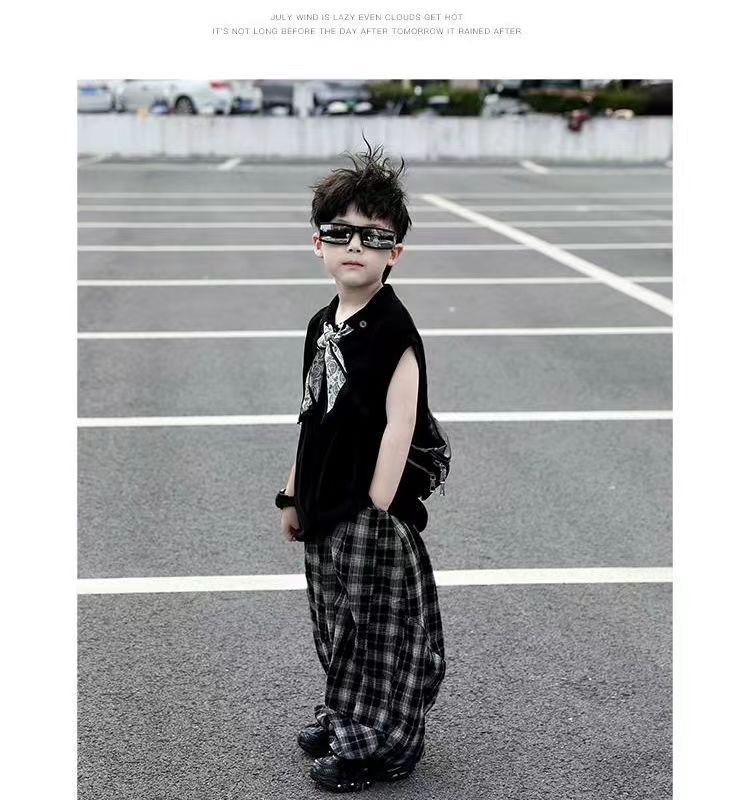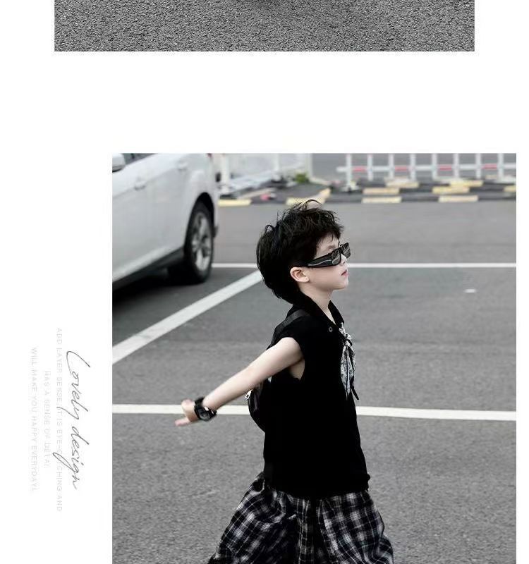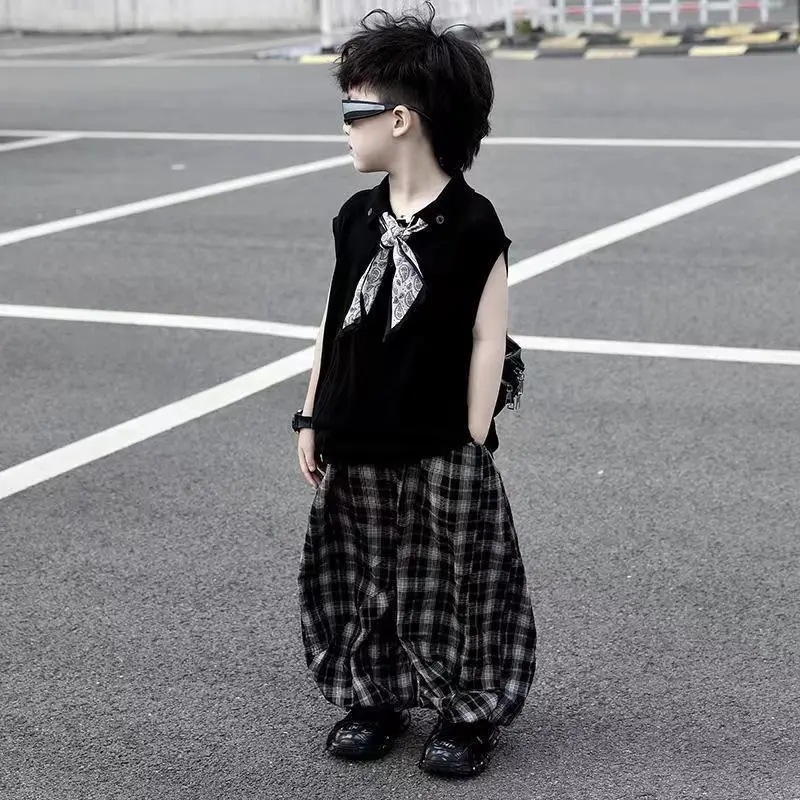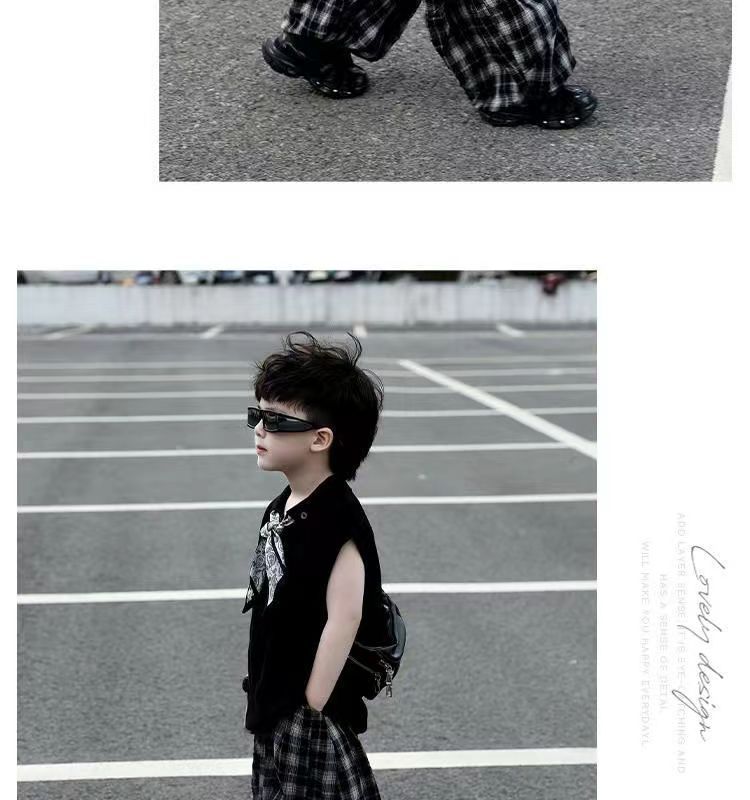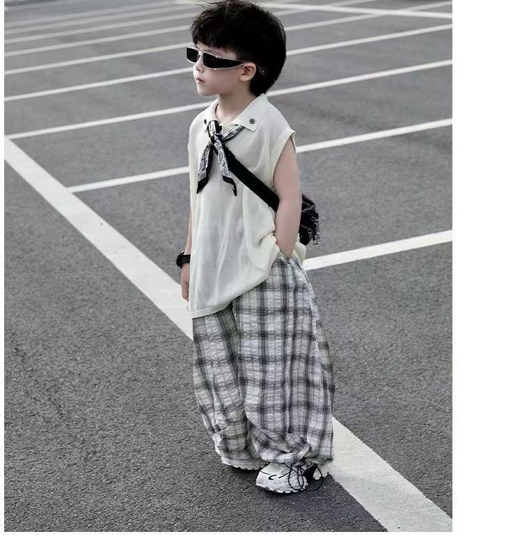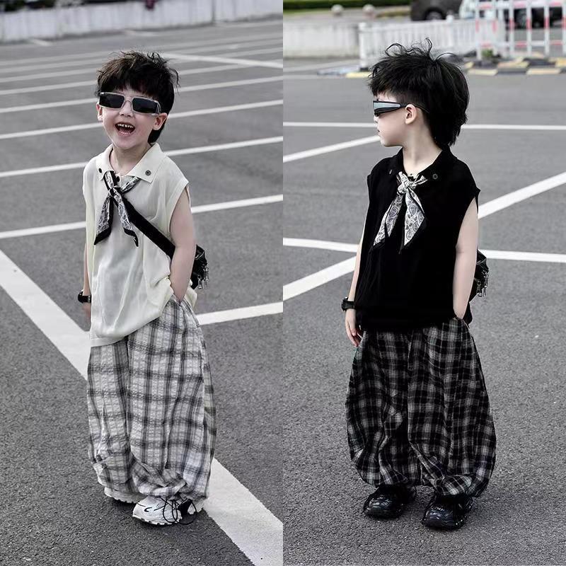 소년 여름 정장 2025 새로운 여름 어린이 민소매 조끼 스웨터 소년 모기 방지 바지 투피스 유행 세트스토어 가기