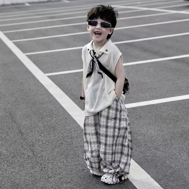 소년 여름 정장 2025 새로운 여름 어린이 민소매 조끼 스웨터 소년 모기 방지 바지 투피스 유행 세트