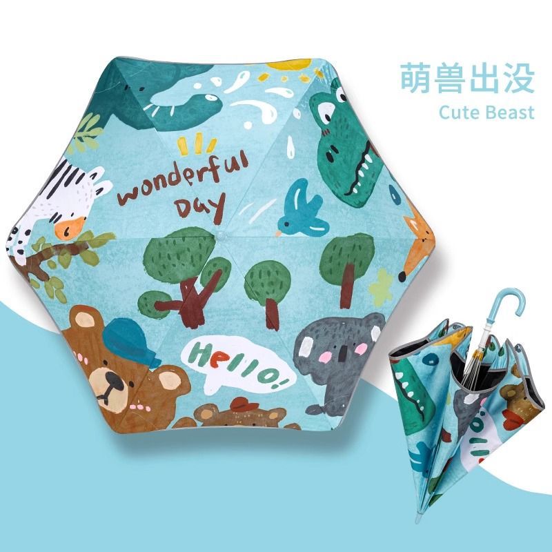 • 【유치원 긴 손잡이 둥근 모서리 우산】 동물 놀이공원 ✦