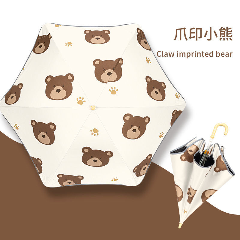 • 【유치원 긴 손잡이 둥근 모서리 우산】 발자국 곰돌이 ✦