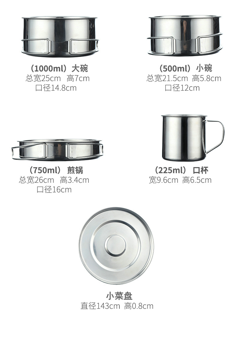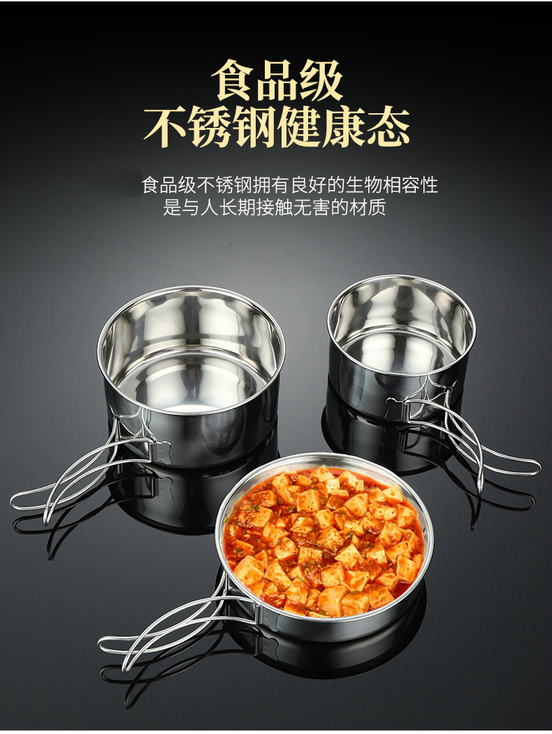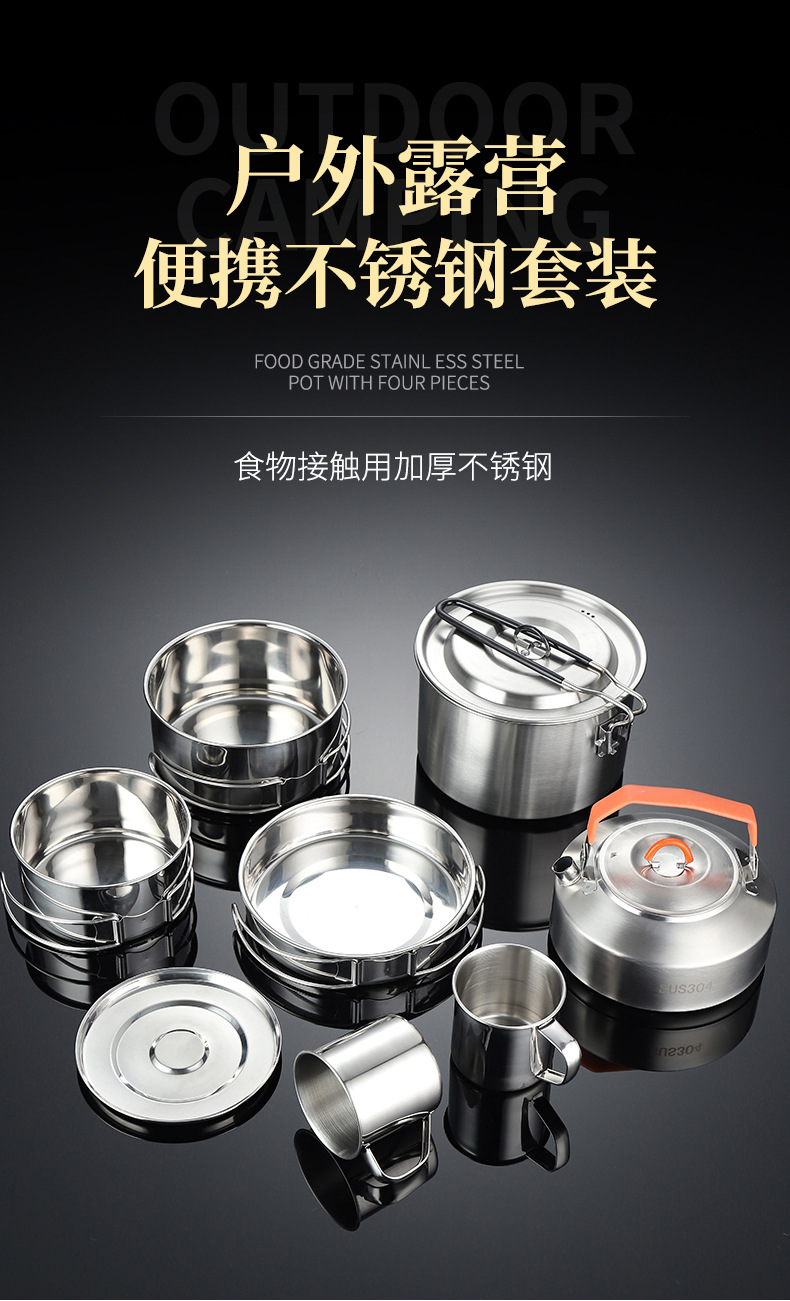 스테인레스 스틸 304 야외 휴대용 냄비 세트 캠핑 피크닉 식기 야외 자율 주행 여행스토어 가기