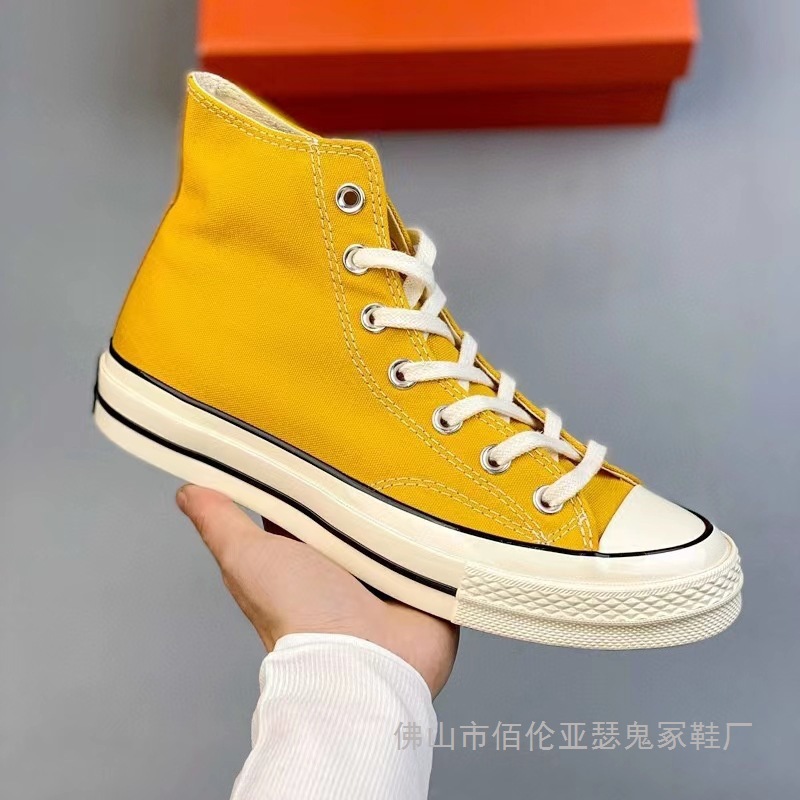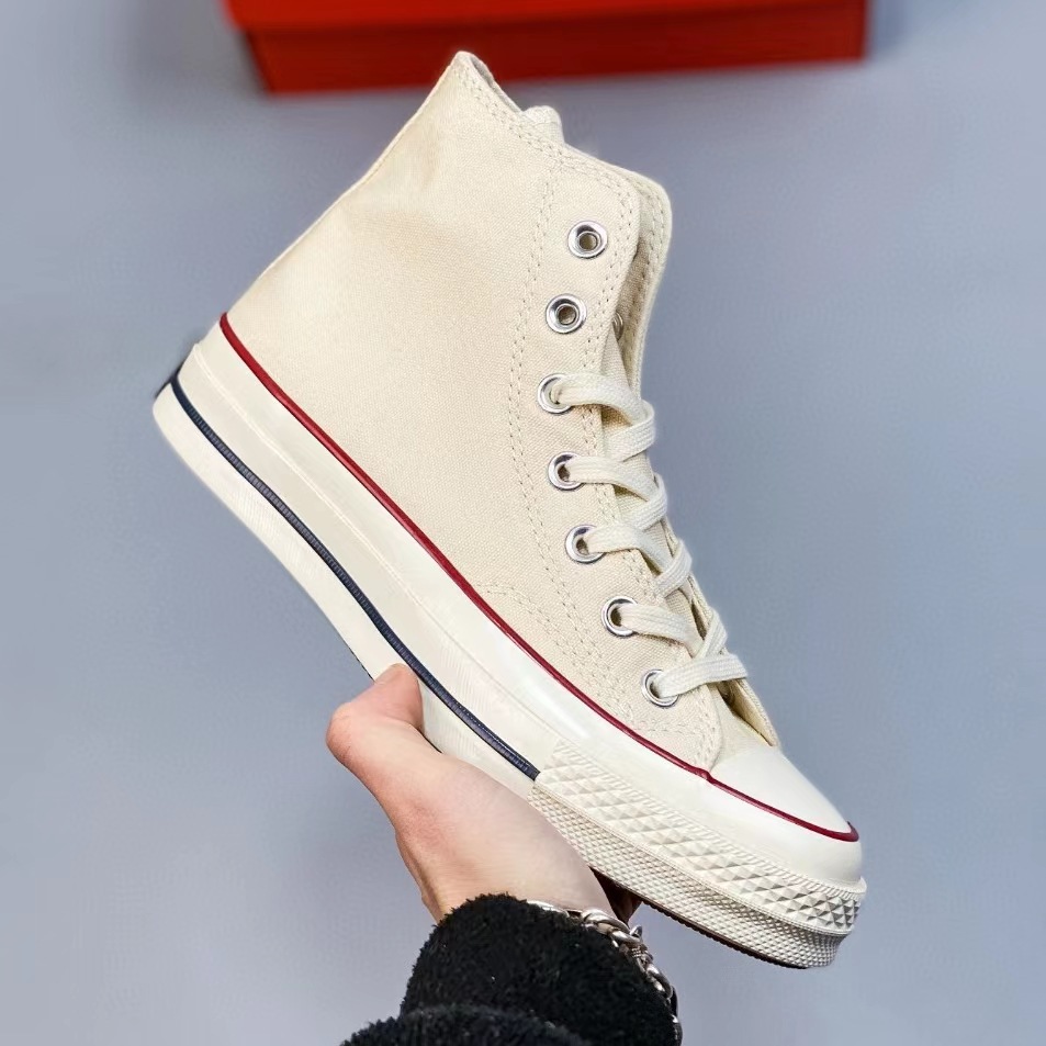 Putian Shoes Pure Original 1970S 클래식 하이 탑 캔버스 슈즈 더블 스트립 크림 헤드 남성과 여성을위한 Vulcanized Sole Couple Shoes스토어 가기