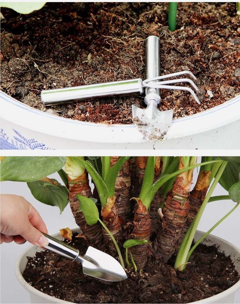 미니 스테인레스 스틸 화분 토양 갈퀴 작은 갈퀴 도구 정원 삽 식물 발코니 화분에 심은 꽃 심기 특수