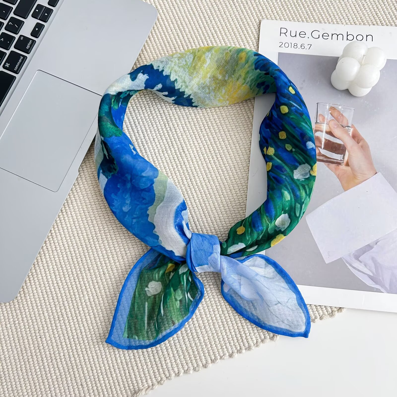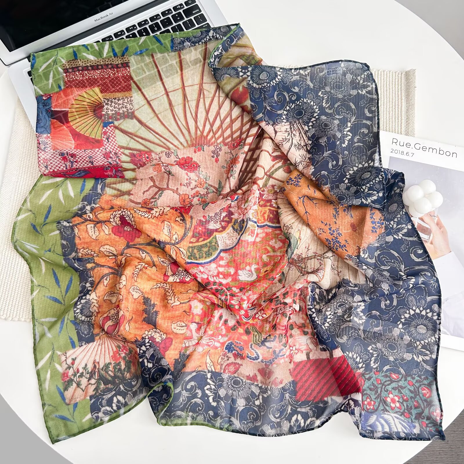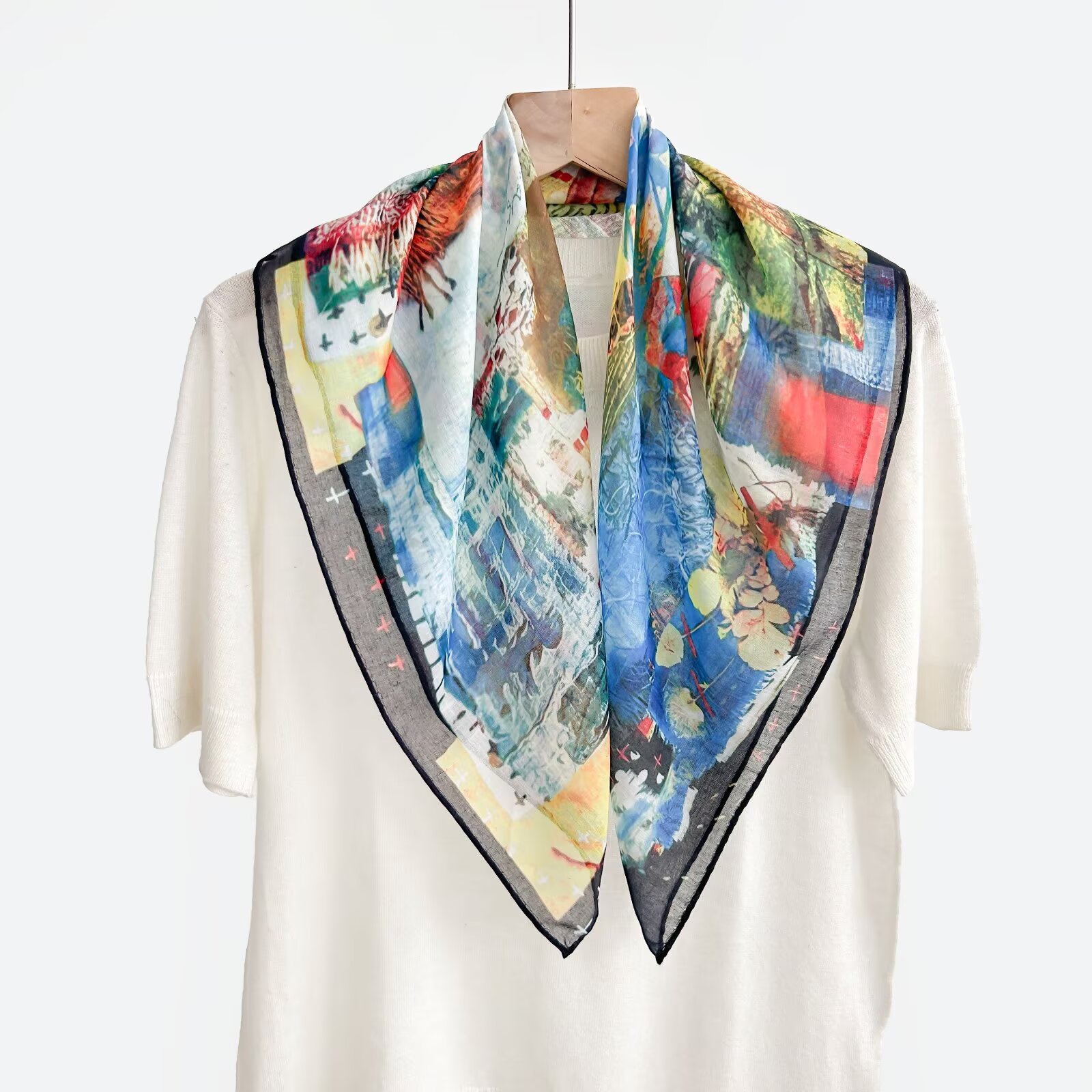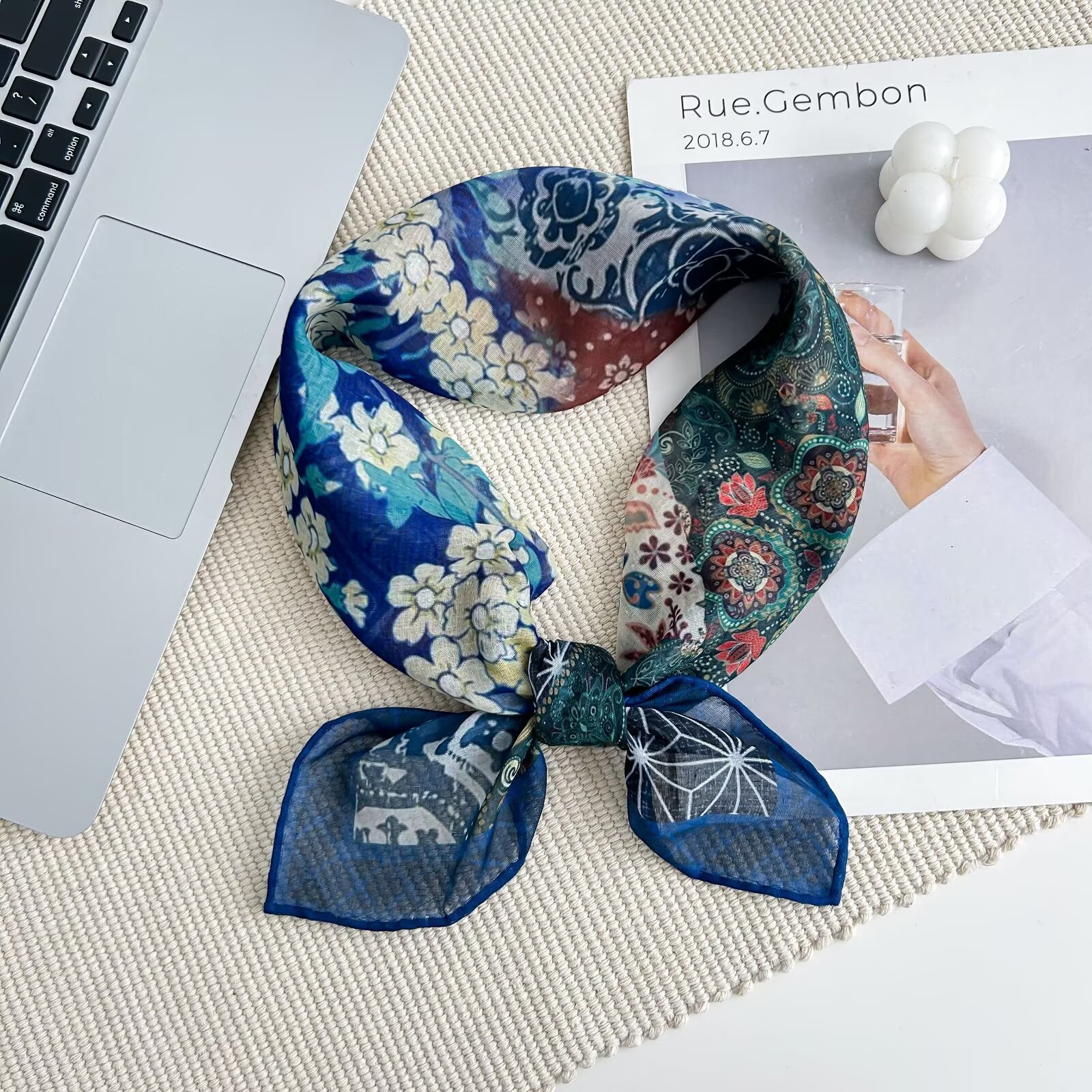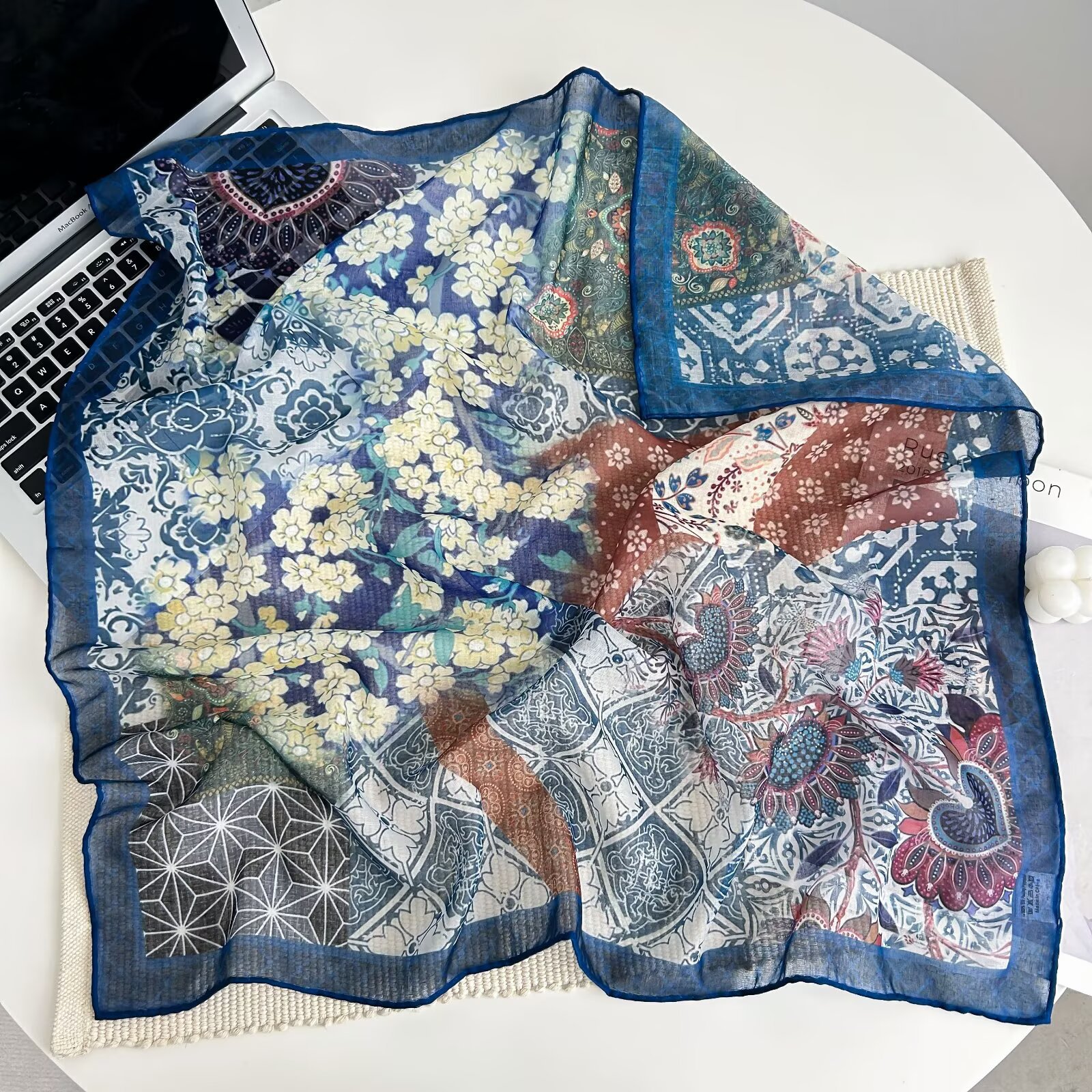 70개의 사각 스카프, 실크 면 느낌, 고화질 프린트 실크 스카프, 여성 민족 스타일 복고풍 유화 얇은 스카프, 다용도 스카프