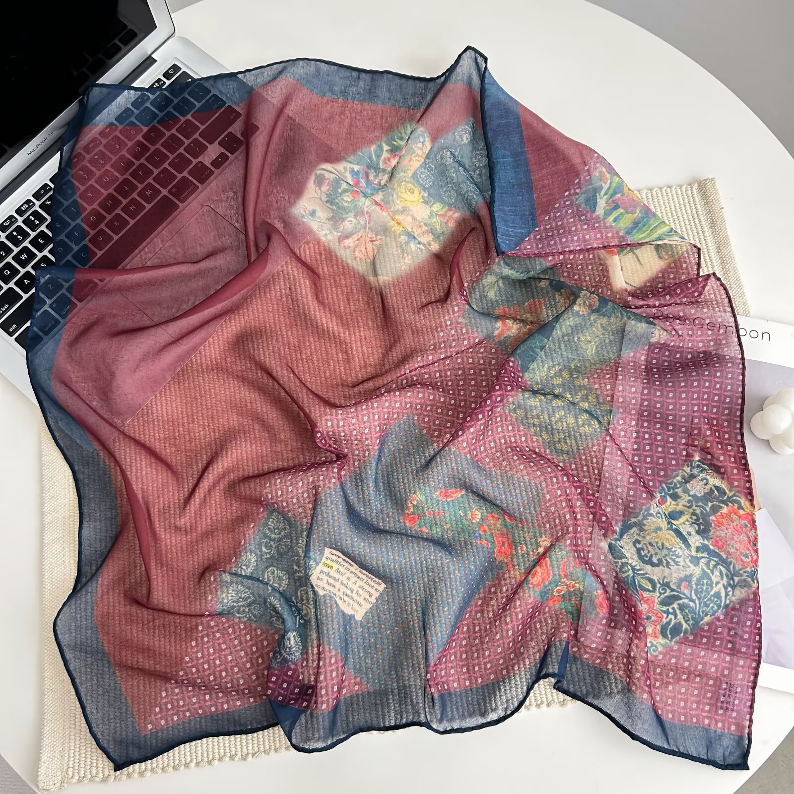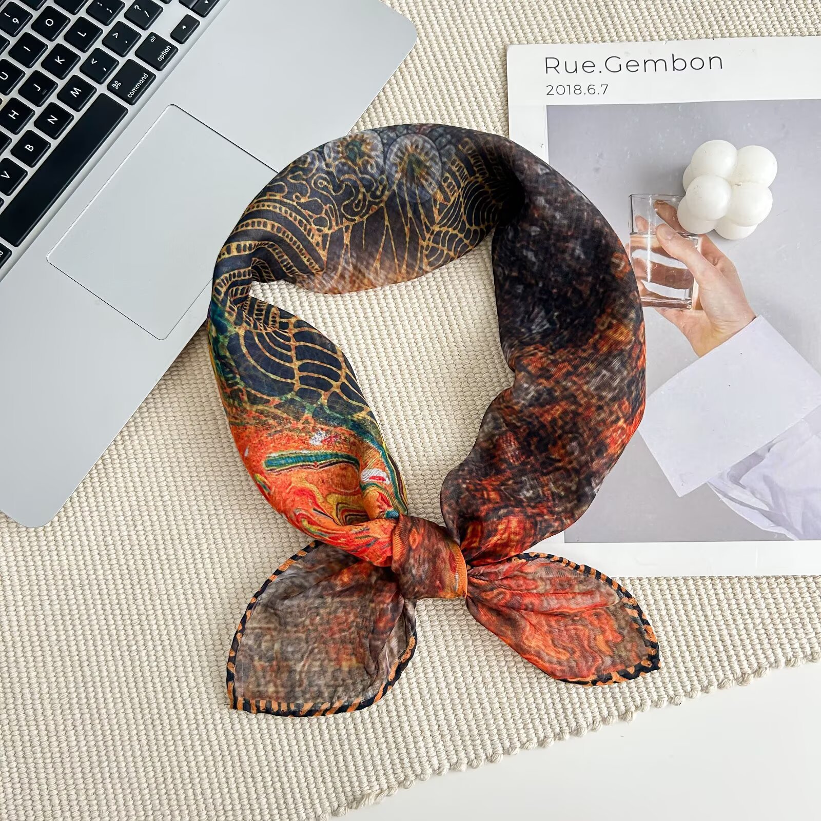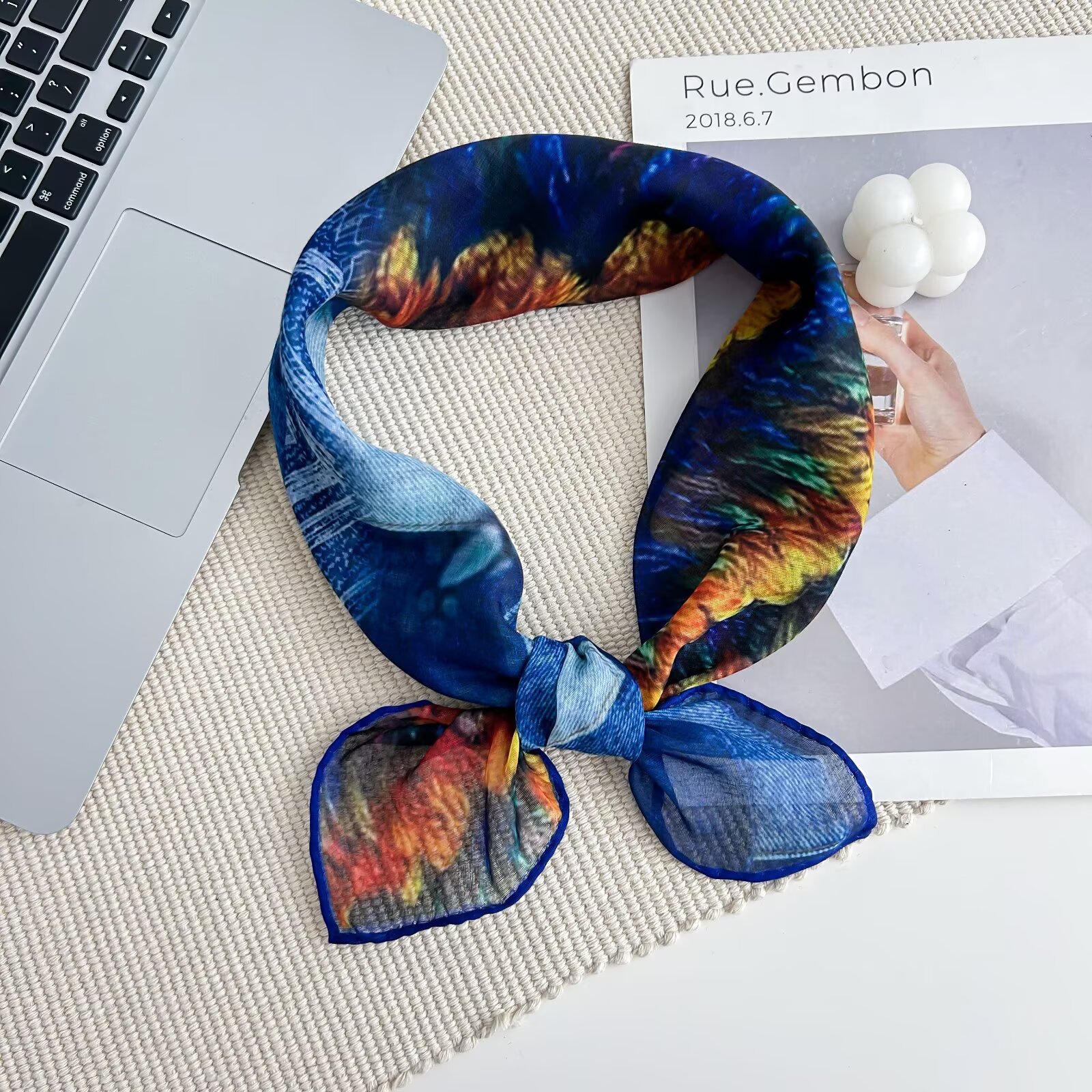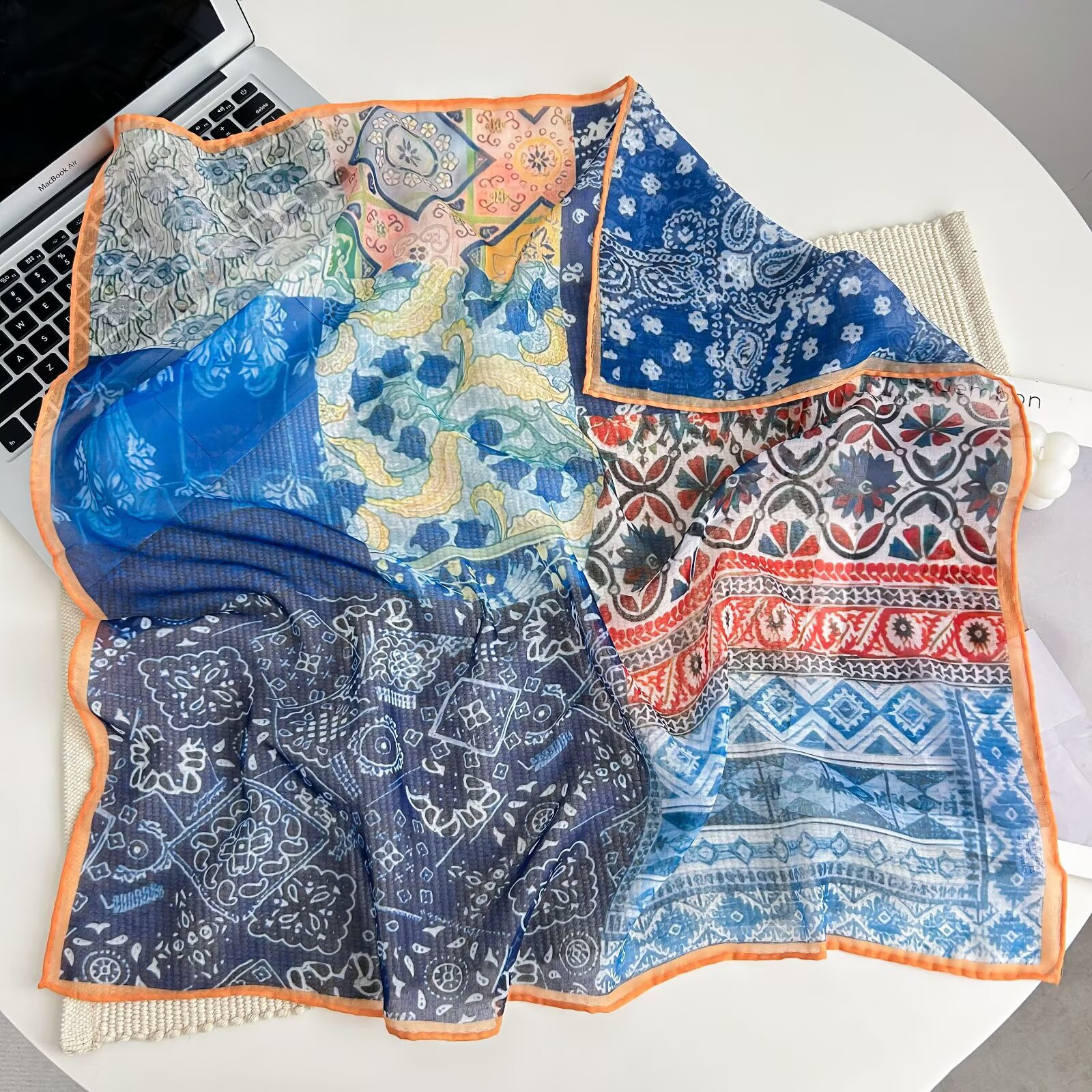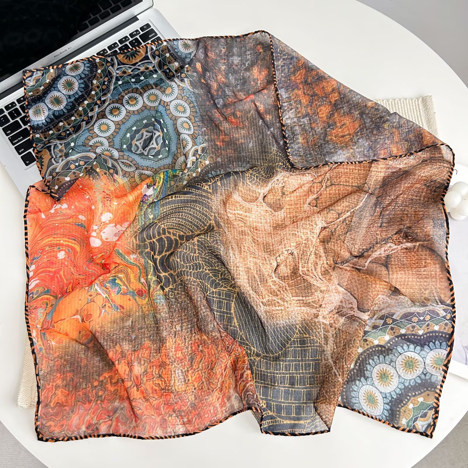 70개의 사각 스카프, 실크 면 느낌, 고화질 프린트 실크 스카프, 여성 민족 스타일 복고풍 유화 얇은 스카프, 다용도 스카프