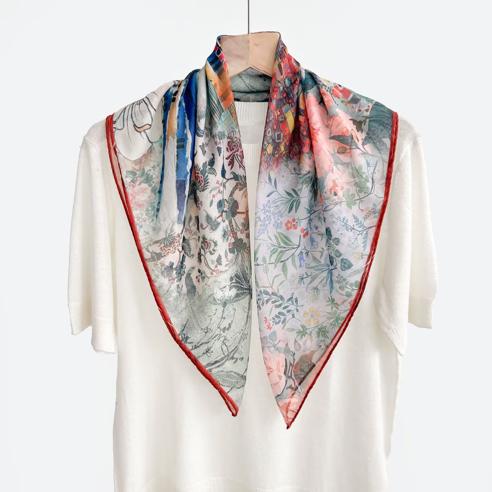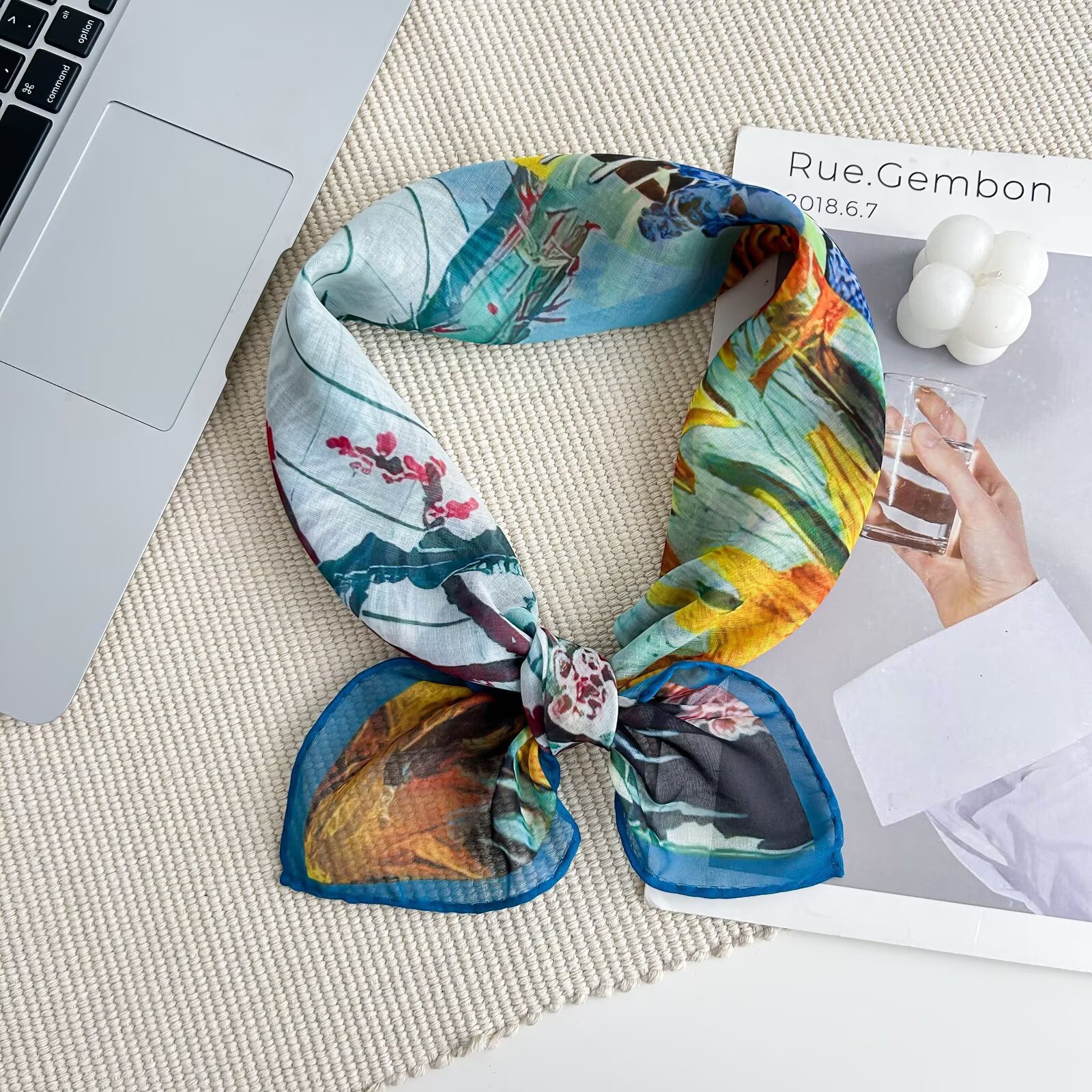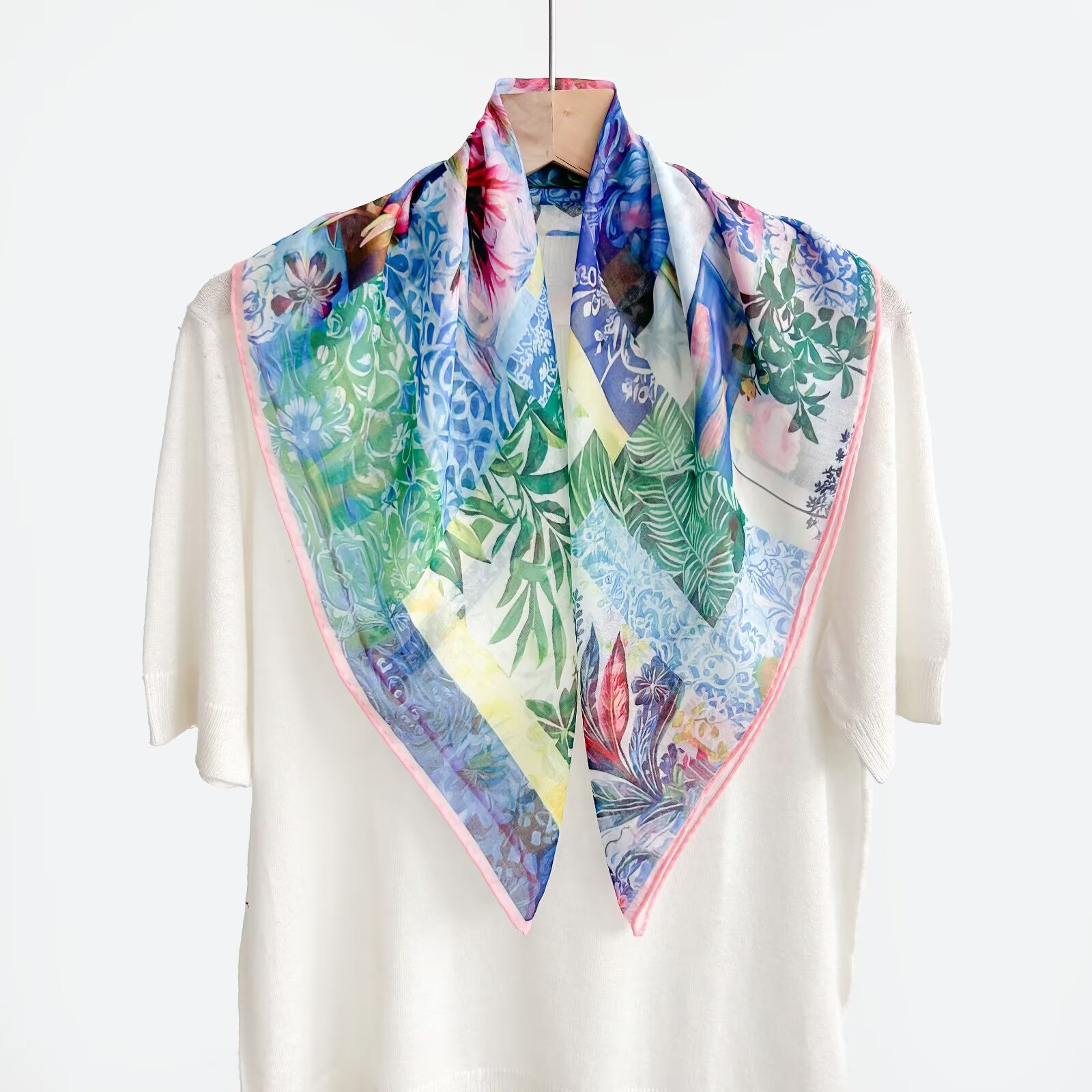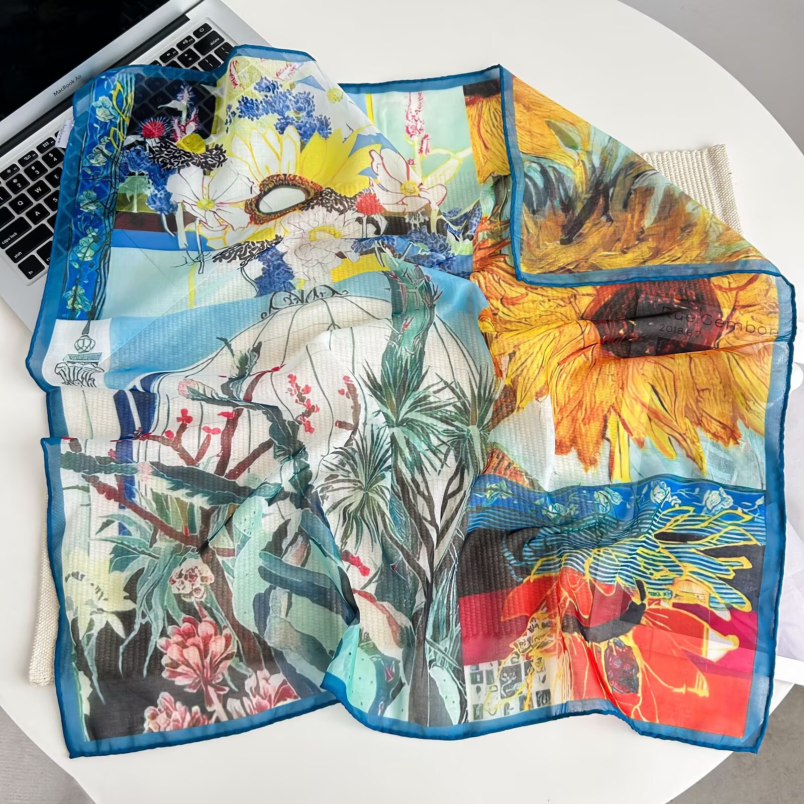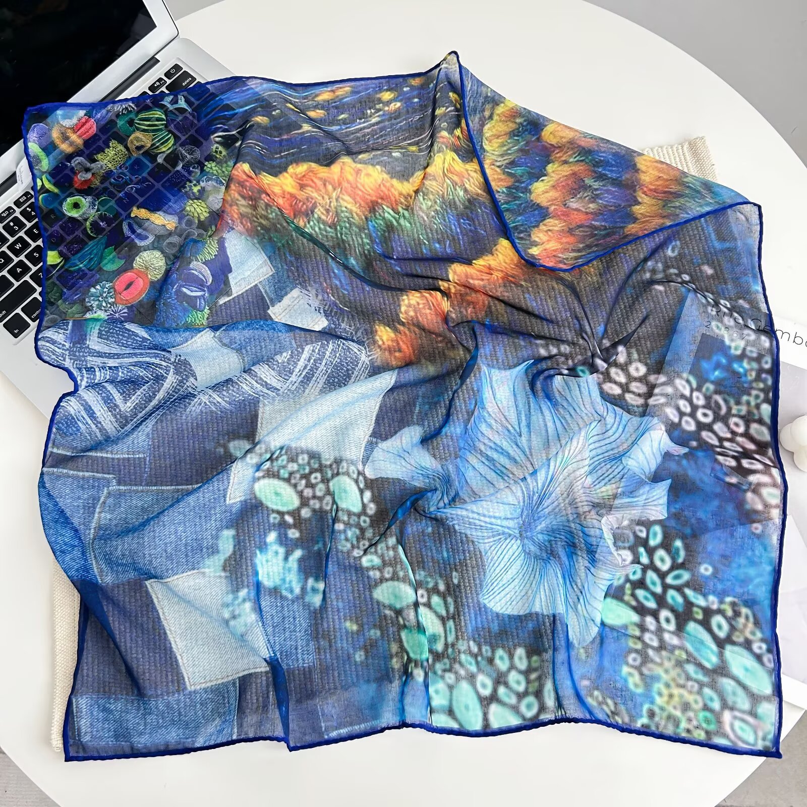 70개의 사각 스카프, 실크 면 느낌, 고화질 프린트 실크 스카프, 여성 민족 스타일 복고풍 유화 얇은 스카프, 다용도 스카프