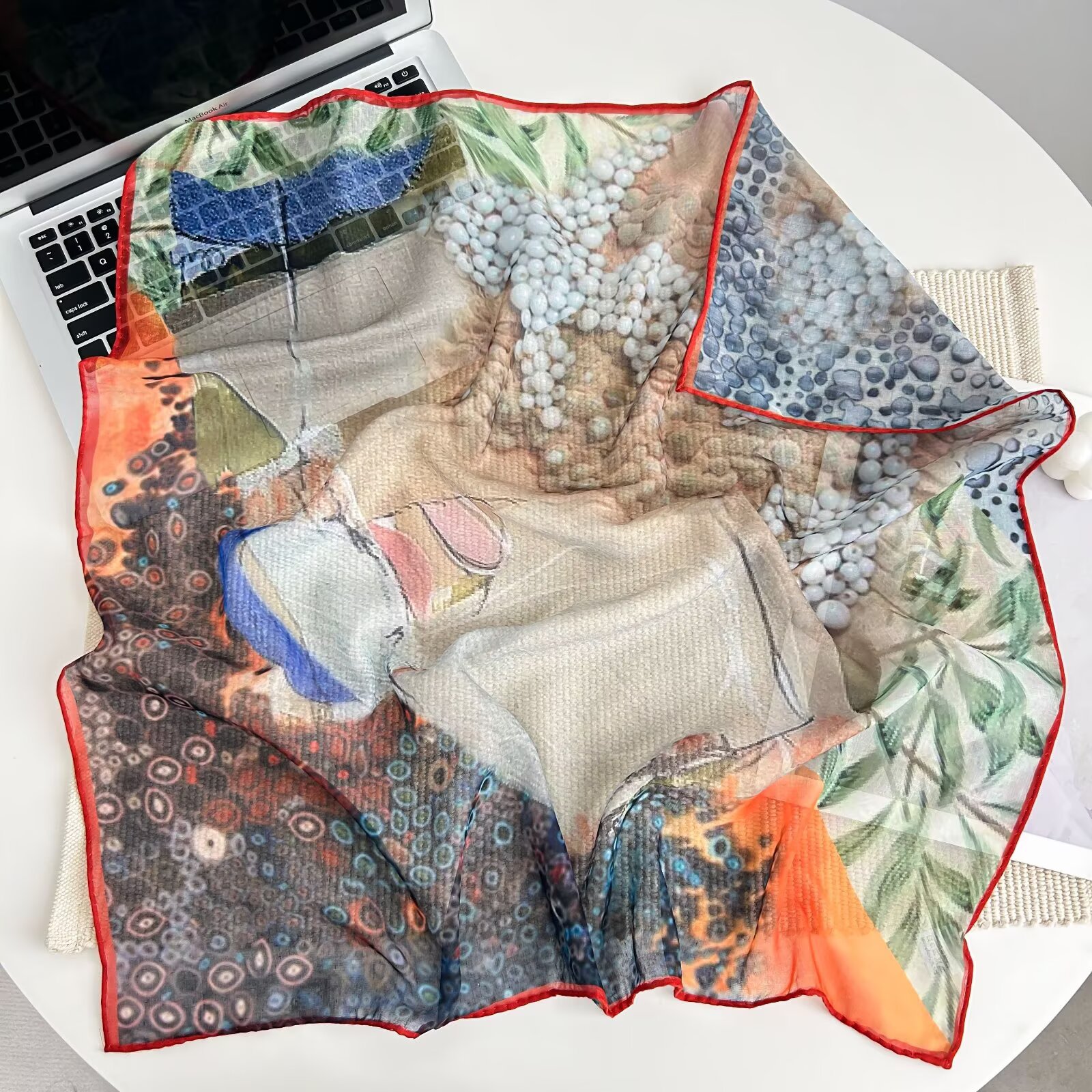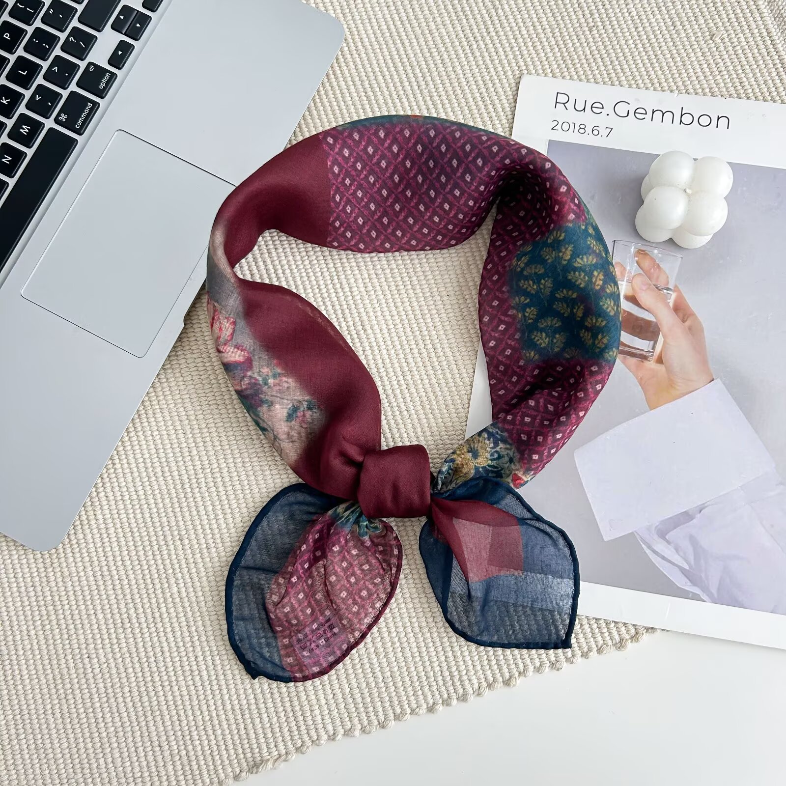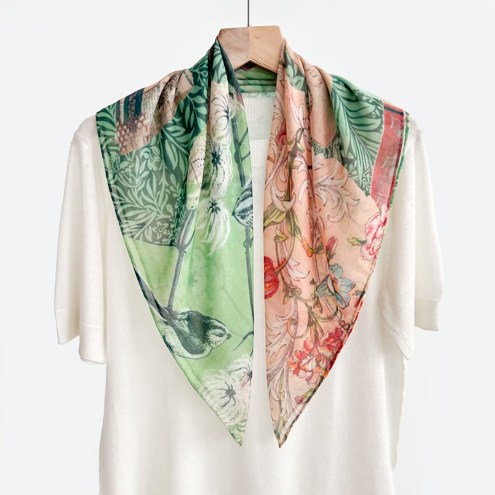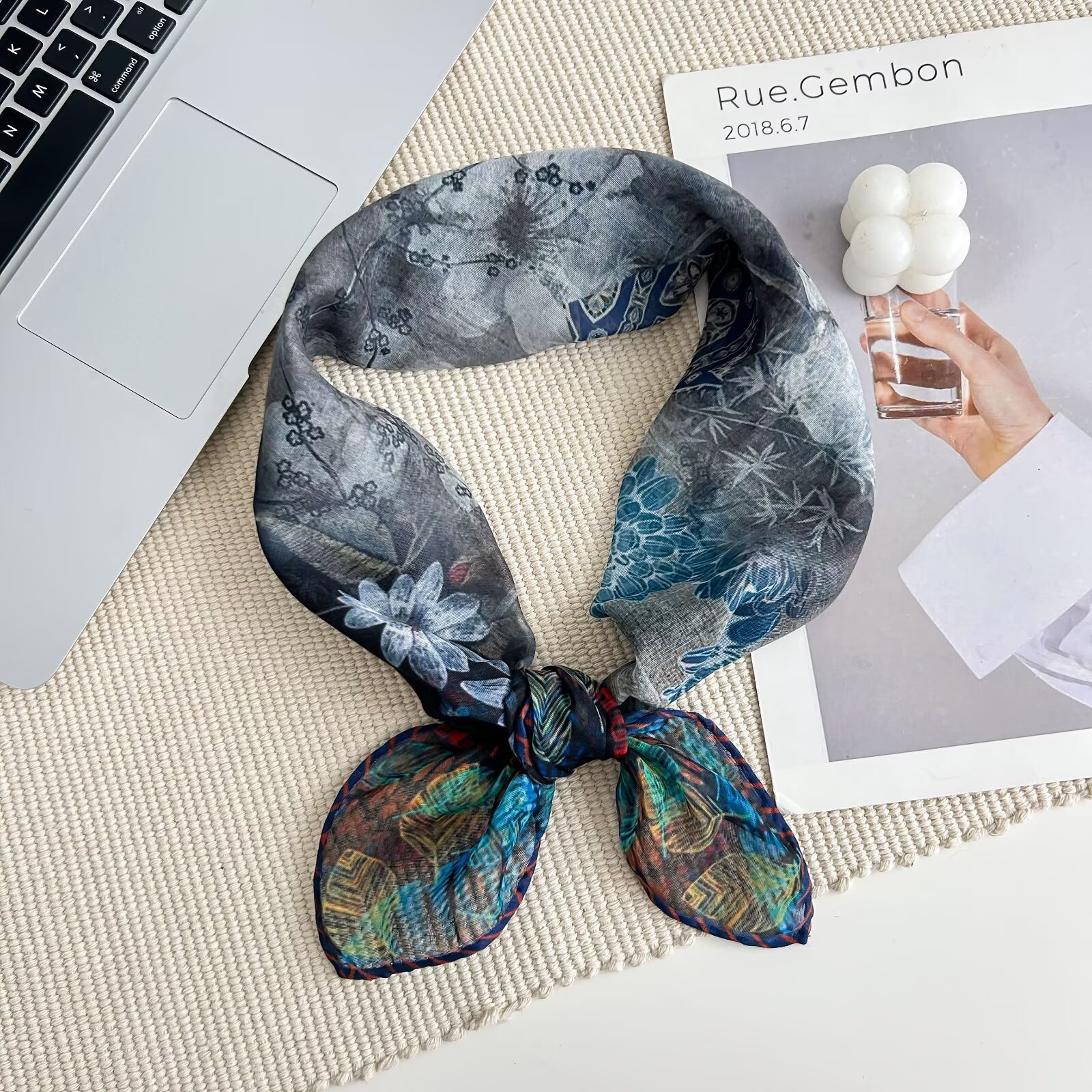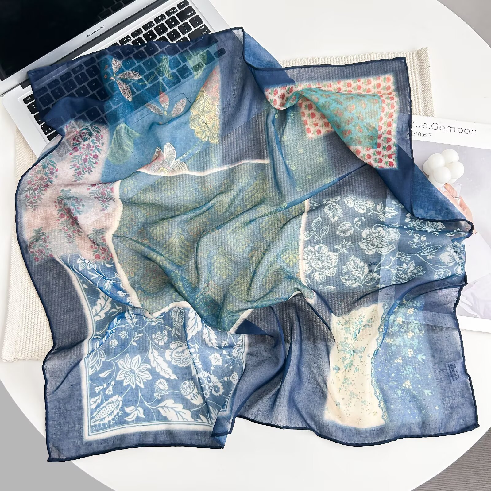 70개의 사각 스카프, 실크 면 느낌, 고화질 프린트 실크 스카프, 여성 민족 스타일 복고풍 유화 얇은 스카프, 다용도 스카프
