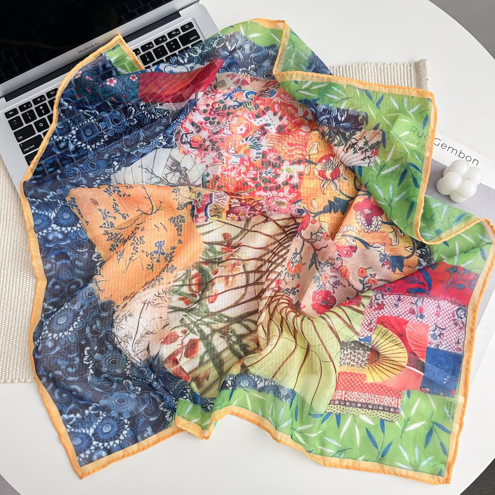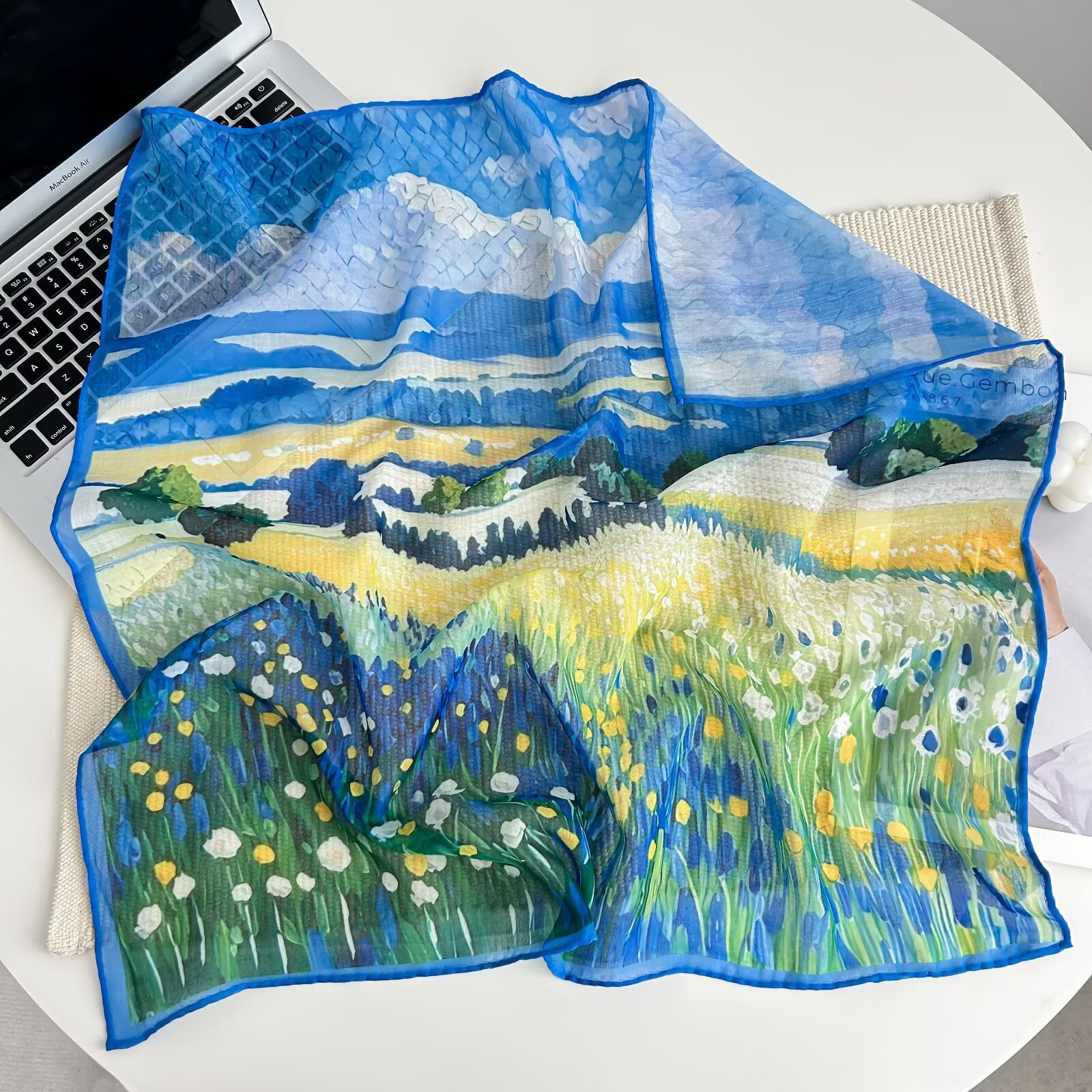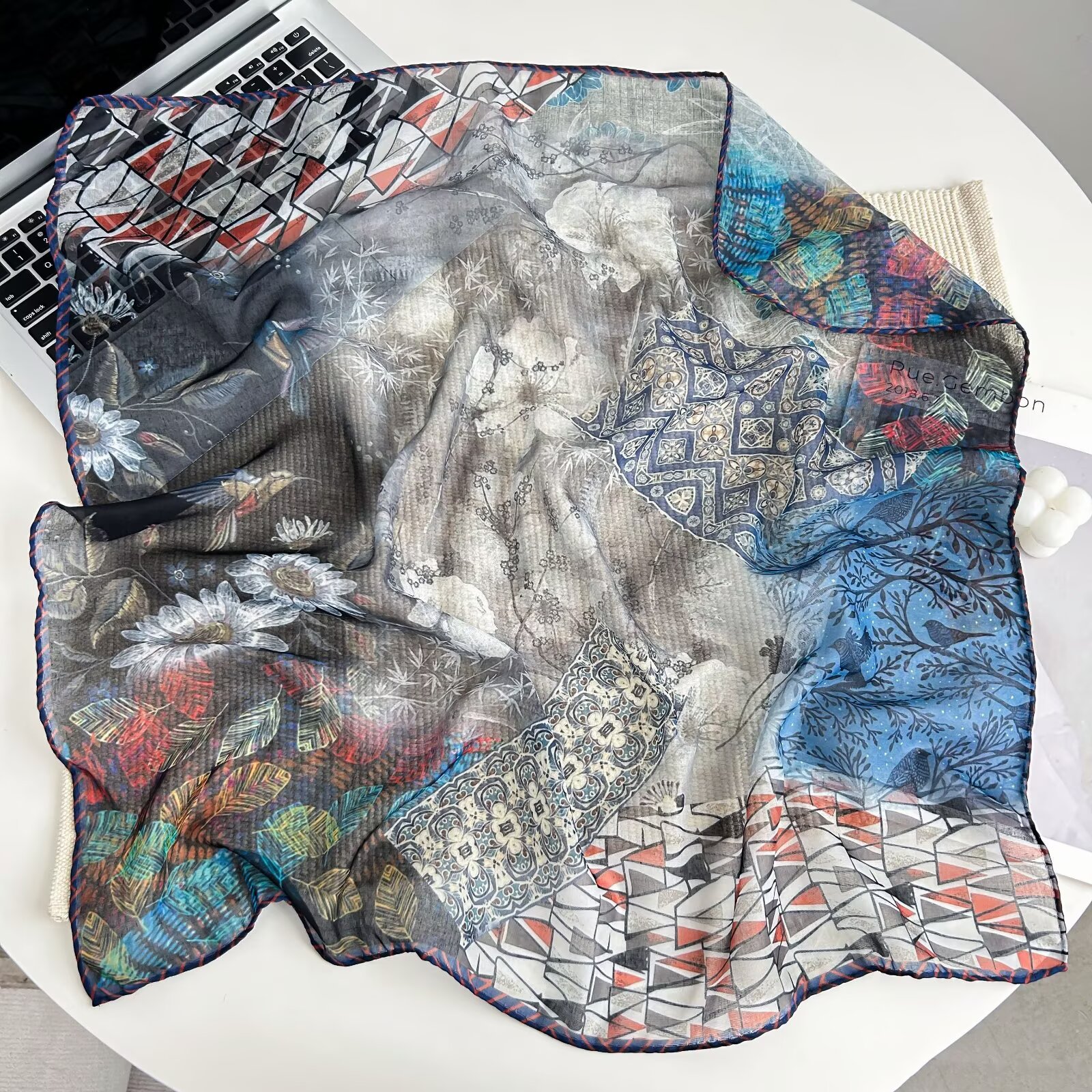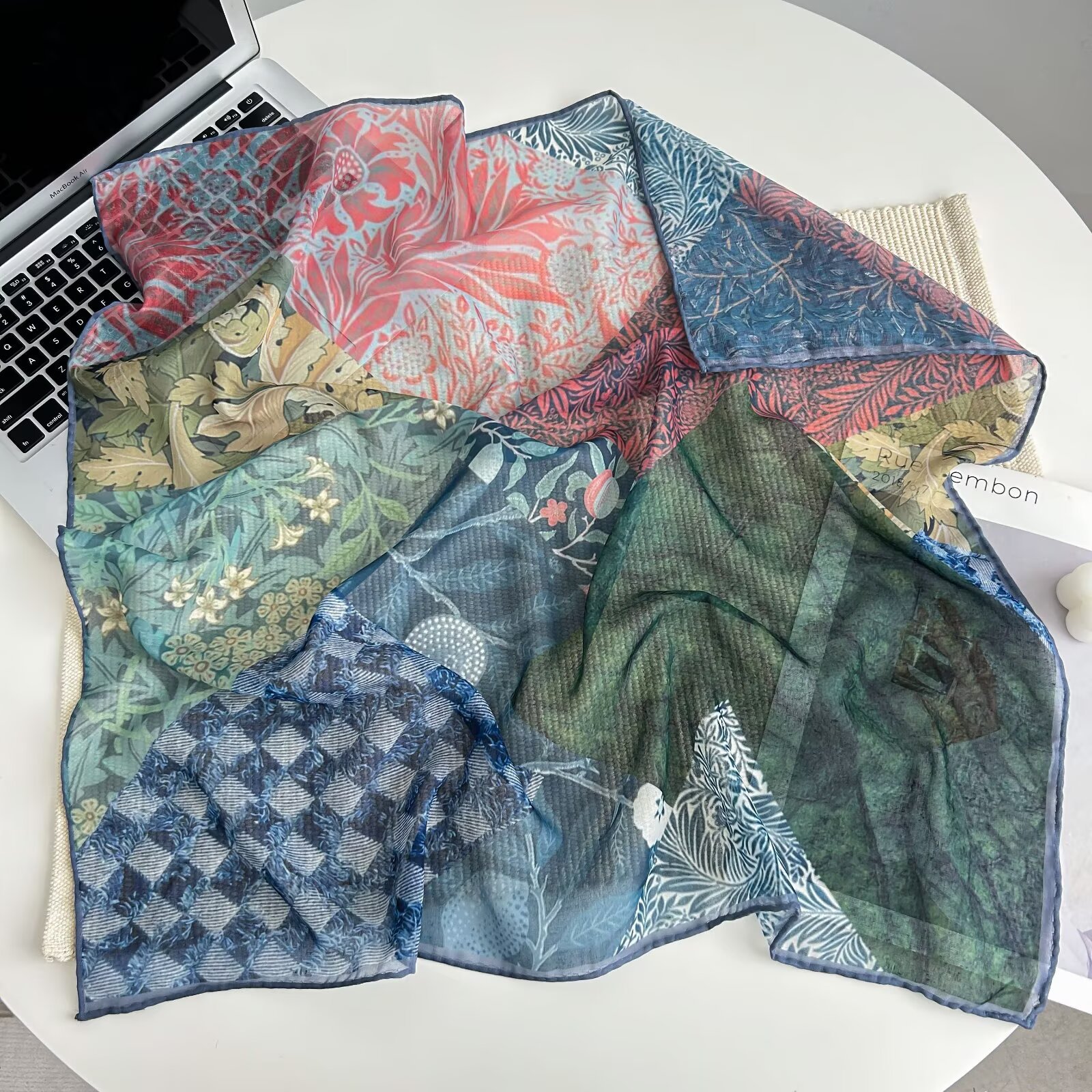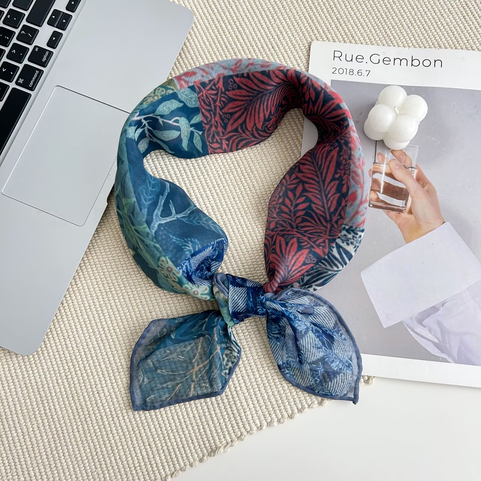 70개의 사각 스카프, 실크 면 느낌, 고화질 프린트 실크 스카프, 여성 민족 스타일 복고풍 유화 얇은 스카프, 다용도 스카프
