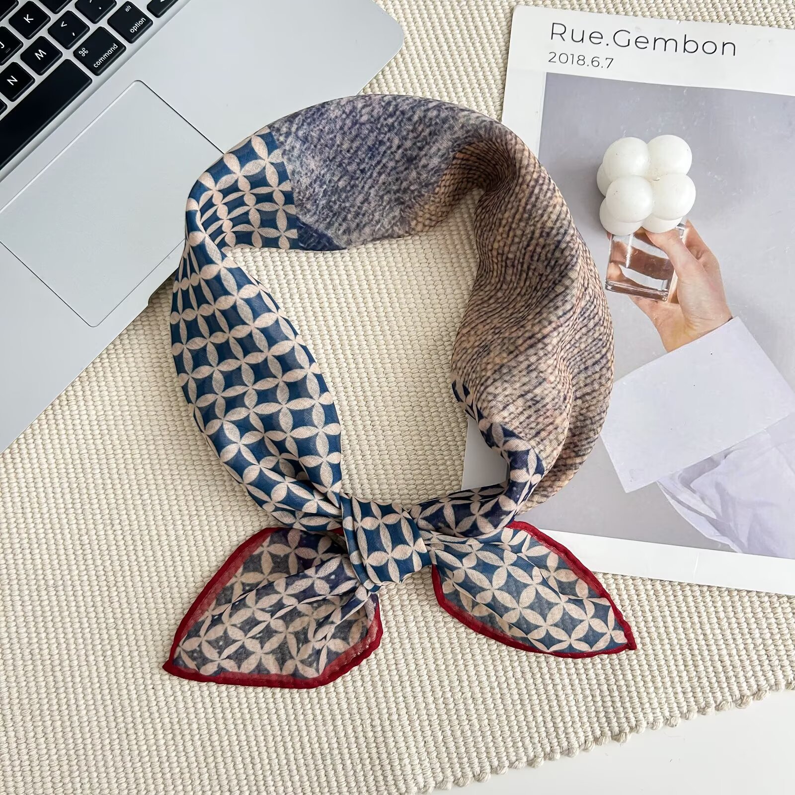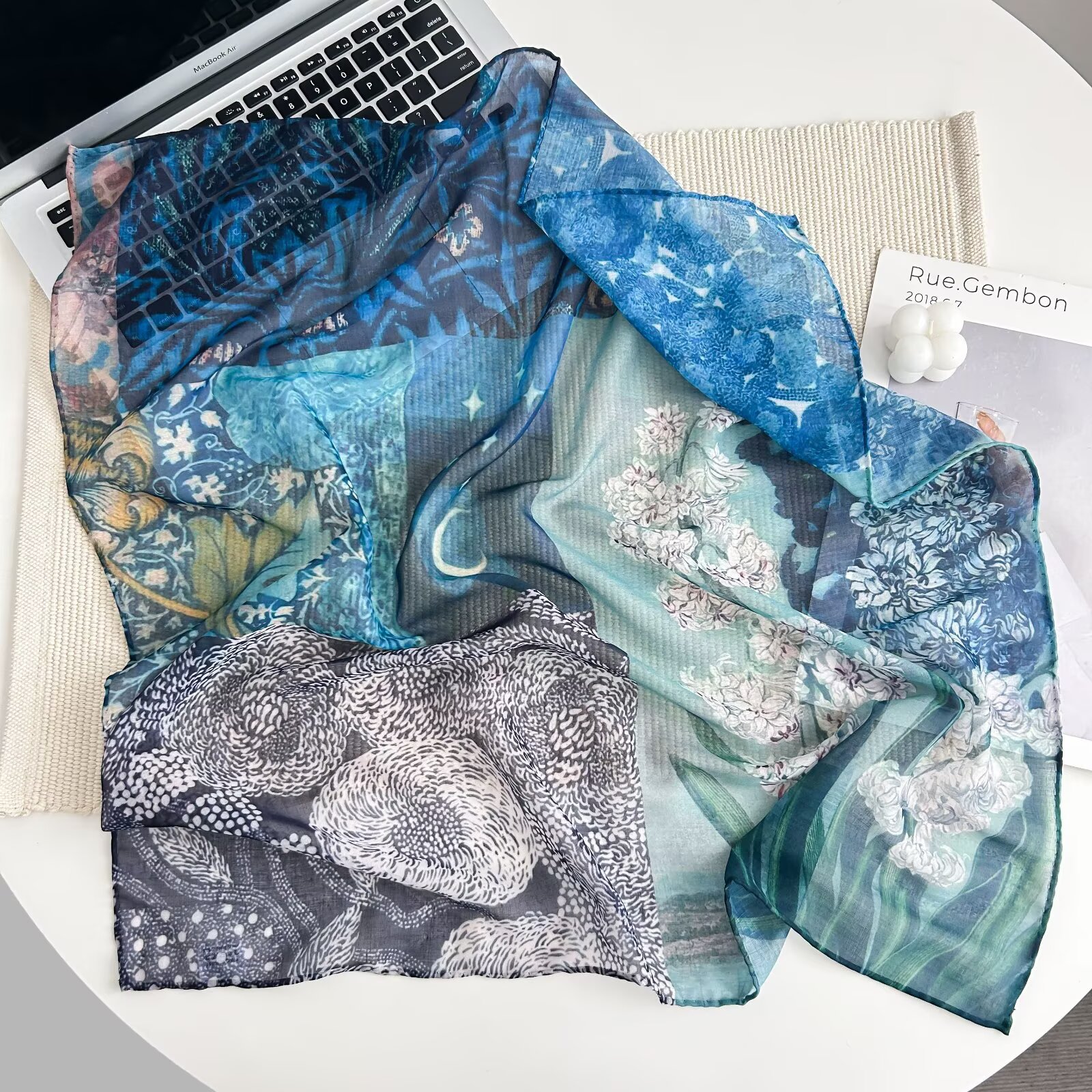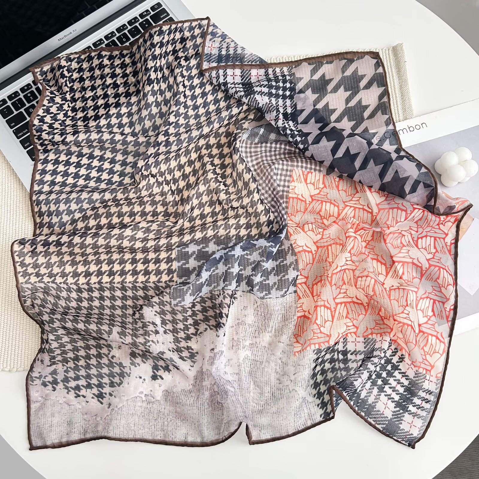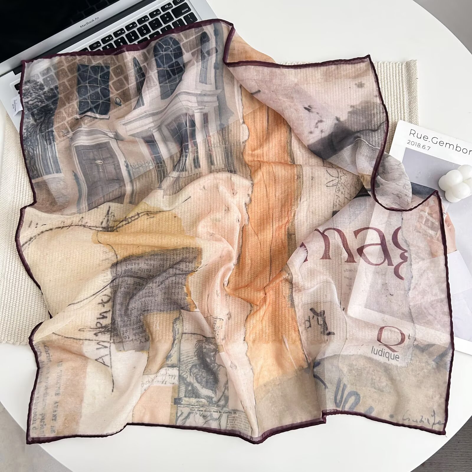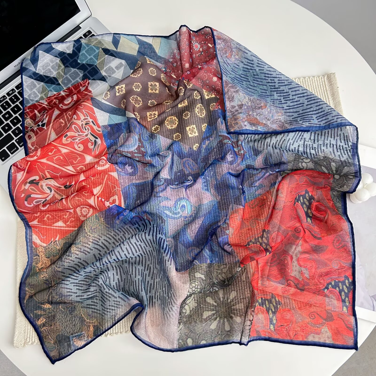 70개의 사각 스카프, 실크 면 느낌, 고화질 프린트 실크 스카프, 여성 민족 스타일 복고풍 유화 얇은 스카프, 다용도 스카프