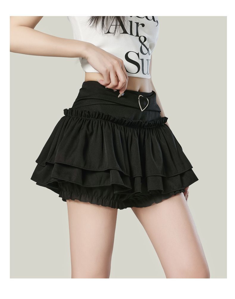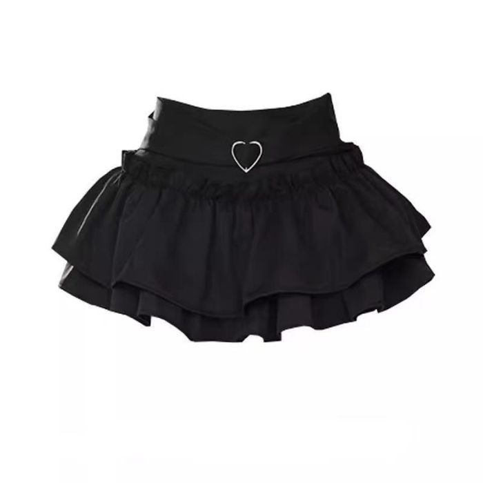대외 무역 크로스보더 귀여운 푹신한 사랑 복숭아 하이 웨이스트 케이크 스커트 여성 여름 스커트 미니 스커트 노출 방지 스커트