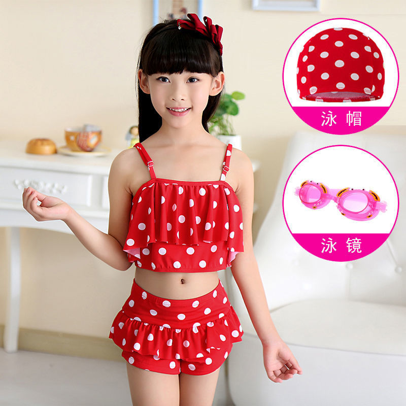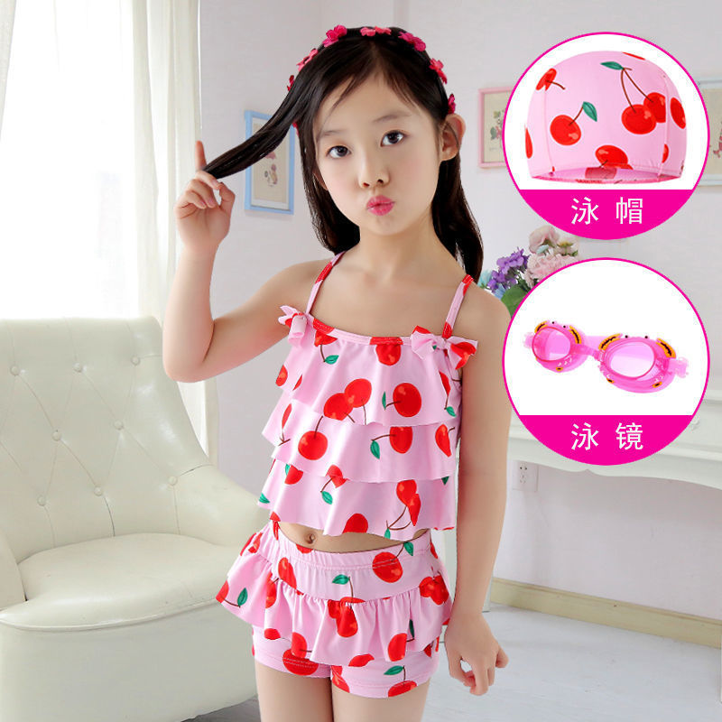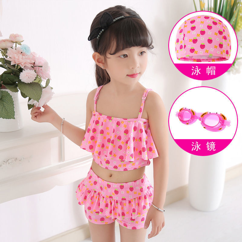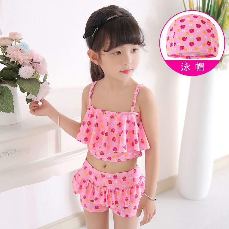 보수적인 스플릿 스타일 소녀 투피스 학생 수영복 어린이 소녀 투피스 수영복 어린이 3-6 세스토어 가기