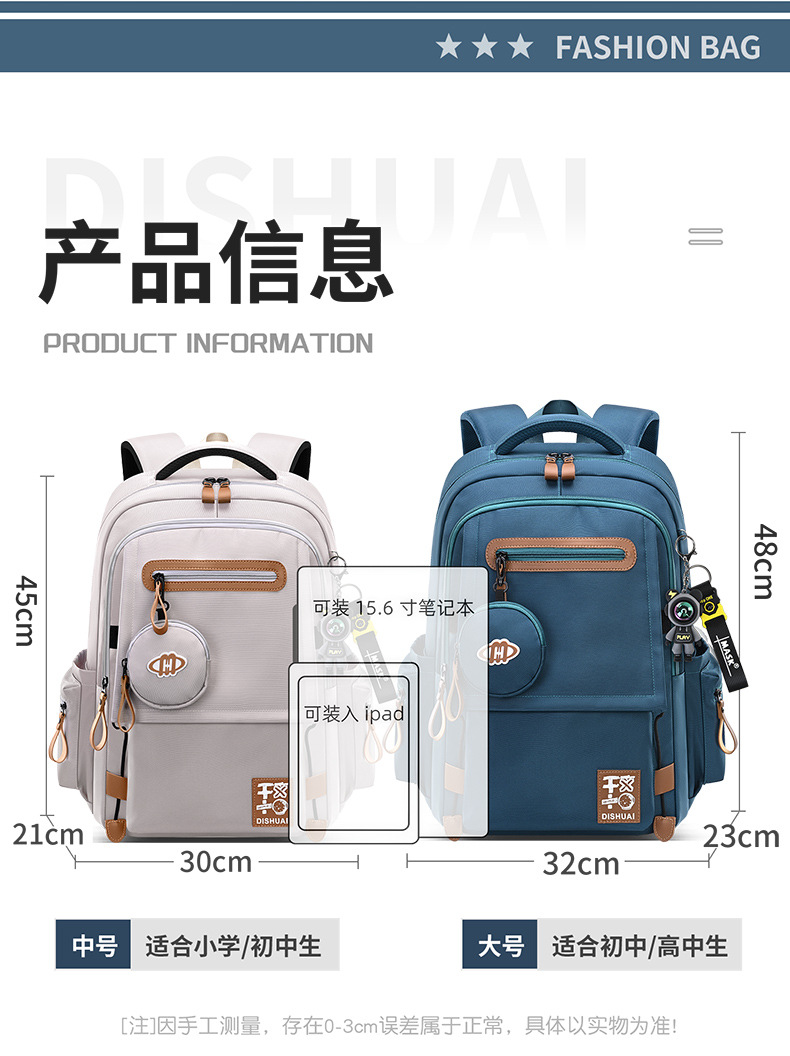 중학생, 중학생, 고등학생, 초등학생 남성용 초대용량 여성용 배낭 남성용 부담을 줄여주는 척추 보호 책가방