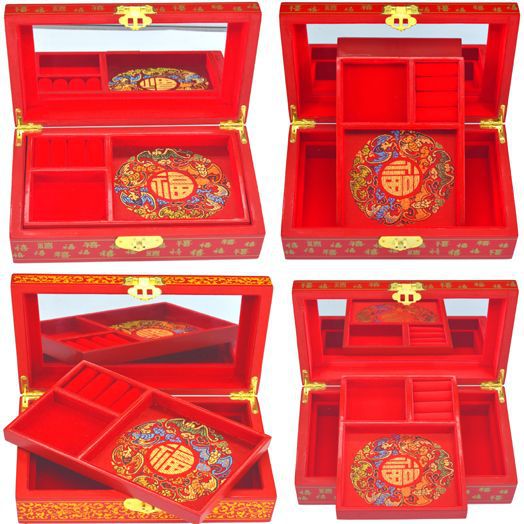 Pingyao 푸쉬 라이트 래커 보석 상자 복고풍 나무 신부 결혼 선물 드레싱 보관 상자 잠금 장치 포함 무료 배송