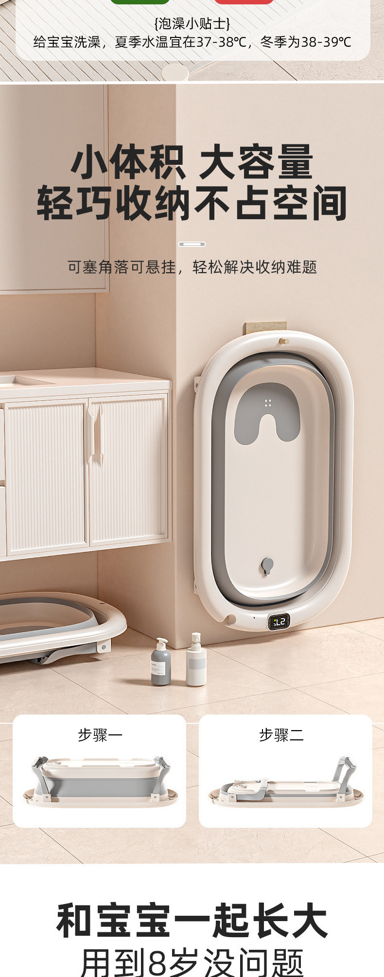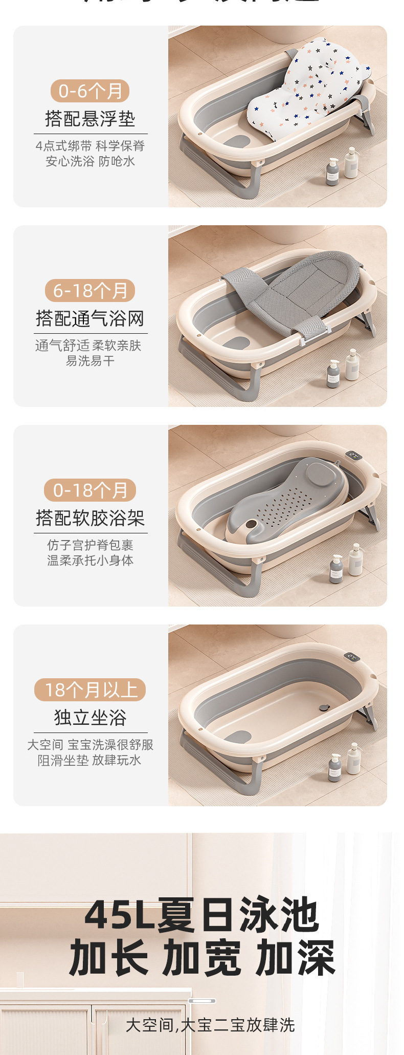 어린이가 앉아서 누워서 아기 목욕을 할 수 있는 가정용 스마트 대용량 아기 접이식 욕조, 더 크고 넓어진 욕조