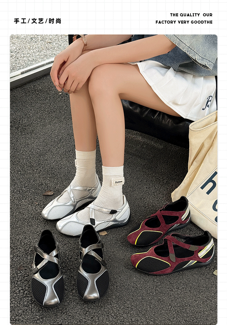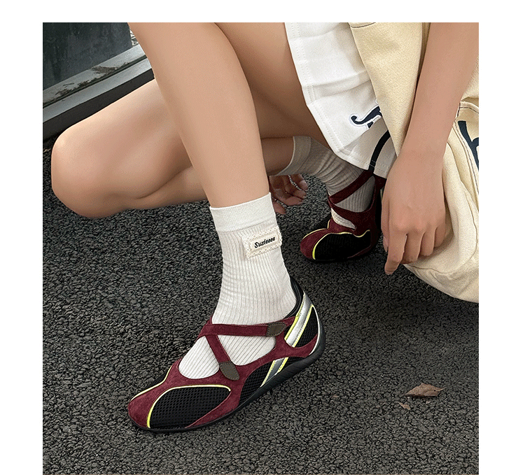플랫 발레 트레이닝 슈즈 2025 새로운 통기성 싱글 슈즈 여성 슈즈 벨크로 중공 캐주얼 메리 제인 여성 슈즈스토어 가기