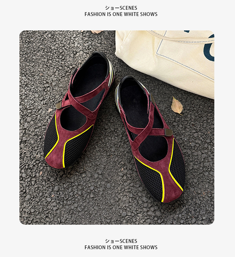 플랫 발레 트레이닝 슈즈 2025 새로운 통기성 싱글 슈즈 여성 슈즈 벨크로 중공 캐주얼 메리 제인 여성 슈즈