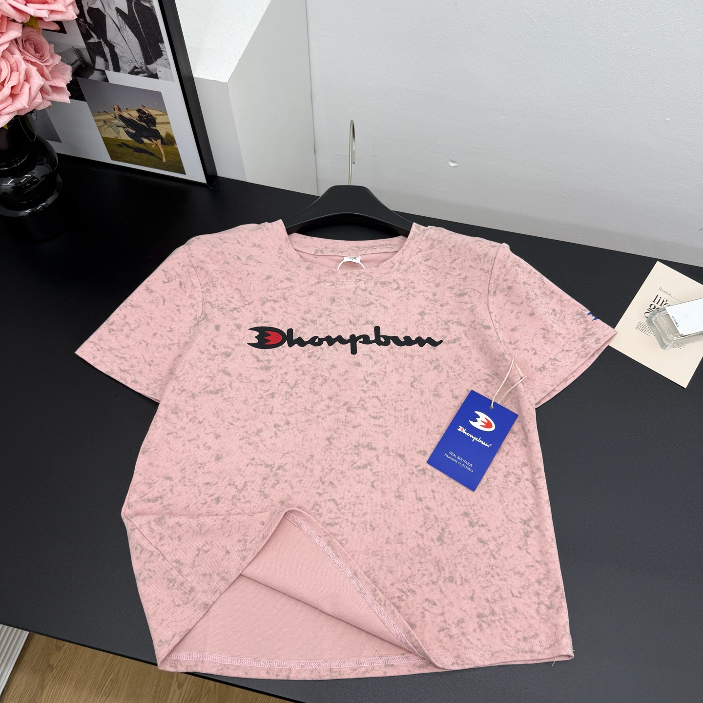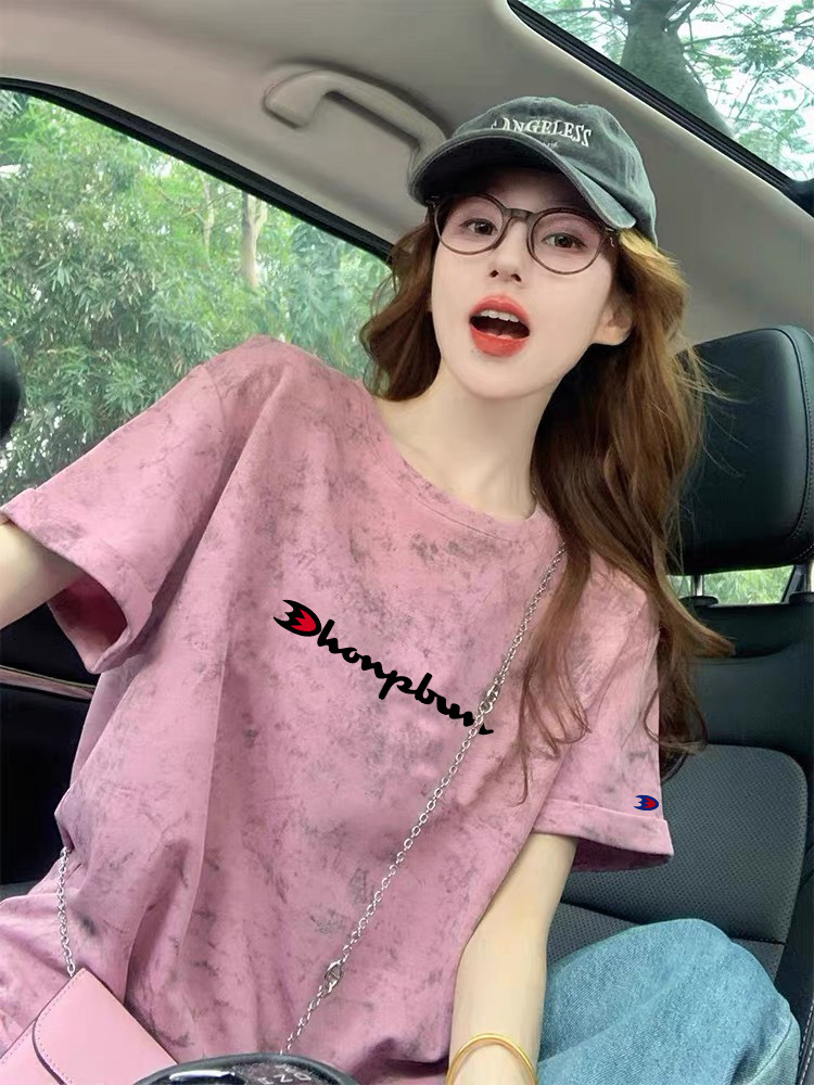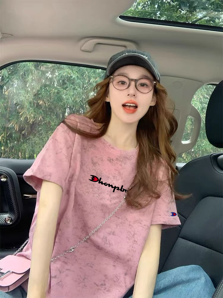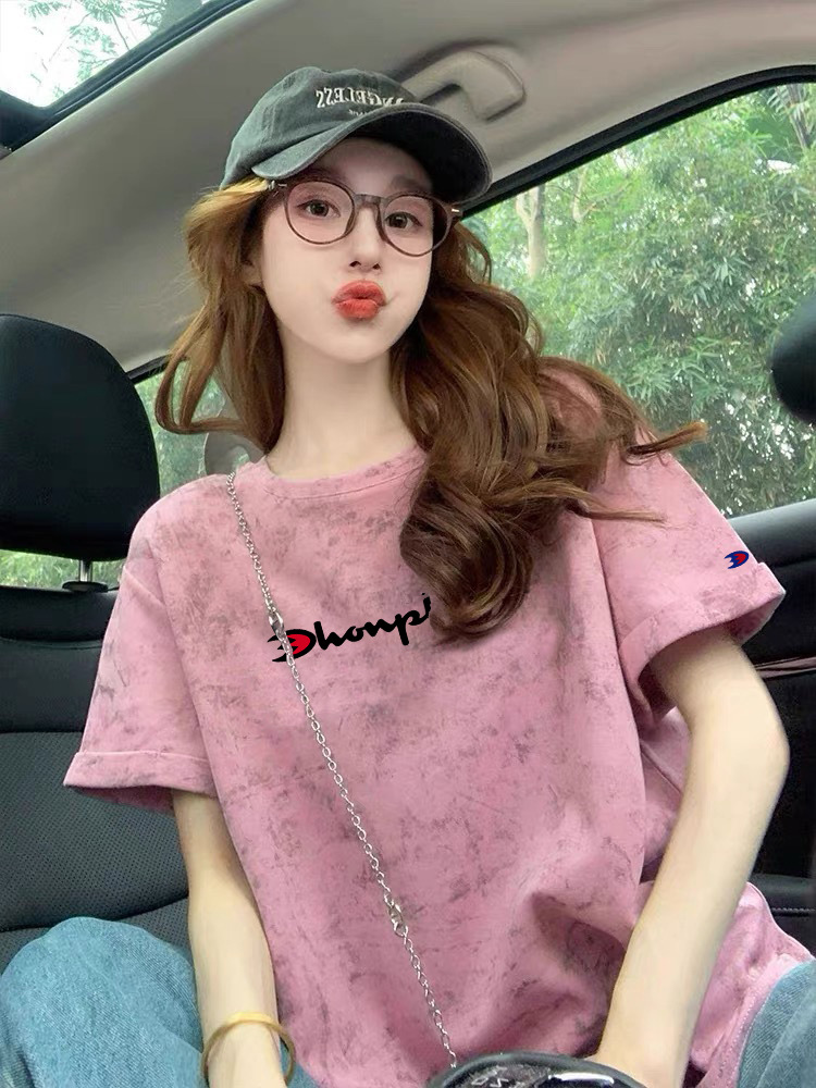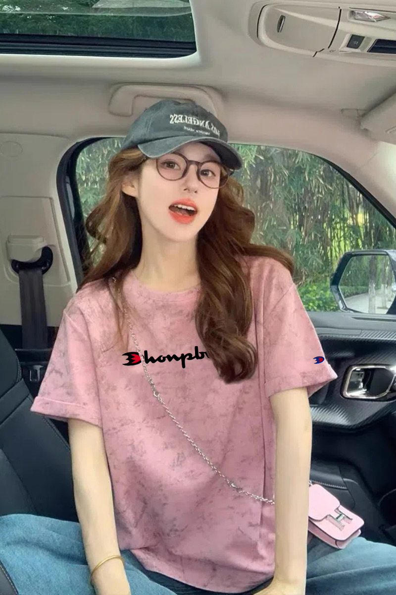 여름 여성용 귀여운 챔피언 스머지 파우더 퓨어 코튼 반팔 티셔츠, 달콤하고 루즈하며 슬림하고 화이트닝, 캐주얼하고 다재다능한 반팔스토어 가기